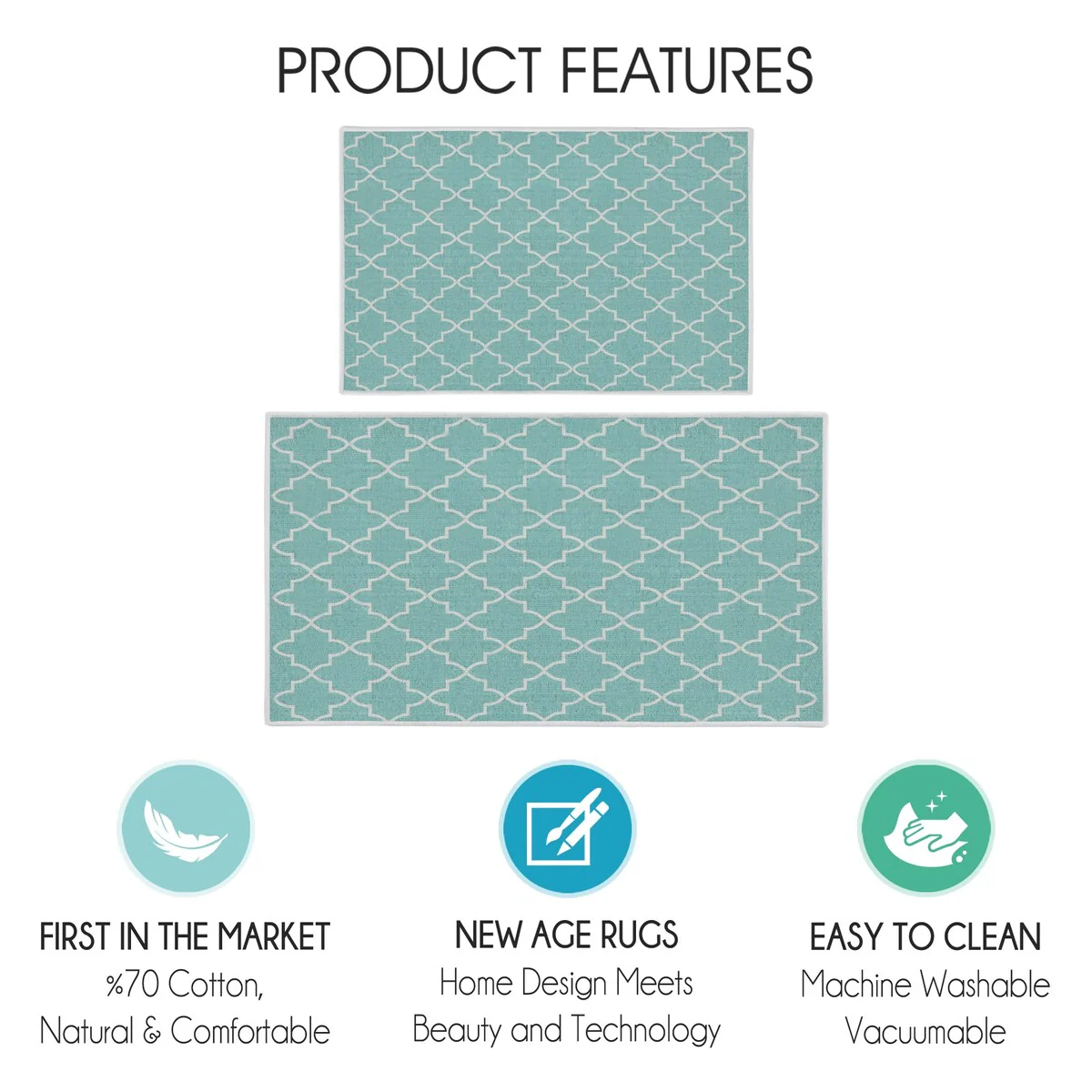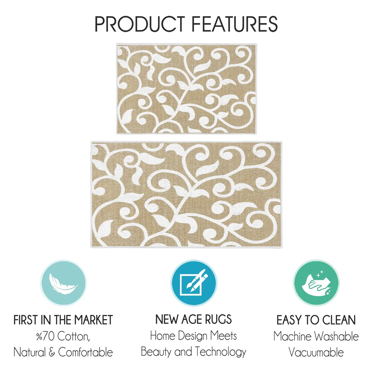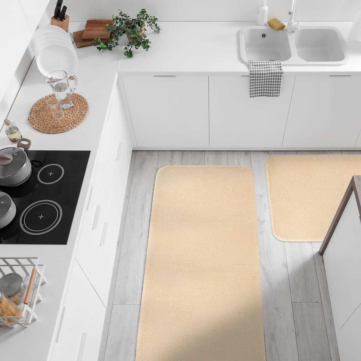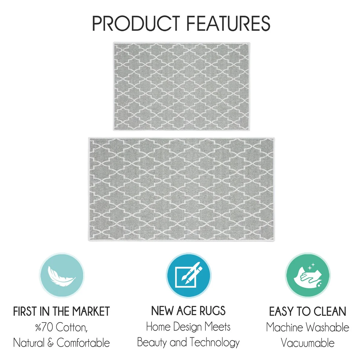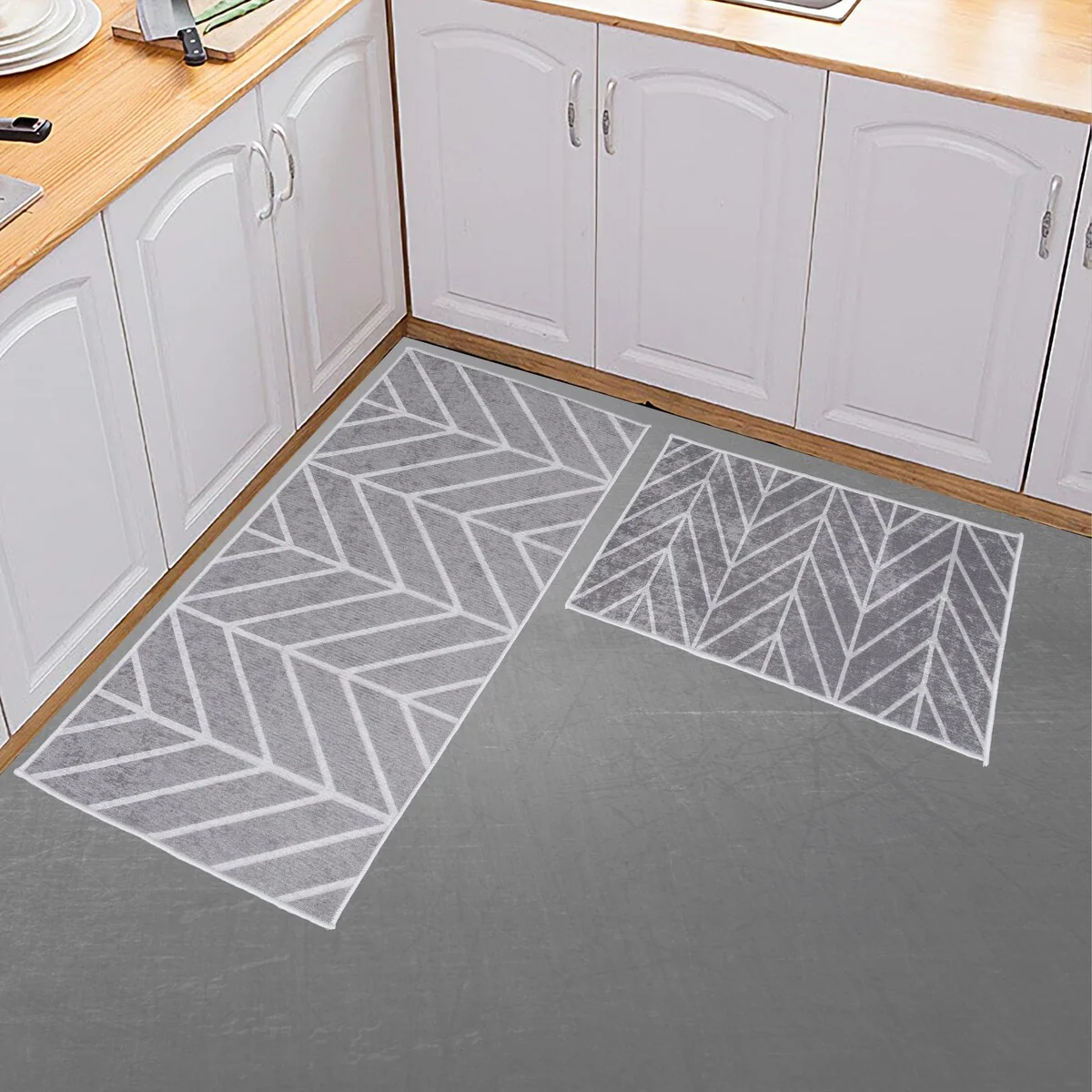 Add a touch of style and utility to your kitchen with this set of two Non-skid Washable Kitchen Runner Rugs. Made of 70-percent cotton and 30-percent polyester, these lightweight, soft, and durable mats are designed to offer lasting comfort and prevent slips. The non-skid backing ensures that the rugs stay firmly in place, while the low pile allows for easy positioning near doors. Plus, the washable design makes maintenance a breeze.