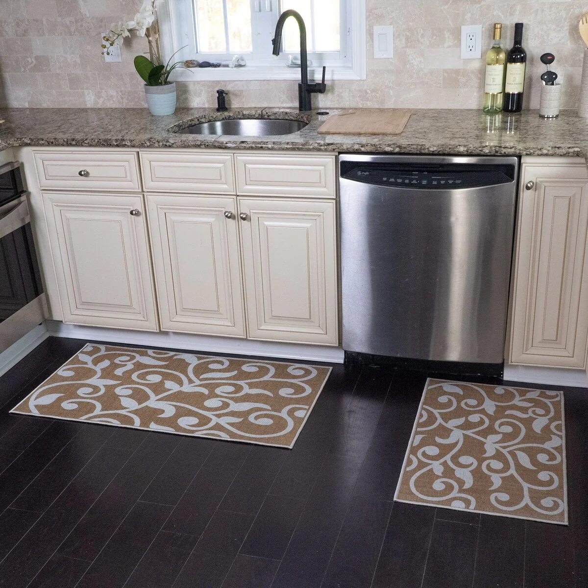 Non-skid Washable Kitchen Runner Rugs (Set of 2) - Set of 44 x 24 and 31.5 x 20 Inches