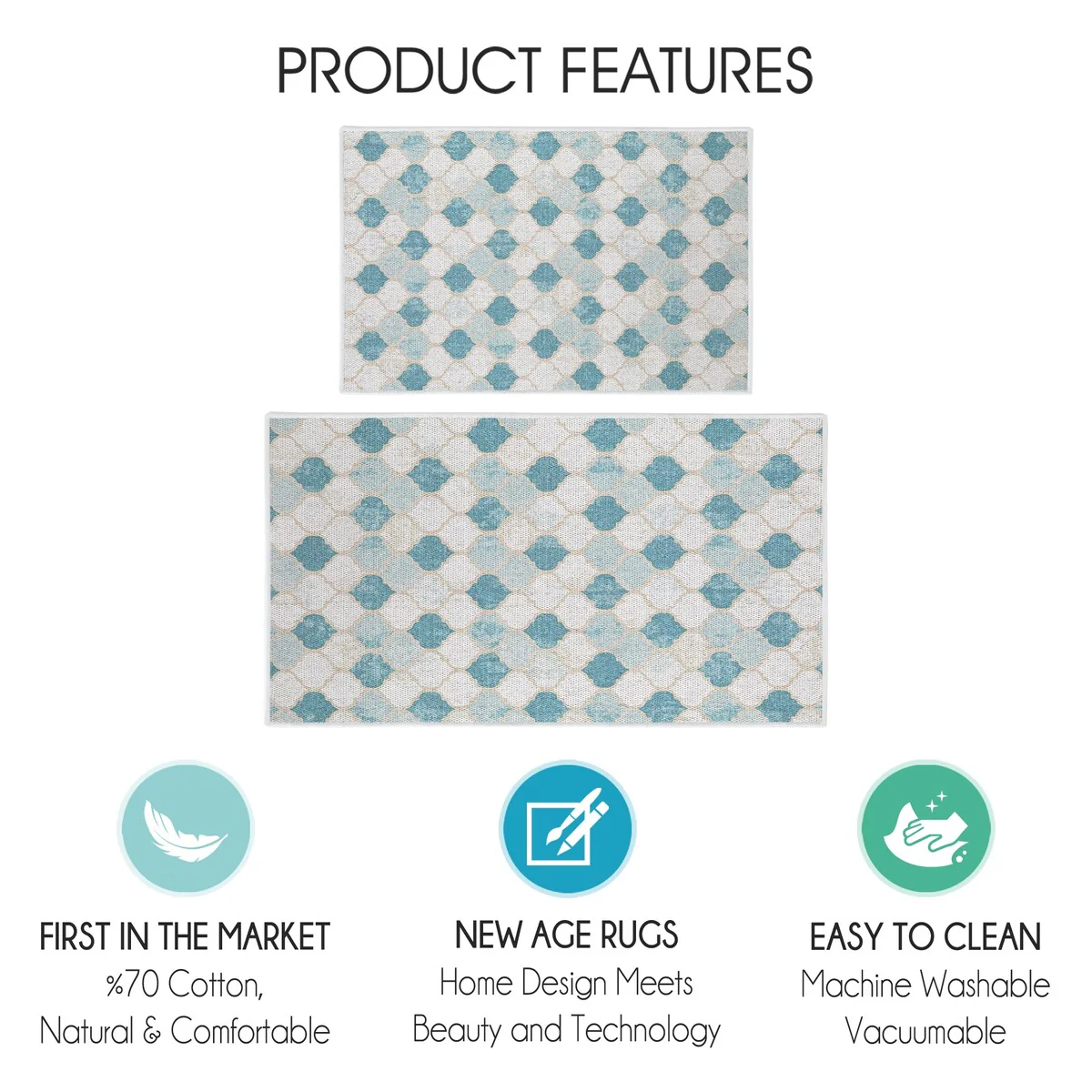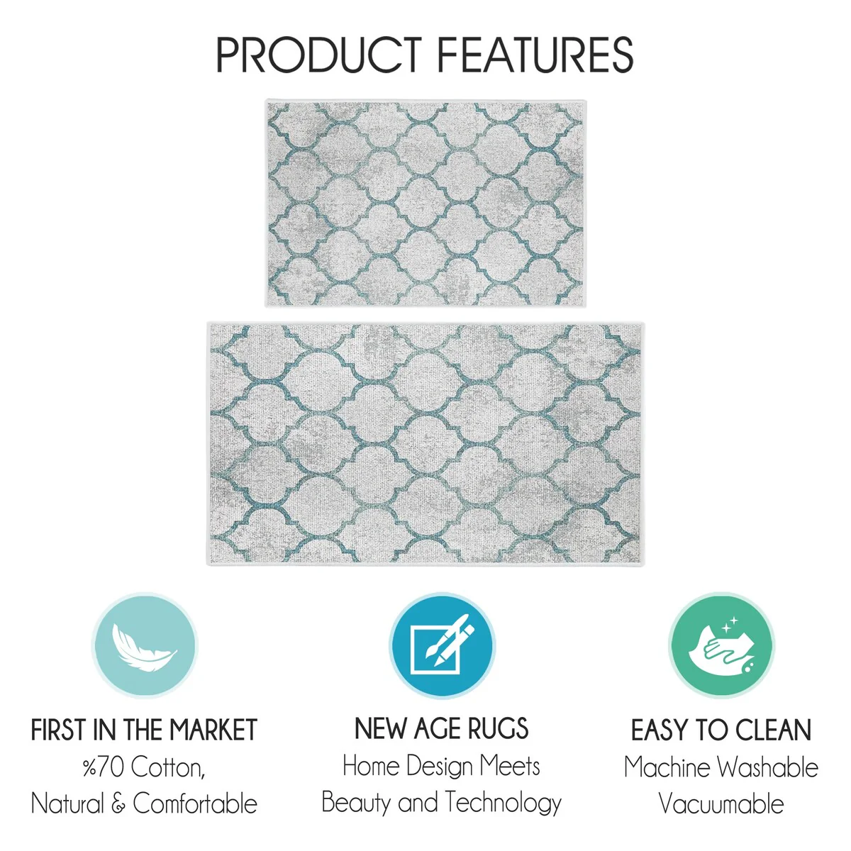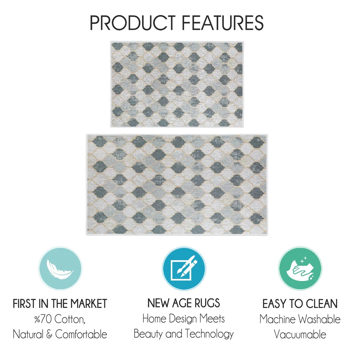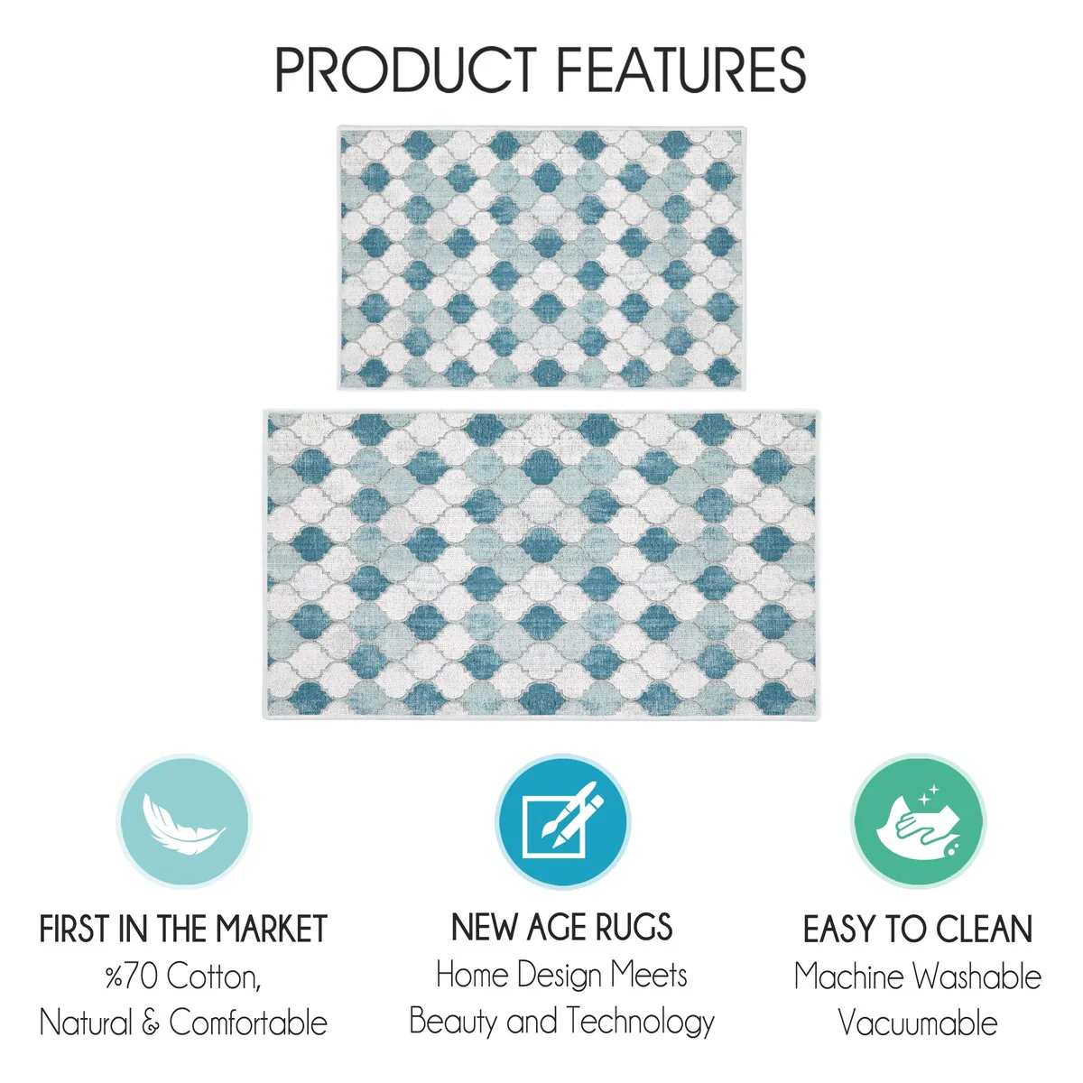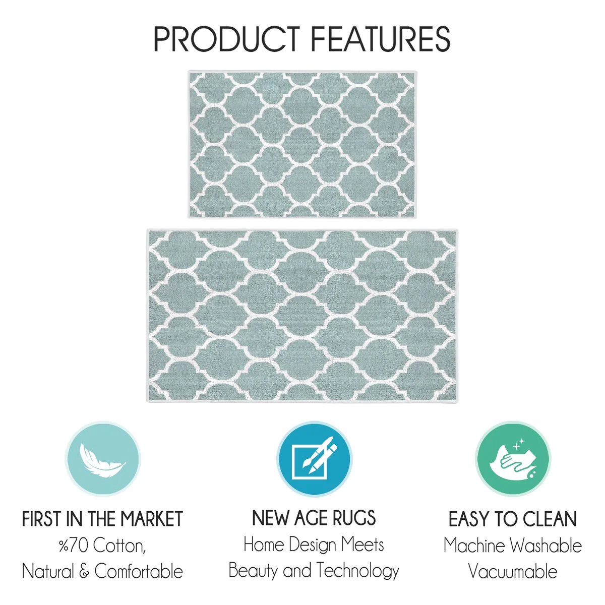• Non-skid Washable Kitchen Runner Rugs (Set of 2) - Set of 44 x 24 and 31.5 x 20 Inches