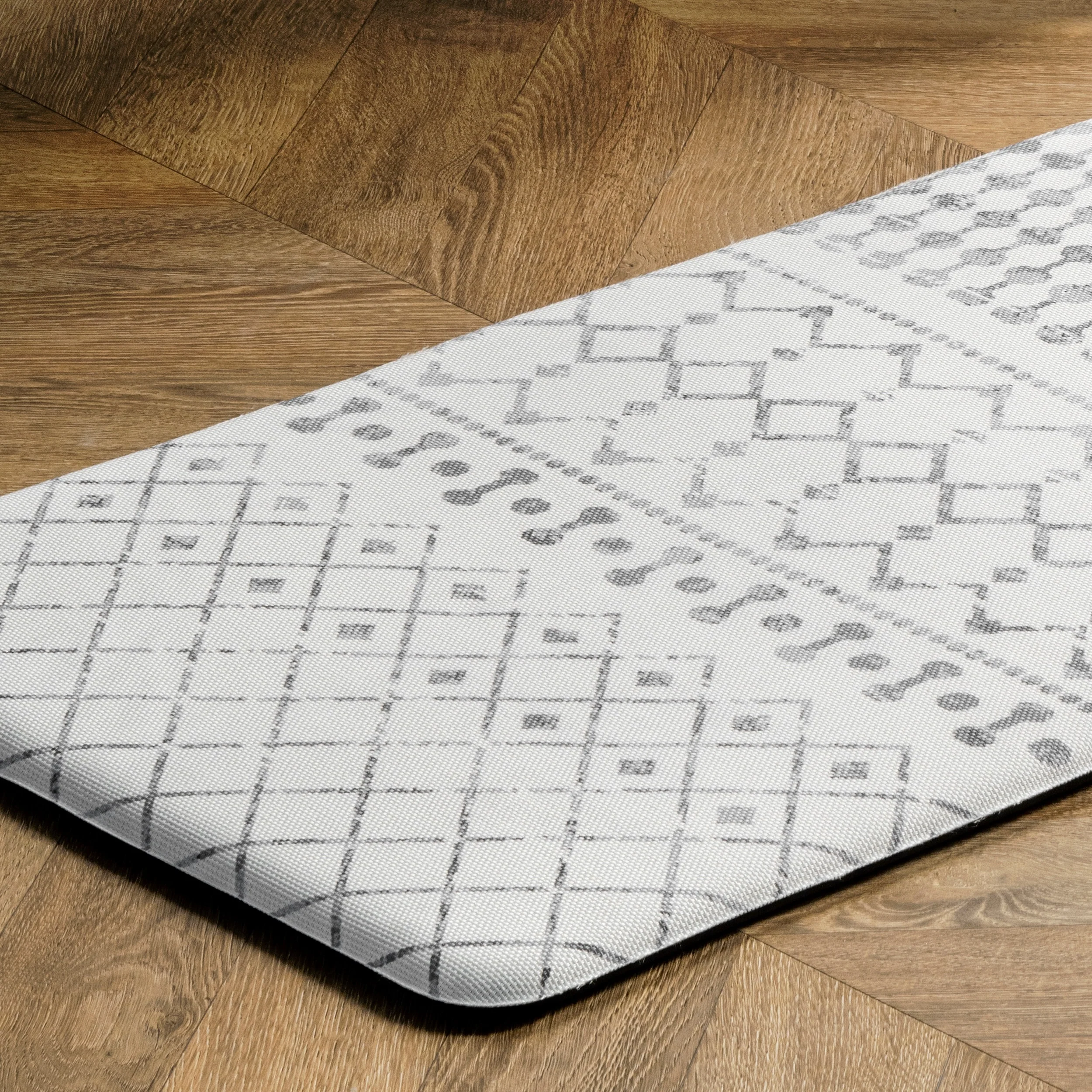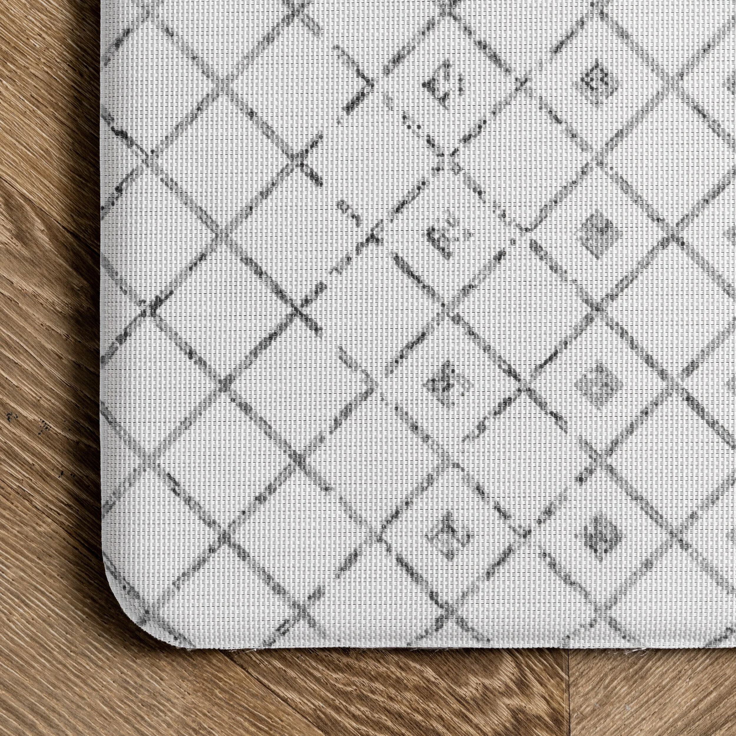 - Versatile and stylish design makes the mat perfect for your kitchen, home office, laundry room, or anywhere you stand for extended periods of timeMade from 95% PVC & 5% Polyester, this thick and durable mat includes non-slip PVC backing that will help keep it anchored in its desired location