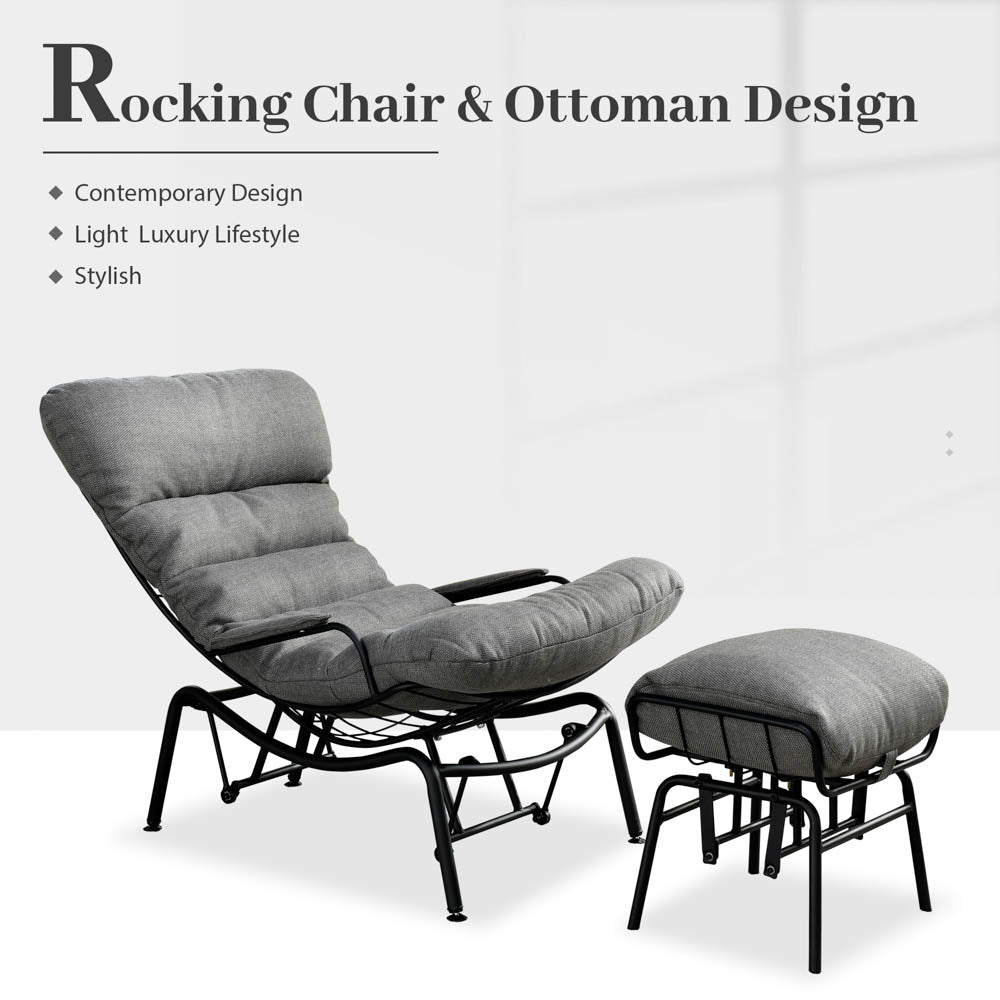 Modern Ergonomic Chair Rocker Chair: This leisure arm chair provides great support for your entire body. The wide backrest and seat provides you with great comfort, no matter you lean on it or rock it.