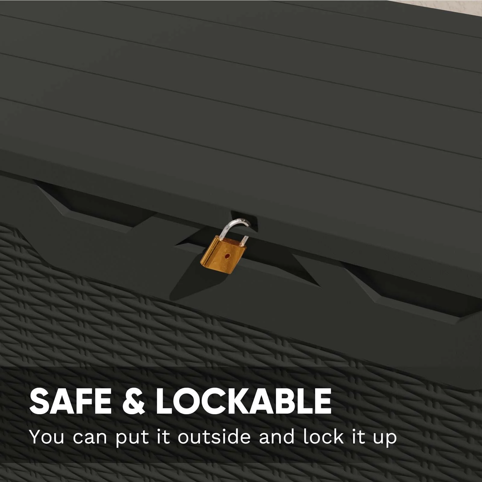 - Secure and convenient: The deck box features a lockable lid for extra security, and a hydraulic rod for easy opening and closing. You can access your items quickly and easily, without worrying about losing them or damaging them.