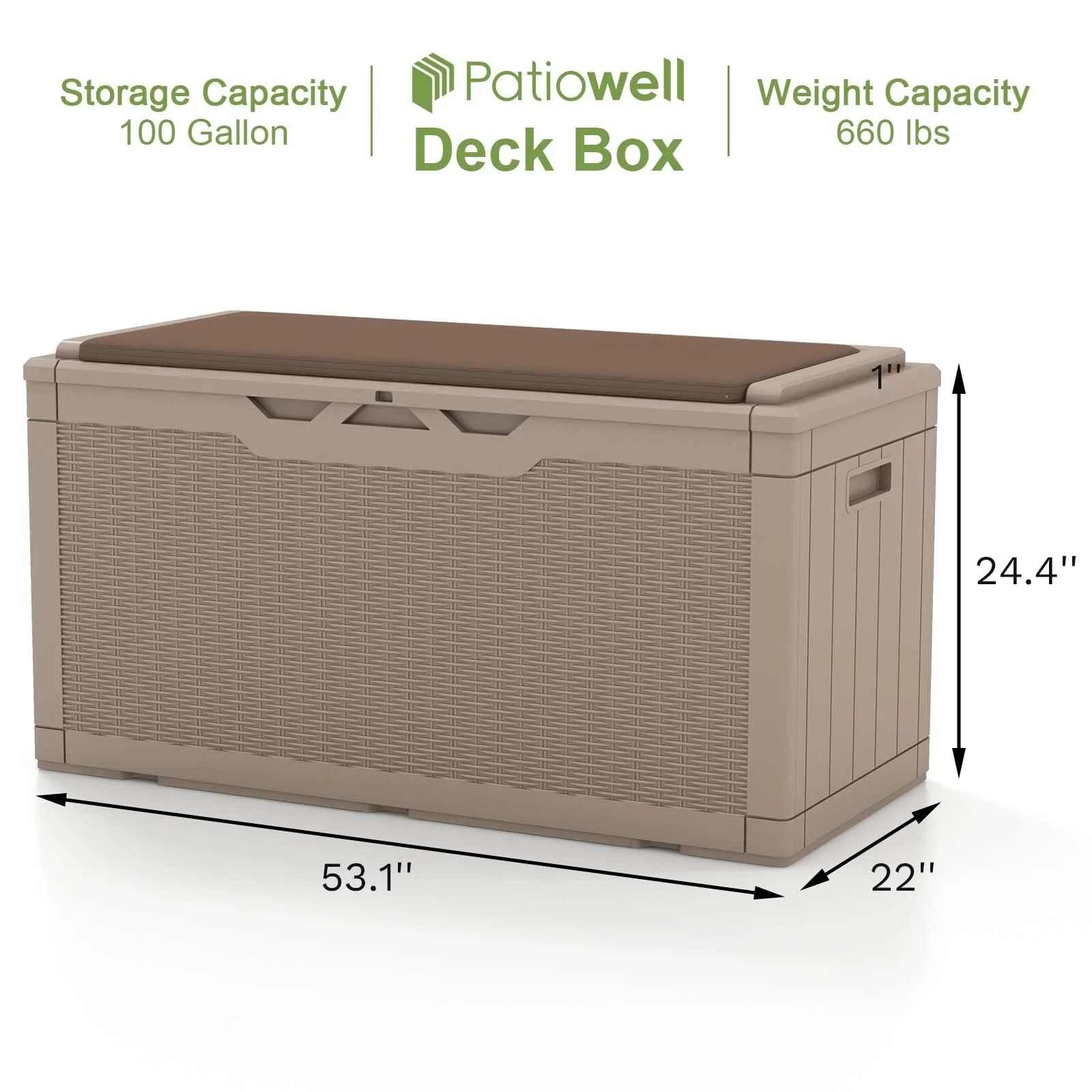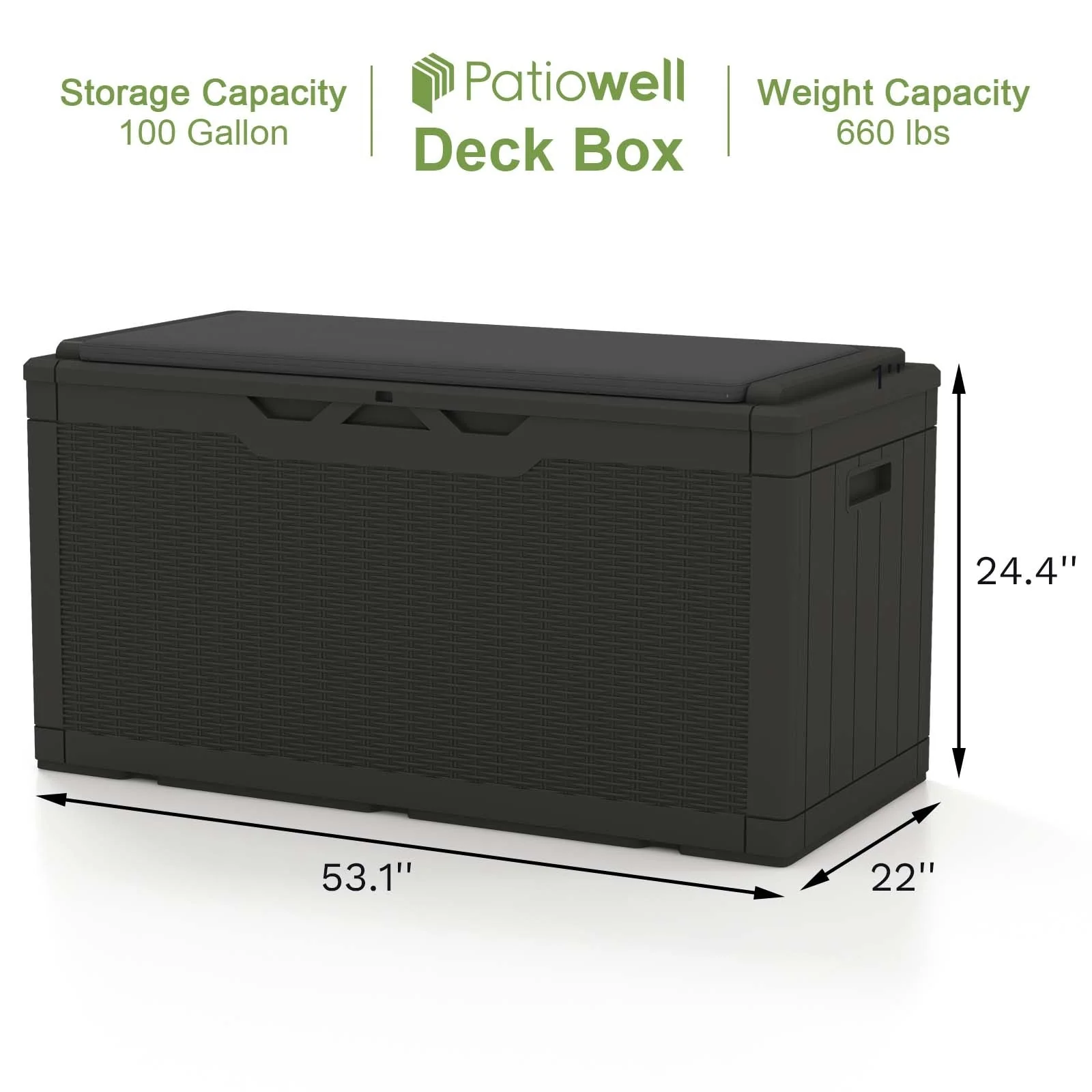 The Patiowell 100 gal deck box is a great choice for anyone who needs a large and sturdy storage box for their outdoor space. Here are some of the benefits of this product