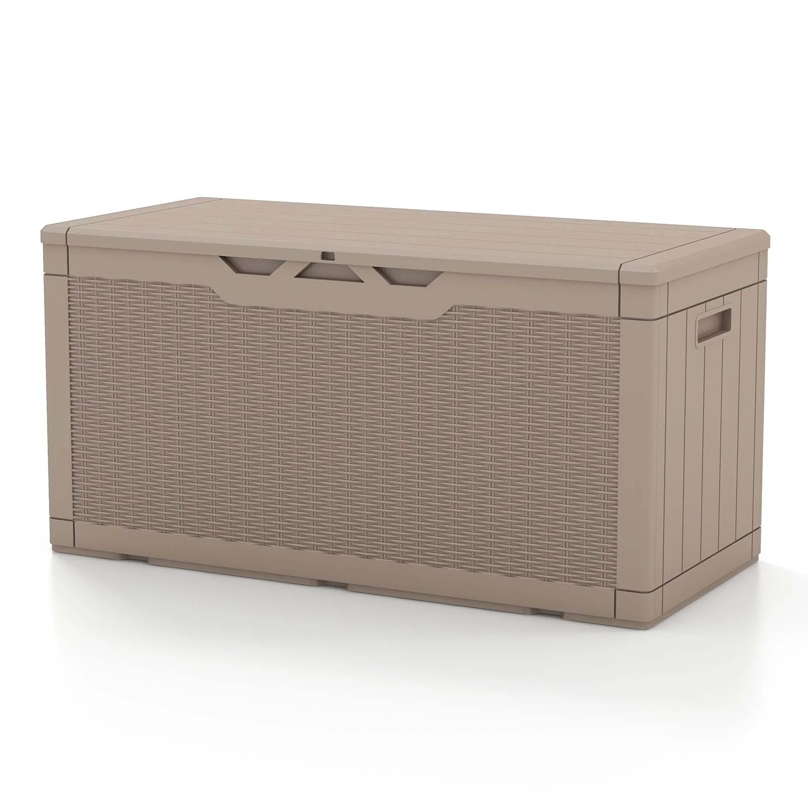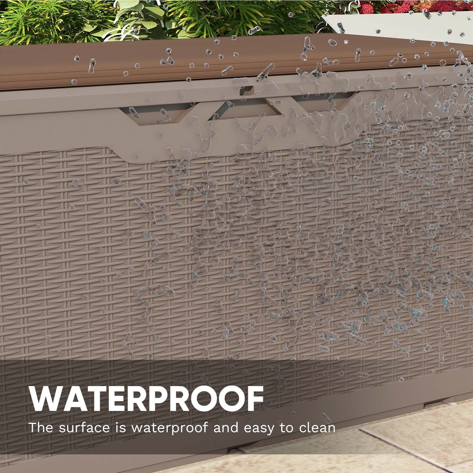 - Elegant and stylish: The deck box has a rattan design that adds a touch of elegance to your outdoor decor. It comes in four colors, brown / grey / tan / black, to match your preference and style.