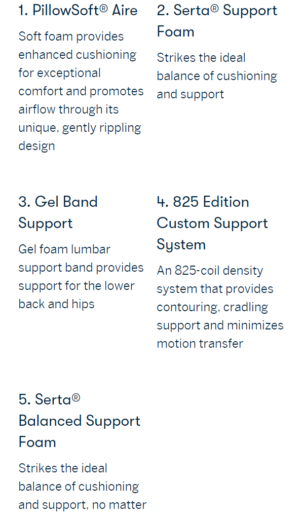 - 825-coil density system provides contouring, cradling support that minimizes motion transfer, plus an extra-deep foam rail helps reduce edge roll-off and extends the sleep surface