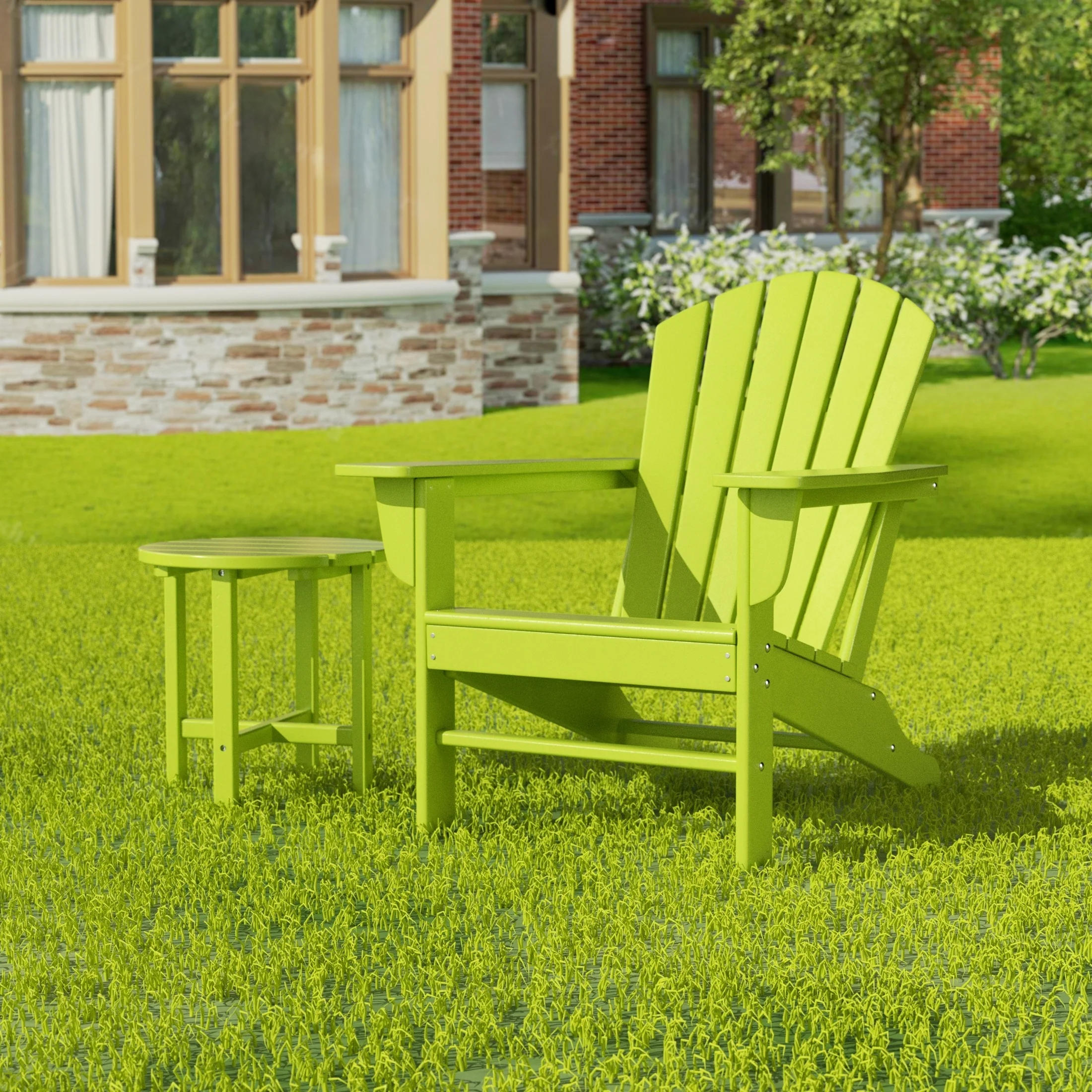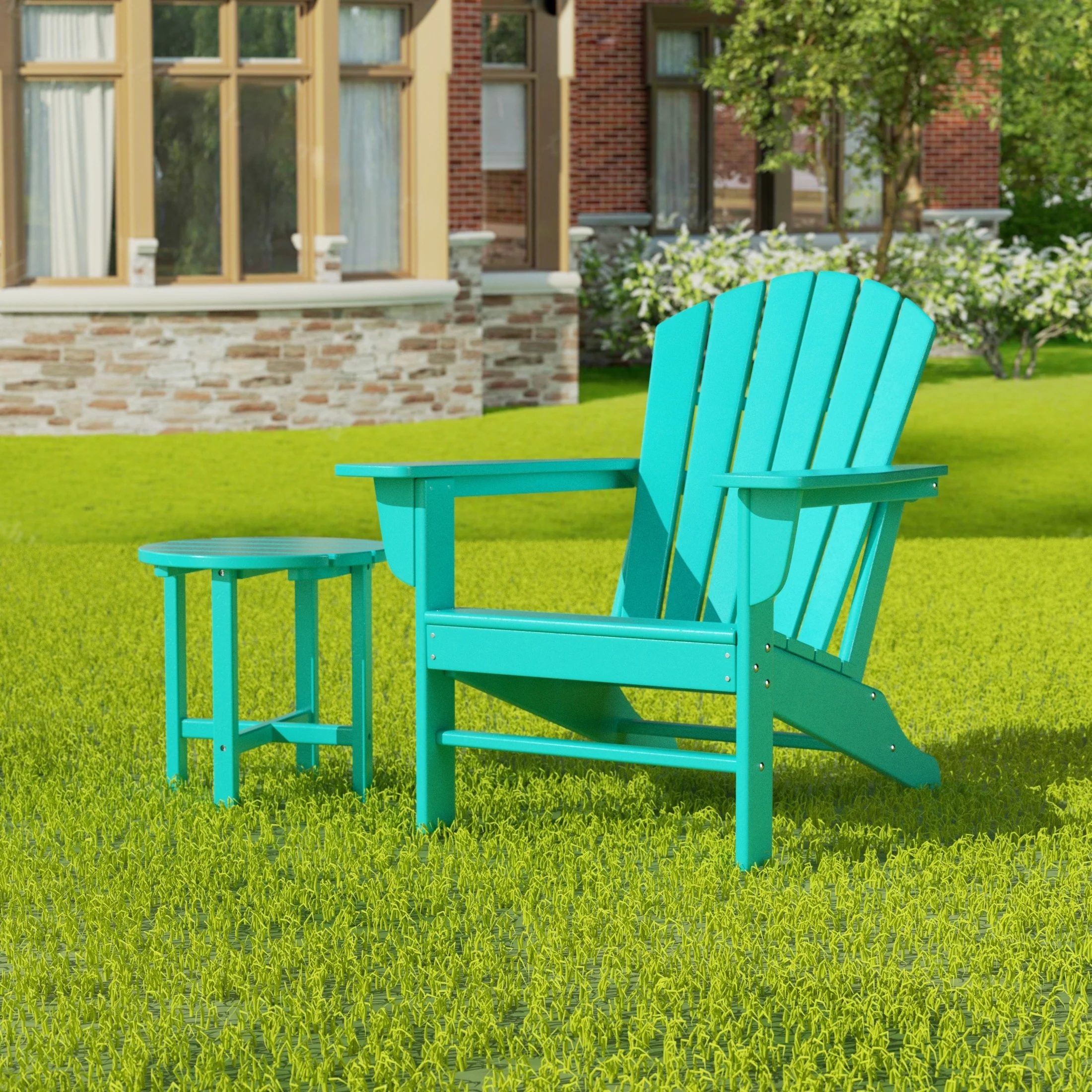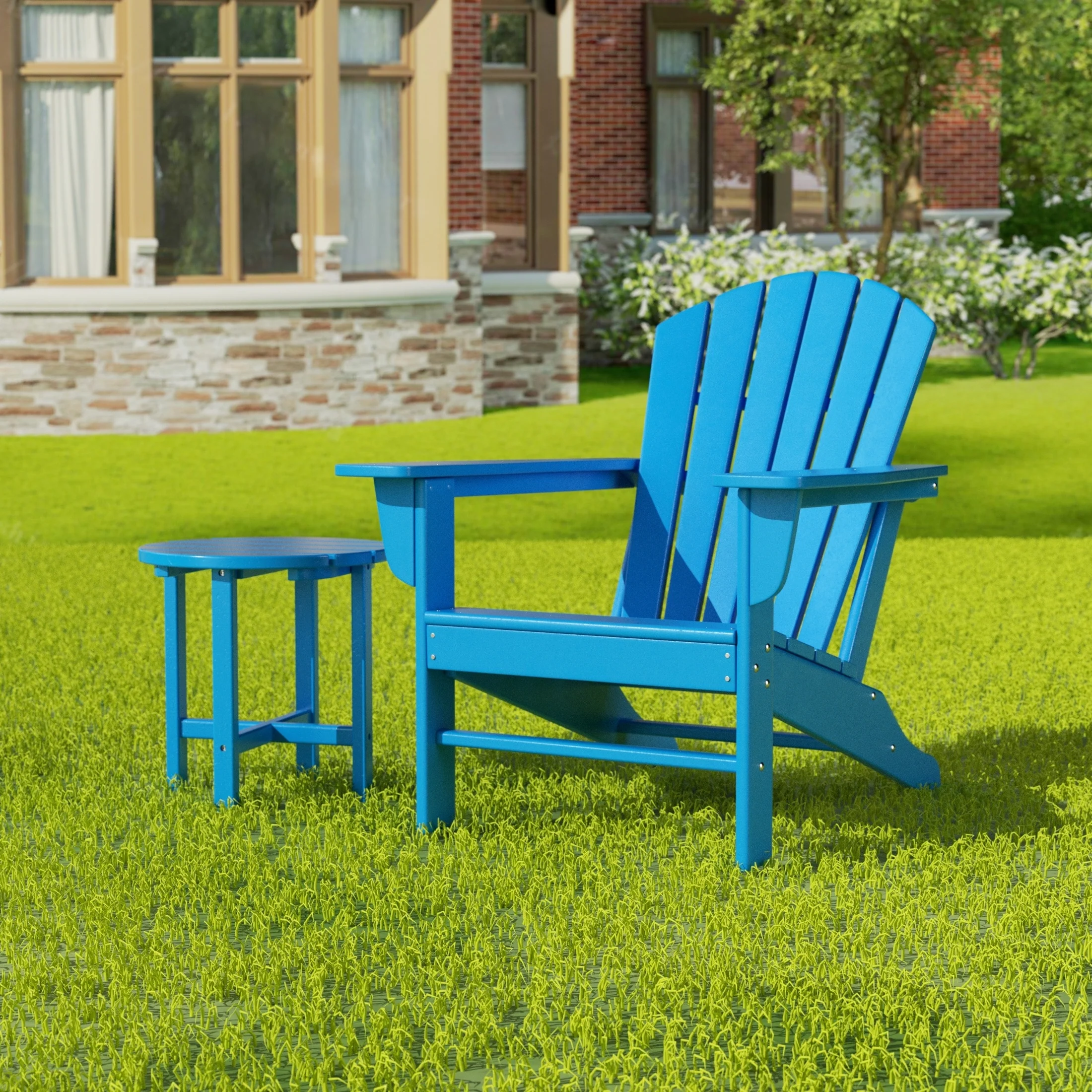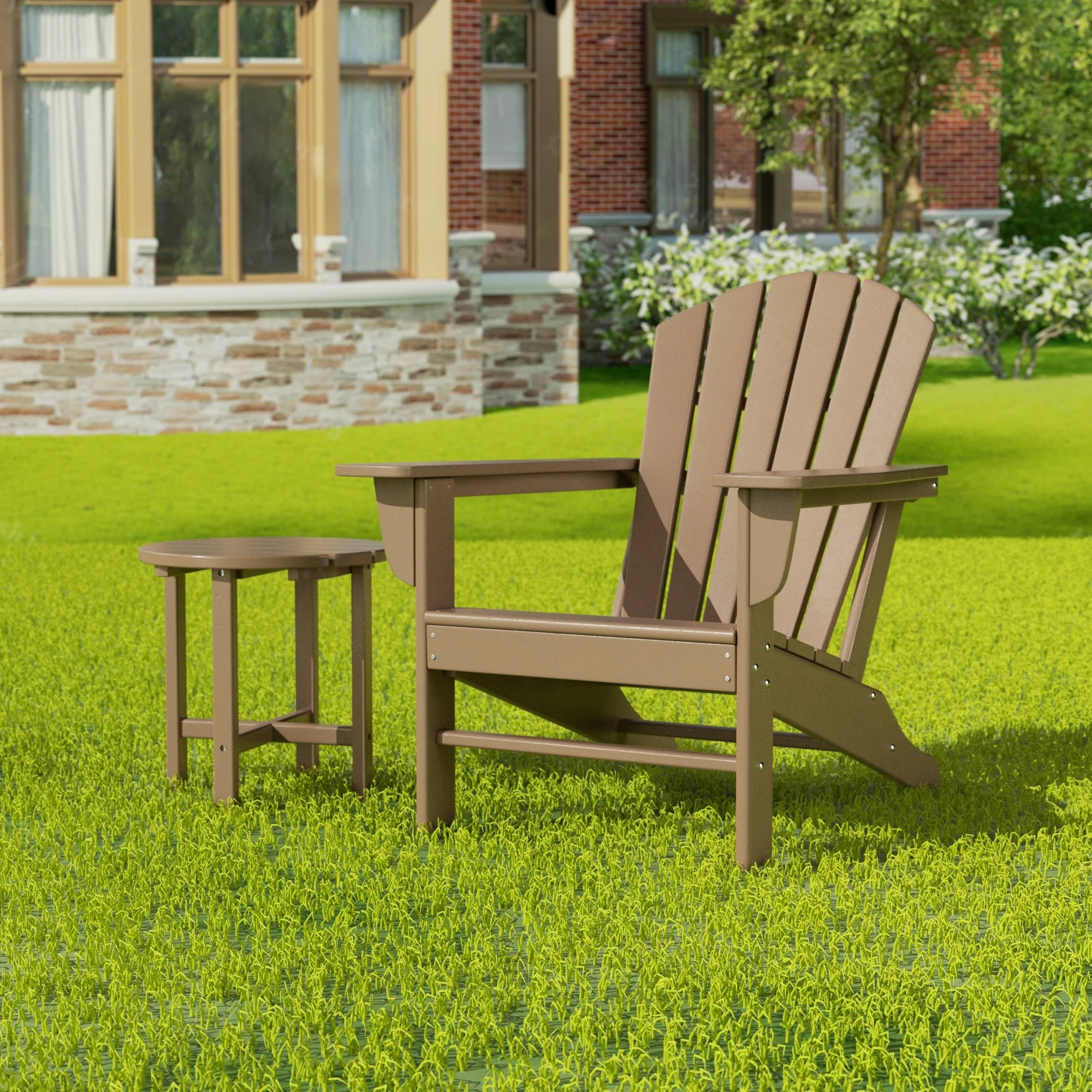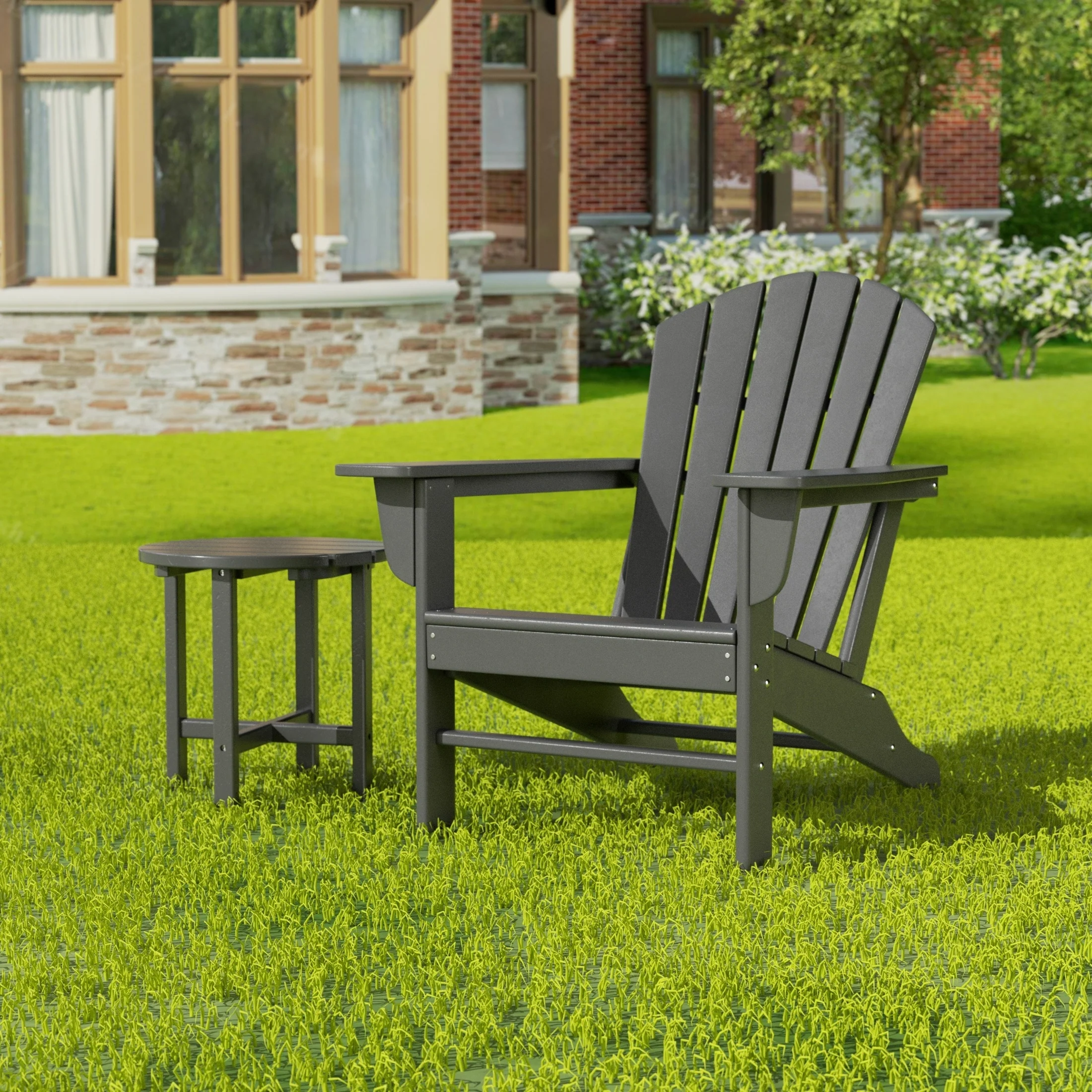 Relax with this beautiful two piece Adirondack set. Includes one chair and side table - this set is sure to impress with an ergonomical design with comfortable wide arms and contoured seat and back with a reclined silhouette. Makes the perfect addition to any backyard or outdoor space.
