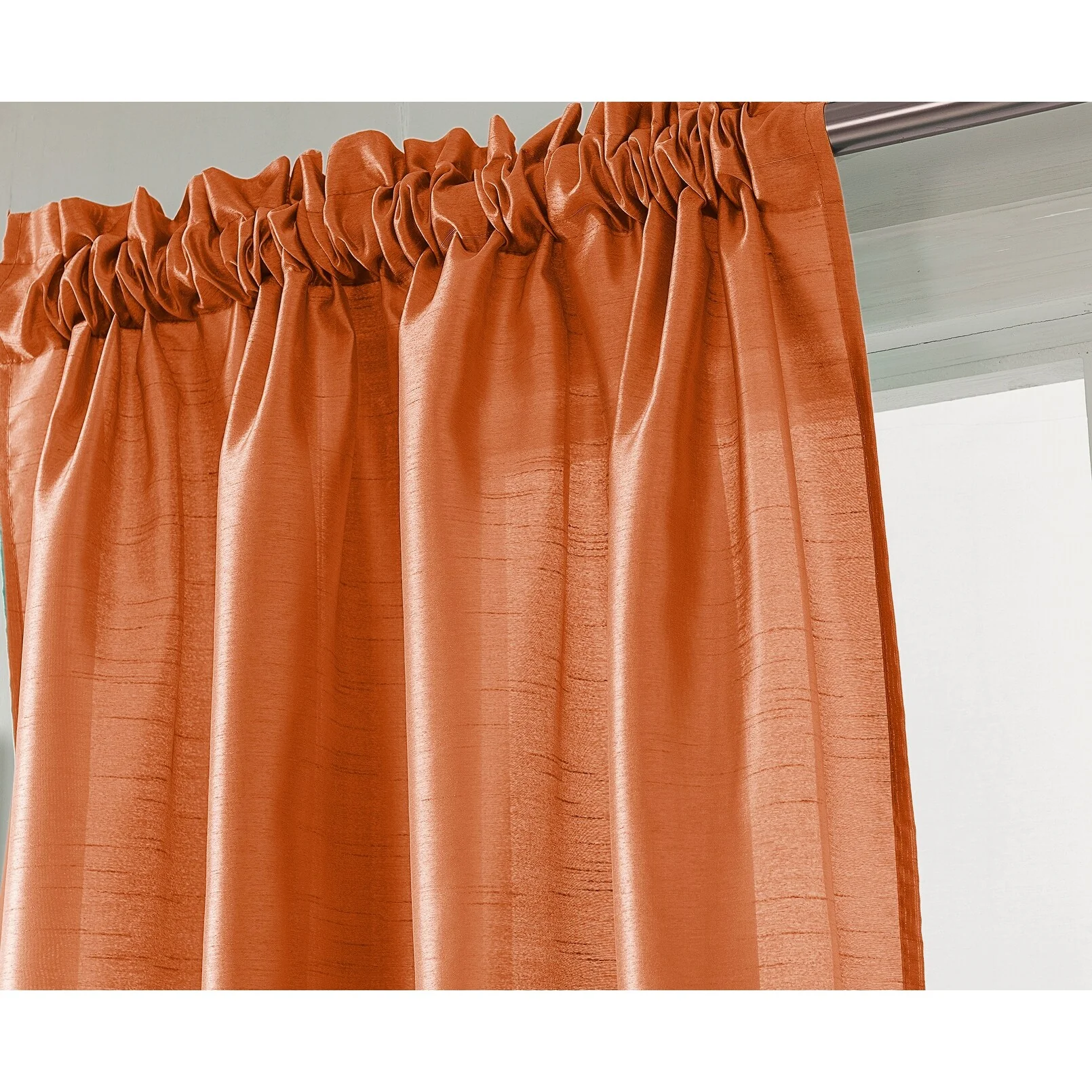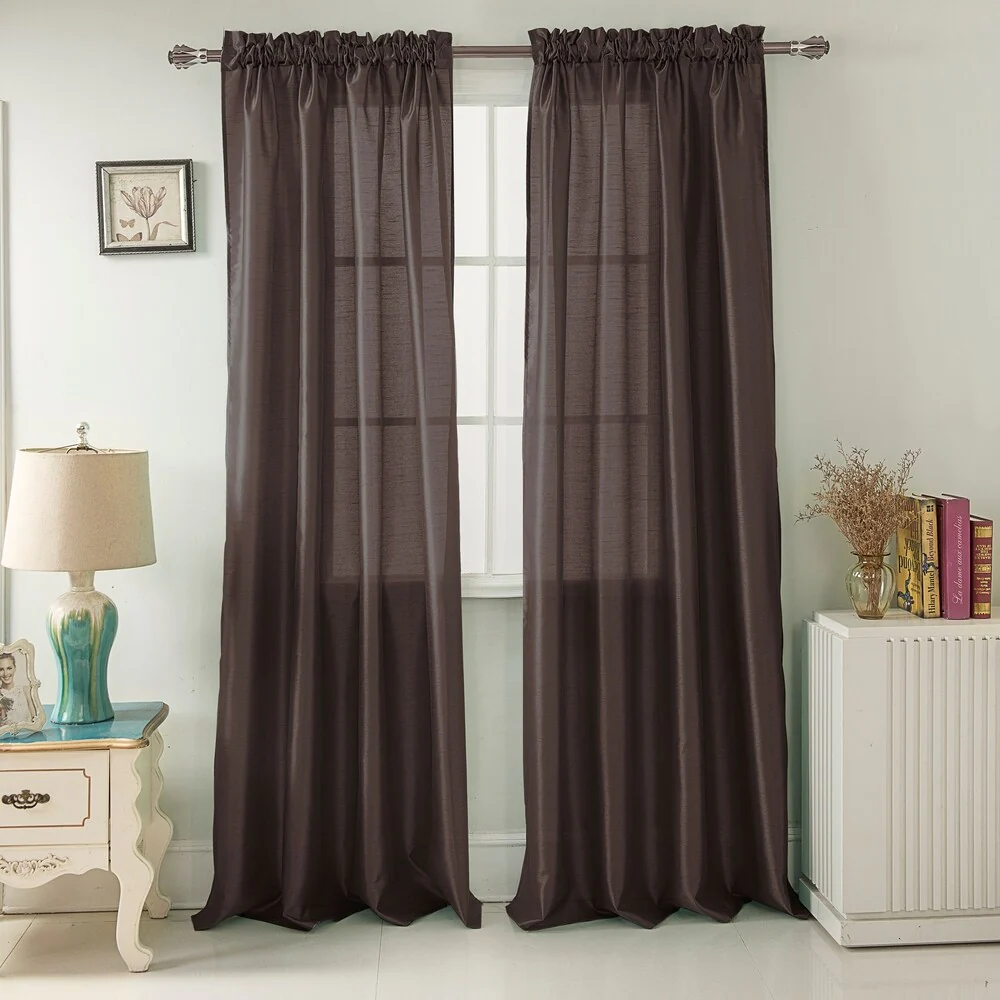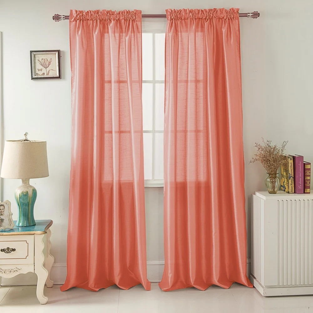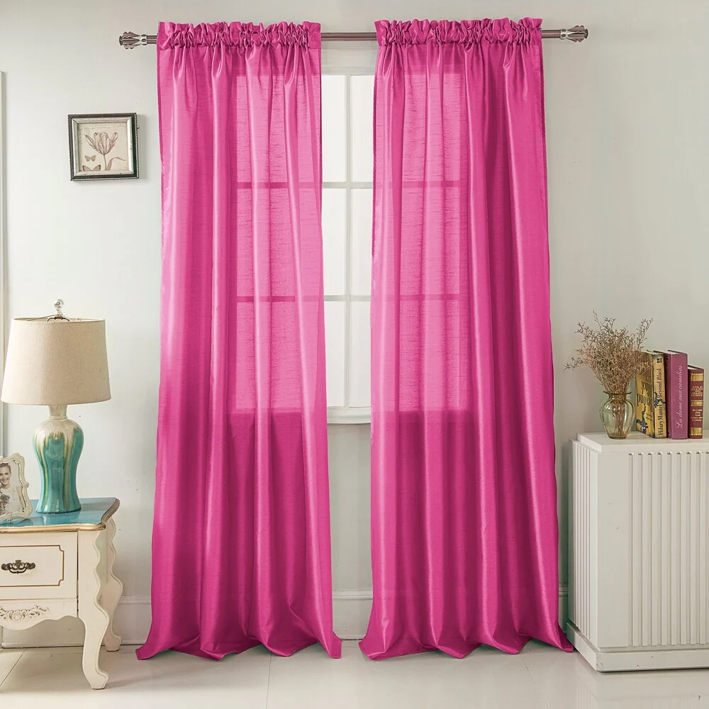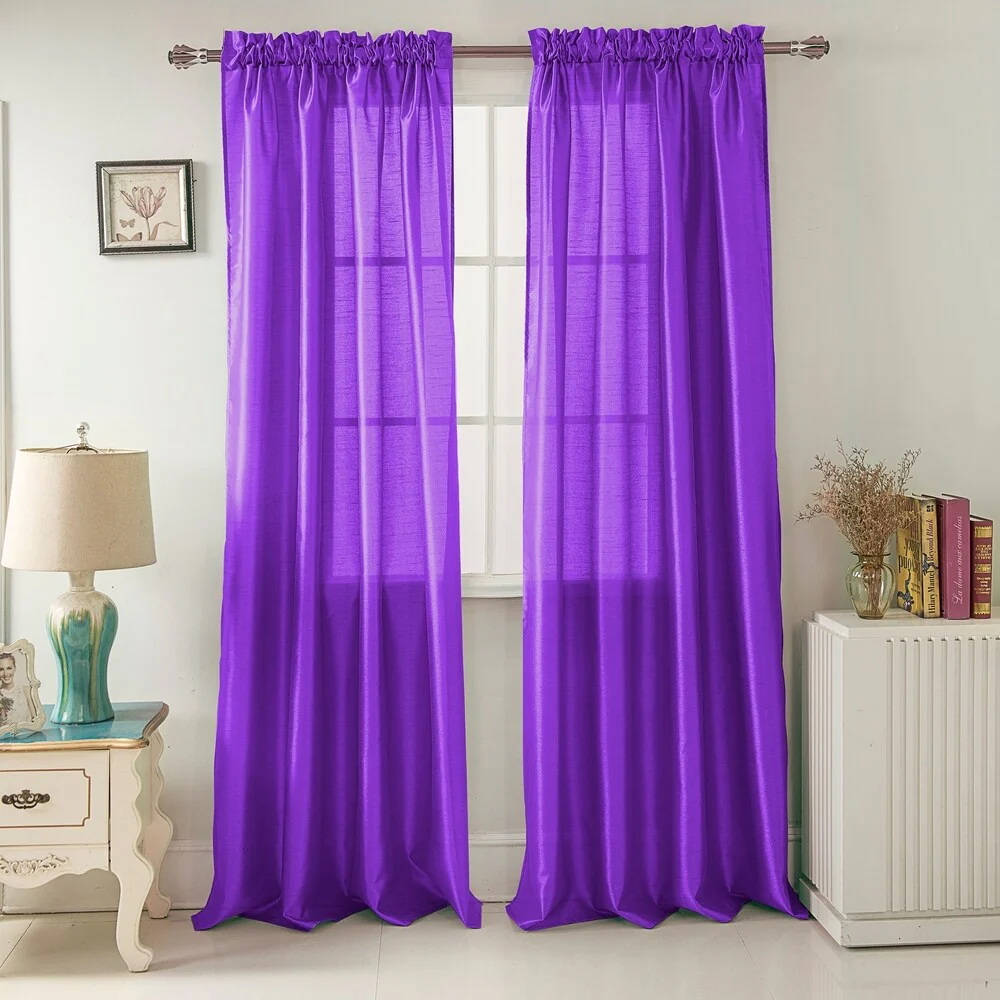 Add a touch of elegance to your windows with this stunning Porch & Den Eads curtain panel. Crafted from high-quality polyester faux silk, this semi-sheer panel is available in a variety of bright colors that are sure to catch the eye. The slightly shimmery fabric will beautifully filter natural light into your room, creating a warm and inviting atmosphere. Featuring a convenient rod pocket header, this panel is easy to hang and adds a sophisticated touch to any space.