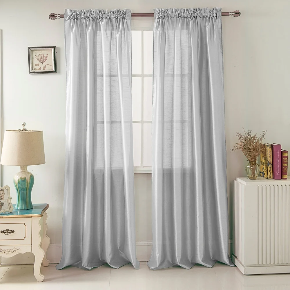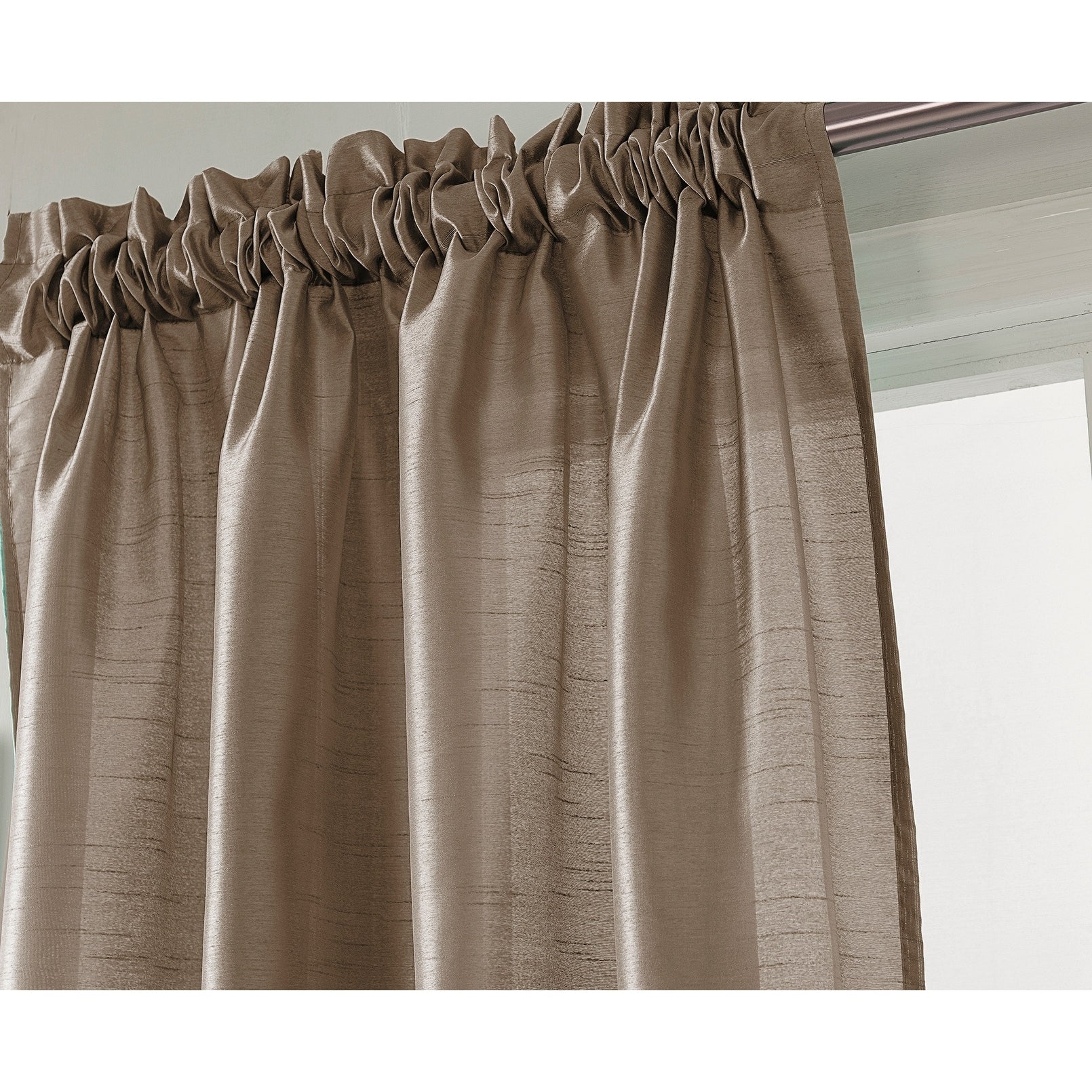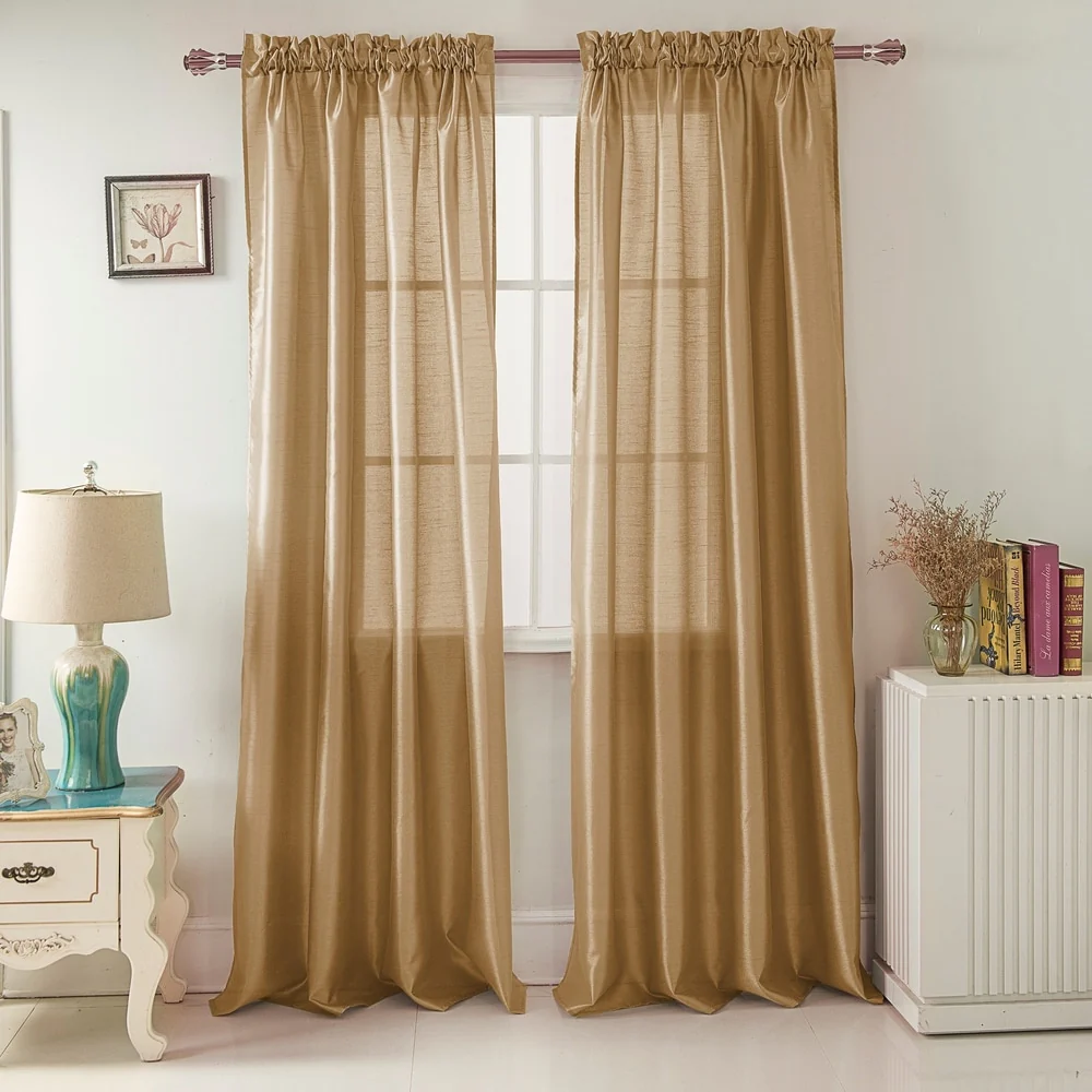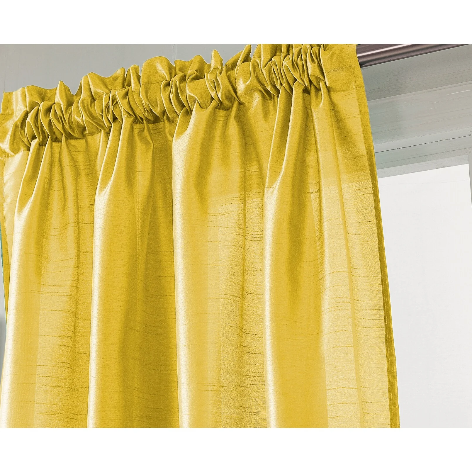 Add a touch of elegance to your windows with this stunning Porch & Den Eads curtain panel. Crafted from high-quality polyester faux silk, this semi-sheer panel is available in a variety of bright colors that are sure to catch the eye. The slightly shimmery fabric will beautifully filter natural light into your room, creating a warm and inviting atmosphere. Featuring a convenient rod pocket header, this panel is easy to hang and adds a sophisticated touch to any space.
