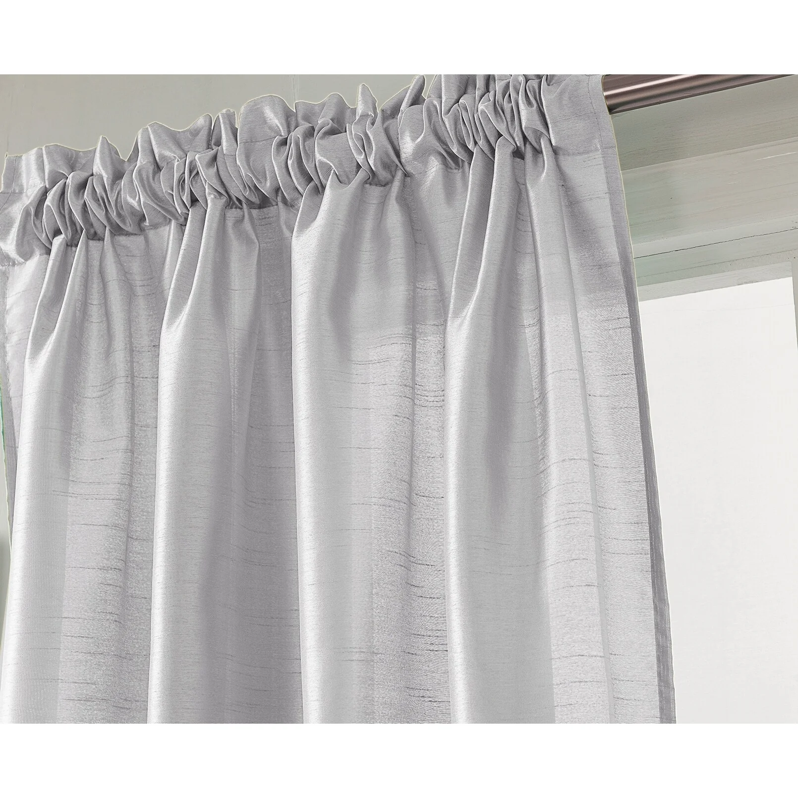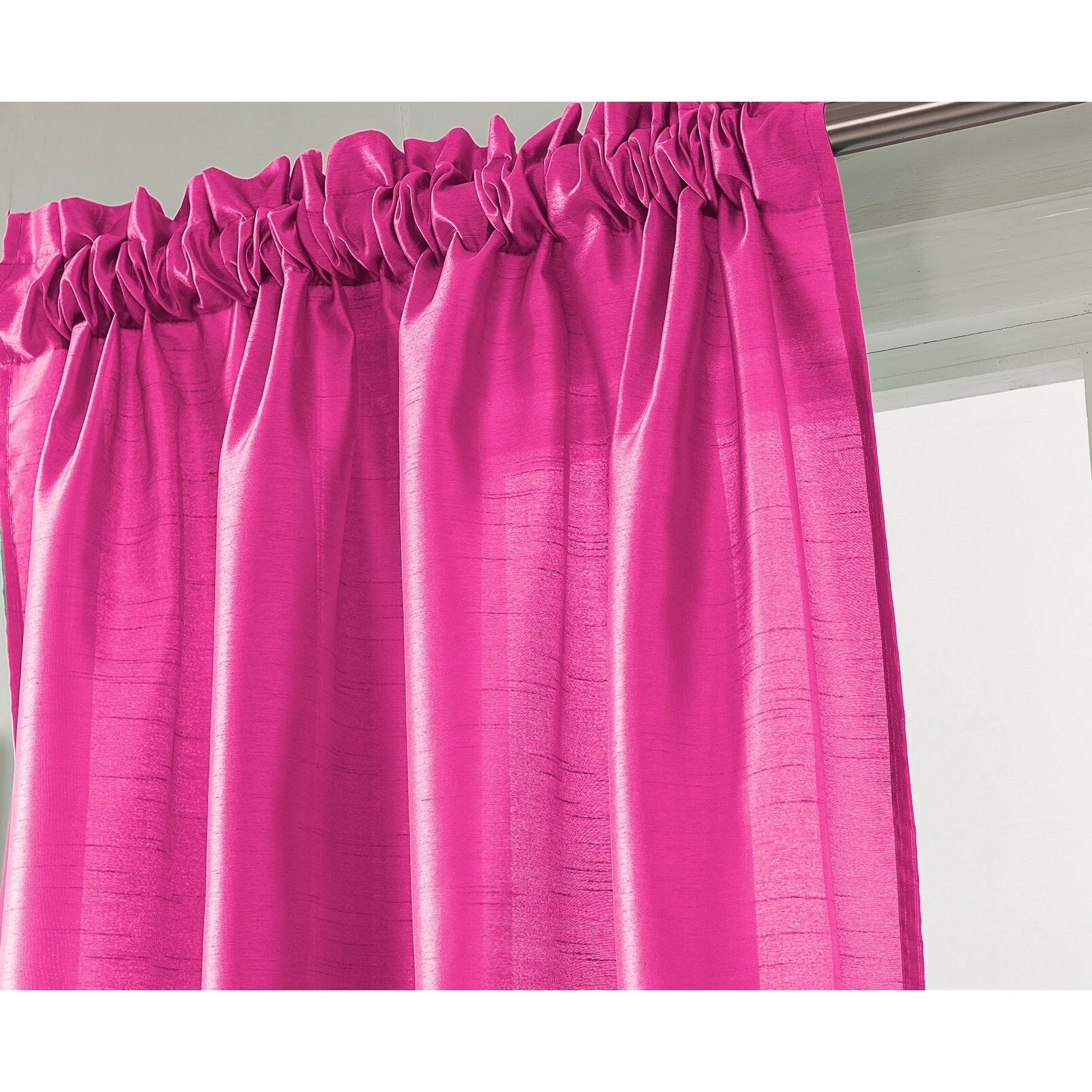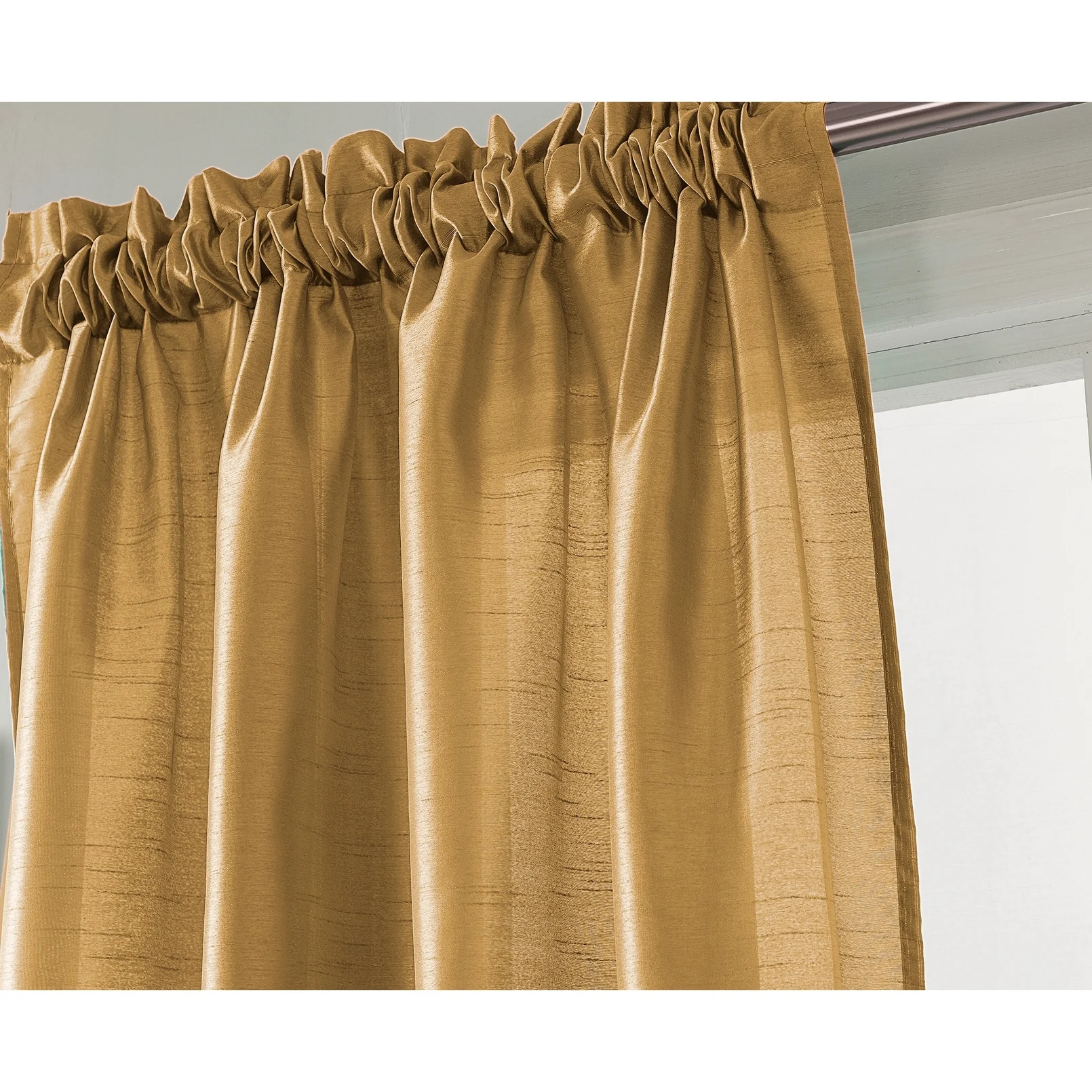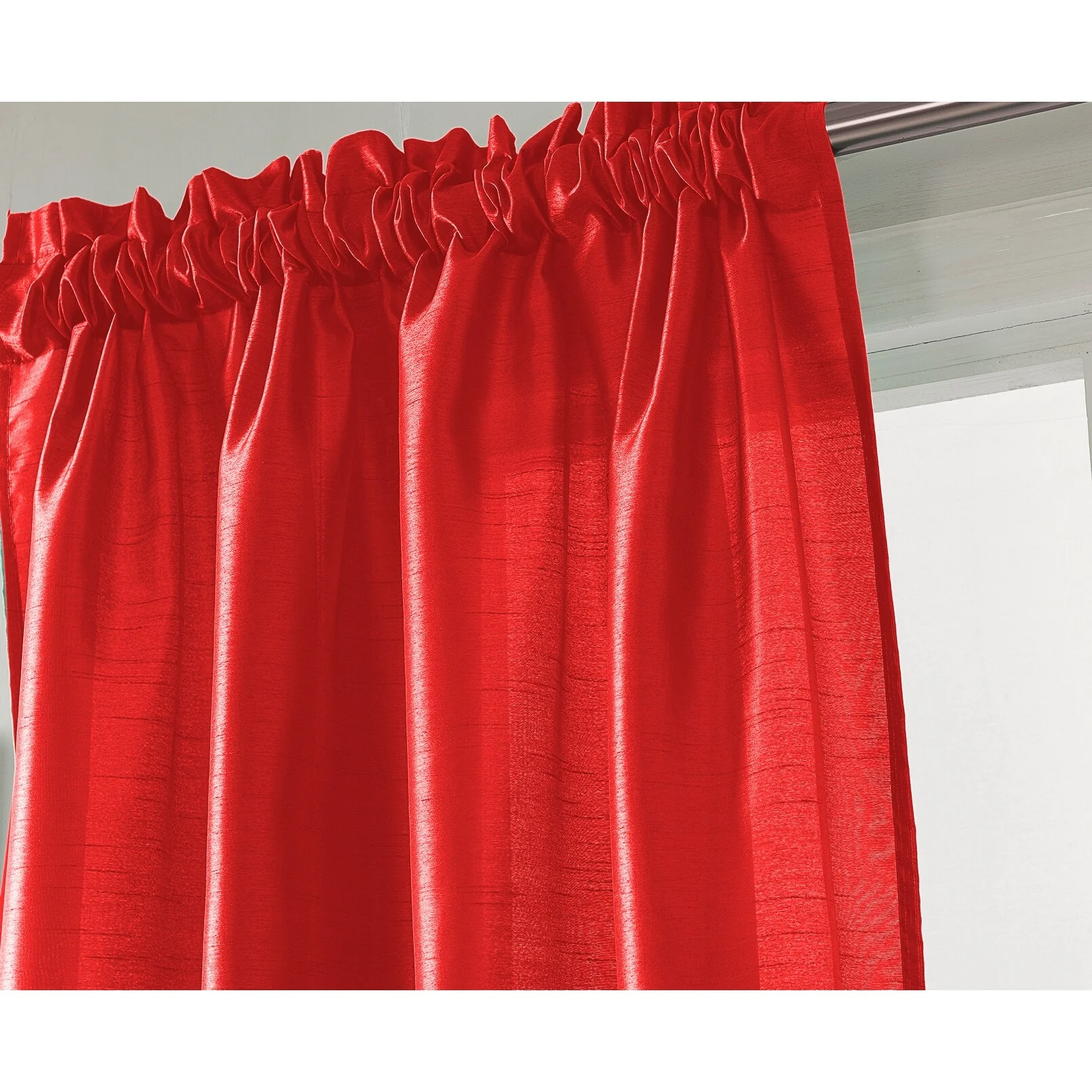 Add a touch of elegance to your windows with this stunning Porch & Den Eads curtain panel. Crafted from high-quality polyester faux silk, this semi-sheer panel is available in a variety of bright colors that are sure to catch the eye. The slightly shimmery fabric will beautifully filter natural light into your room, creating a warm and inviting atmosphere. Featuring a convenient rod pocket header, this panel is easy to hang and adds a sophisticated touch to any space.