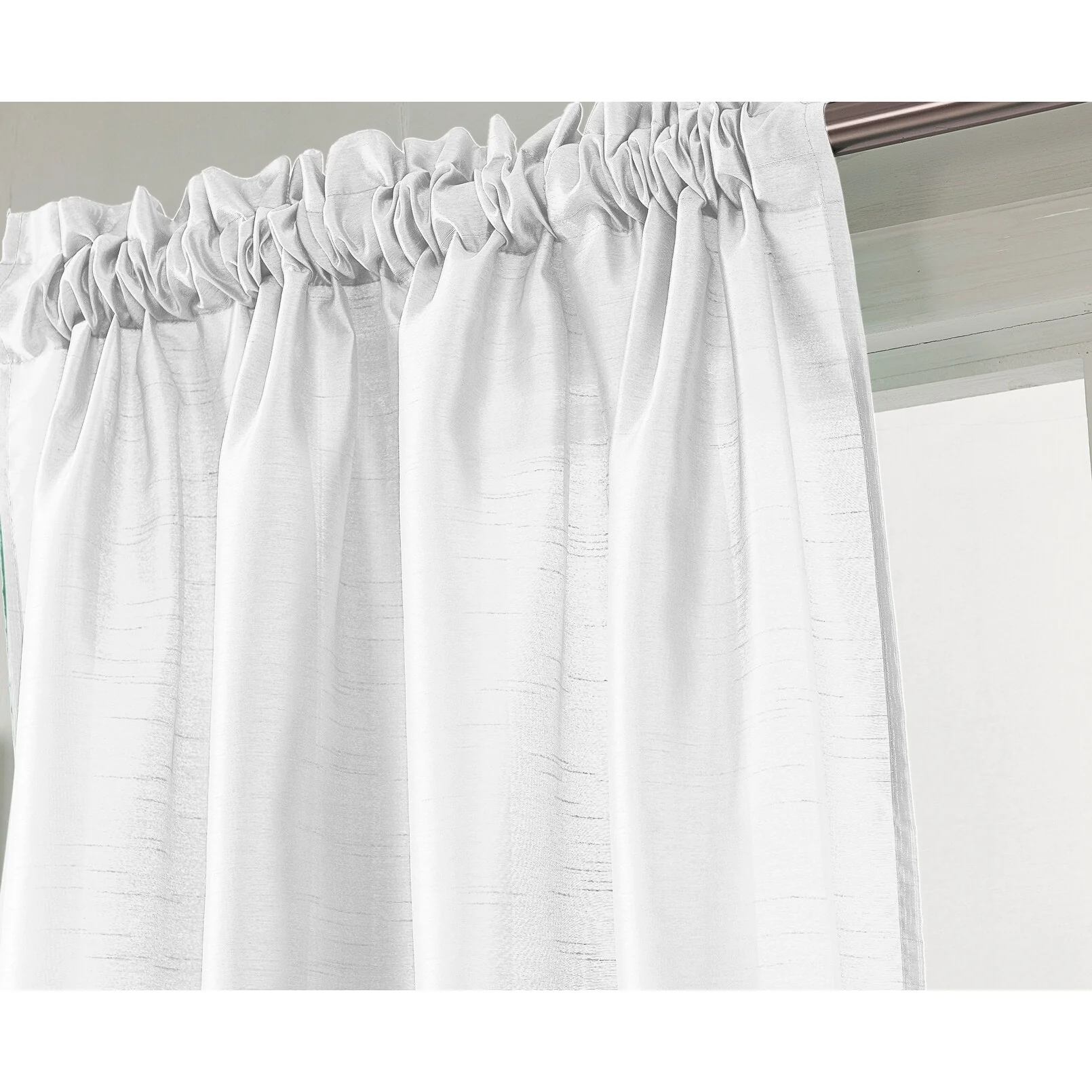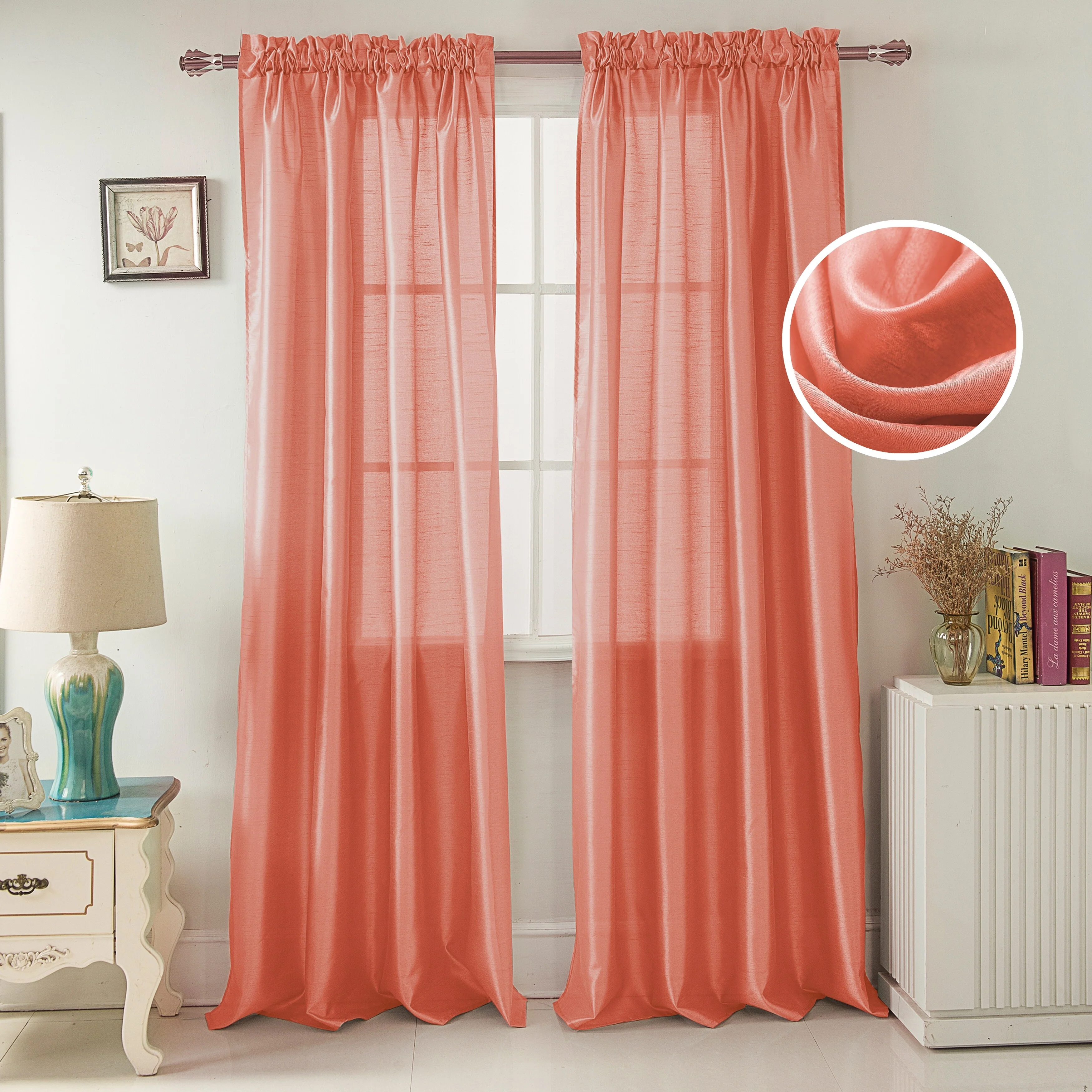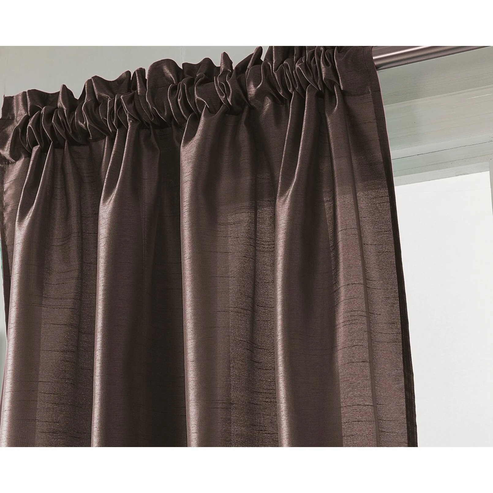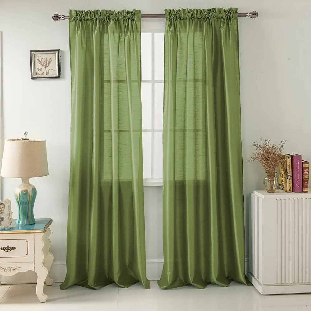 Add a touch of elegance to your windows with this stunning Porch & Den Eads curtain panel. Crafted from high-quality polyester faux silk, this semi-sheer panel is available in a variety of bright colors that are sure to catch the eye. The slightly shimmery fabric will beautifully filter natural light into your room, creating a warm and inviting atmosphere. Featuring a convenient rod pocket header, this panel is easy to hang and adds a sophisticated touch to any space.