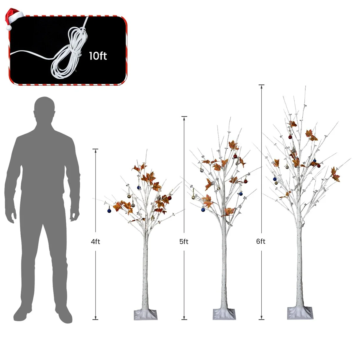 - 🎉🎄🎁Easy to Assemble - Equipped with 24 maple leaves, 24 colored balls (gold, silver, red, blue) with a diameter of 3cm in different colors, 200 cherry blossoms, the whole structure of 4ft LED lighting birch tree is divided into 2 parts, 5ft into 3 parts and 6ft into 4 parts, and easy to assemble together. You can also place decorations that you and your family like on the Christmas tree.
