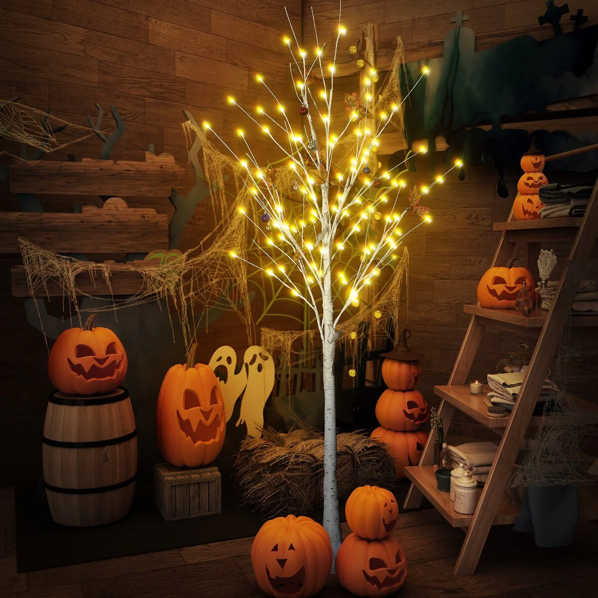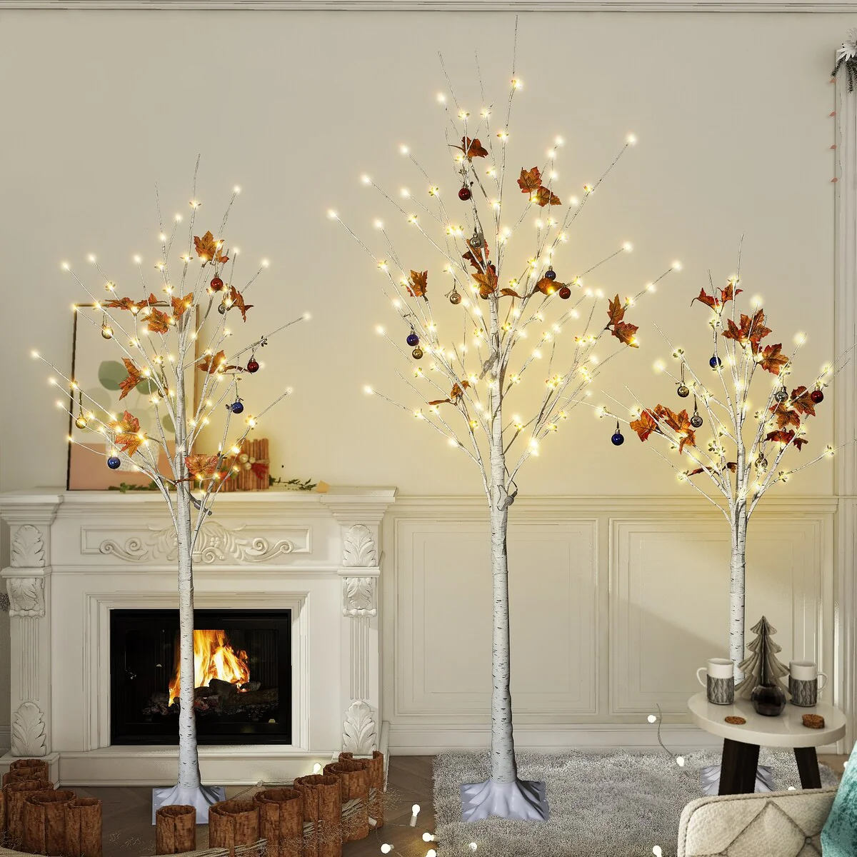 - Let's create a romantic atmosphere in our home together! This is a surprise lighting tree set you'll love. This 3-piece lighted tree and branch set can create more romantic space in any room. This Christmas tree lights set comes in three sizes, 4FT, 5FT, 6FT. 4FT comes with 48 warm white lights pre-installed, 5FT comes with 56 warm white lights pre-installed, and 6FT comes with 96 warm white lights pre-installed. With its non-removable hinge structure, each branch can be lowered to the correct position for the final shape. We also matched the maple leaves, cherry blossom decoration, decorative balls to further enhance the romantic atmosphere. The pre-lit birch LED lighting tree and branches provide a romantic ambiance for your everyday entertaining, holiday, wedding, Christmas or party. Whether you place this LED lighting tree and branches in your living room, bedroom or yard, you'll love it as much as we do.