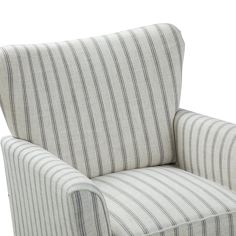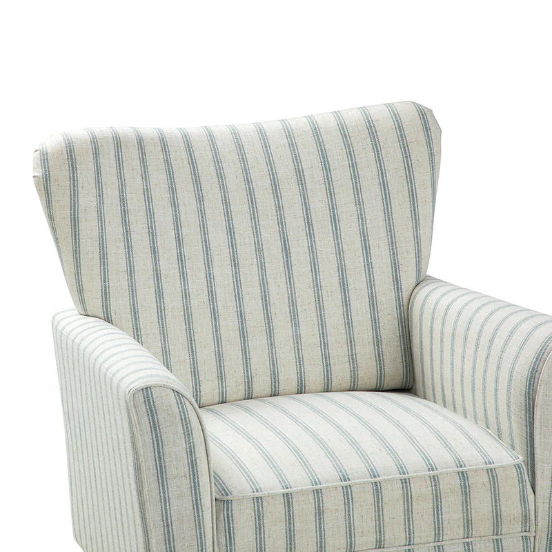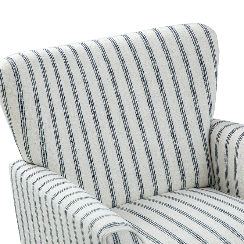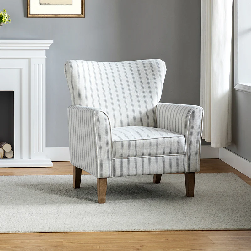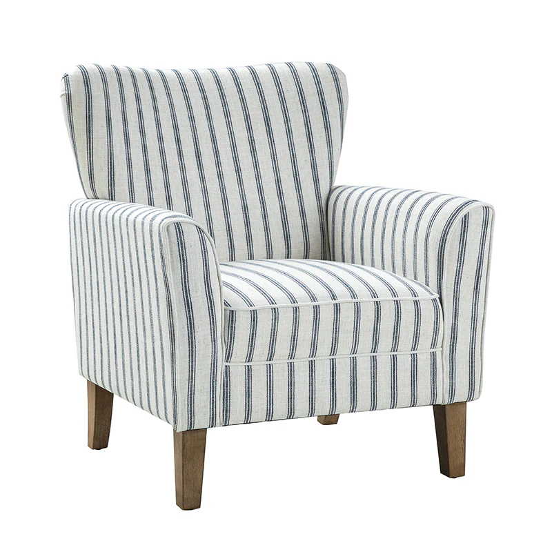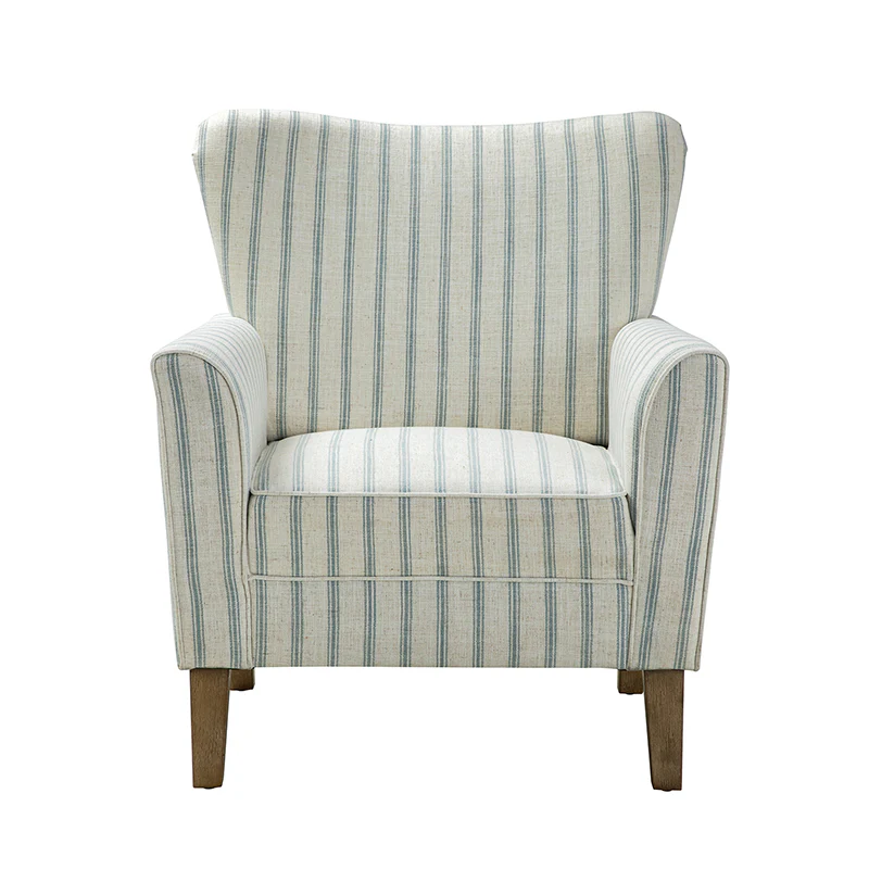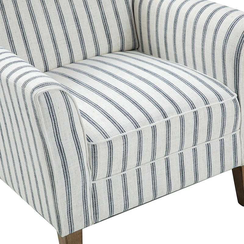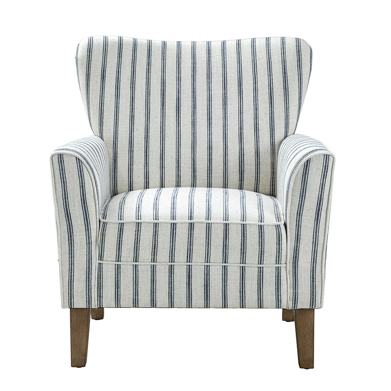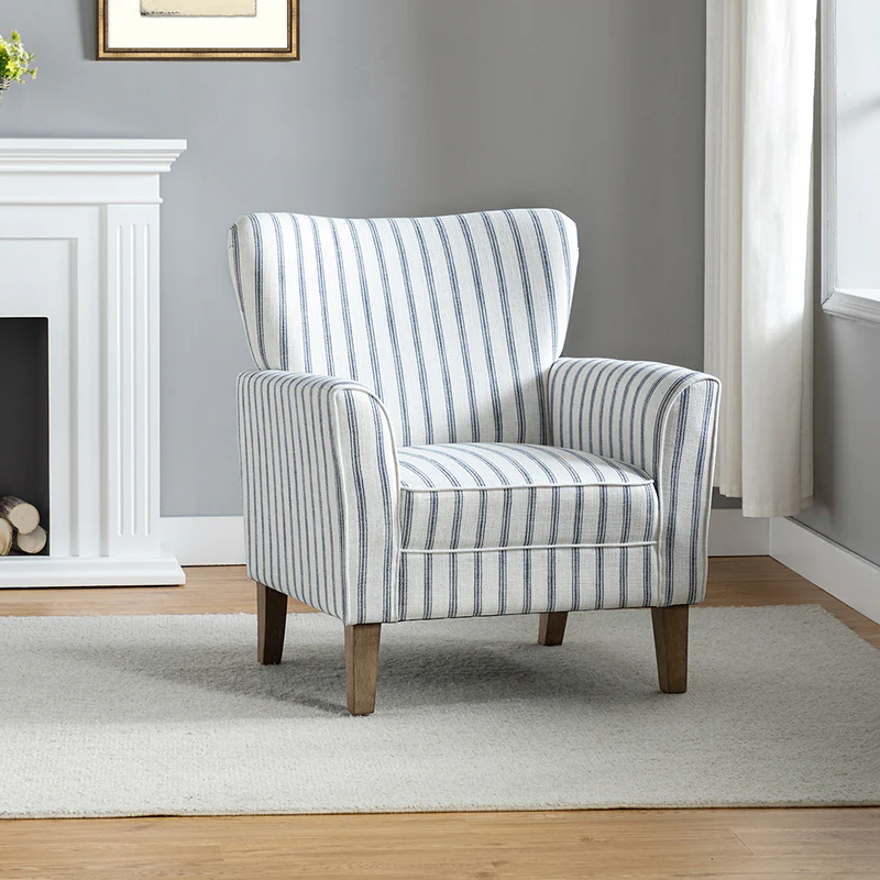 Bringing just the right amount of coastal farmhouse modern style to your living room, this armchair features a classic nautical stripe pattern and fresh hues. It's made with a sturdy wooden frame that's guaranteed to last for years. We love how its wide wingback and comfortable arms can add style to any room. Wrapped in polyester fabric, this contemporary chair has a seat padded with foam and curved springs to support you as you relax. Plus, it's easy to vacuum up those unavoidable crumbs. This chair which can add a romantic flair to your living room and can hold up to 250 lbs.