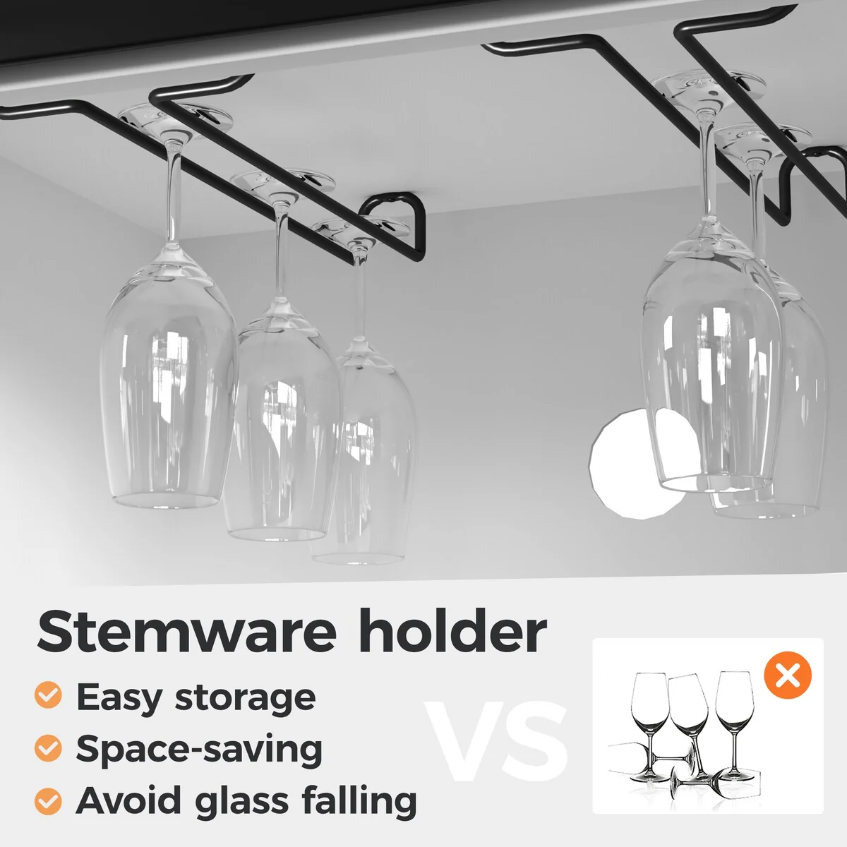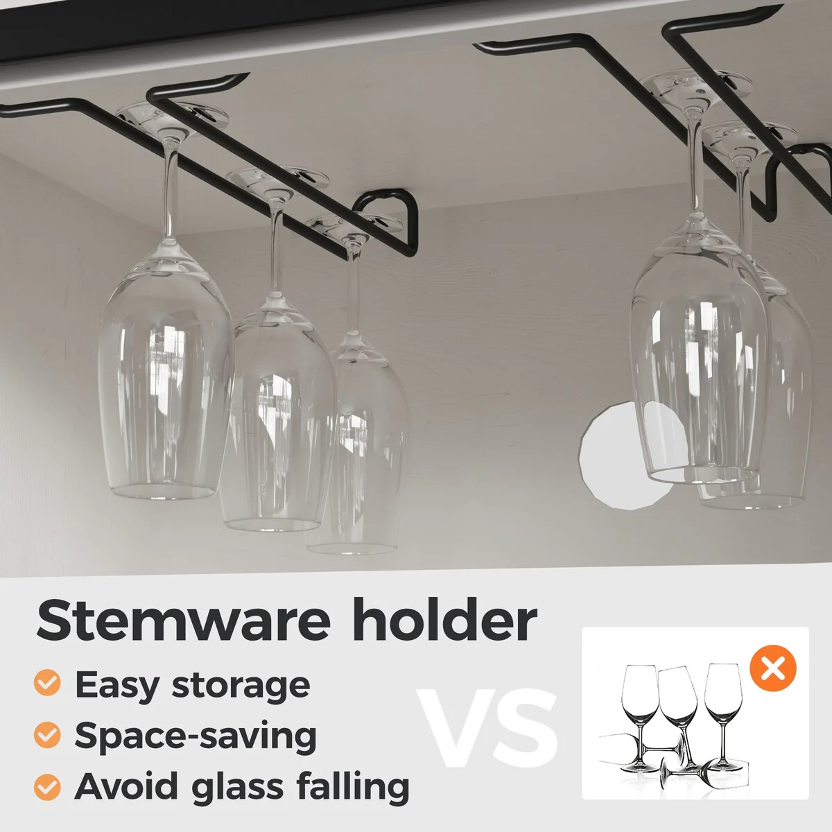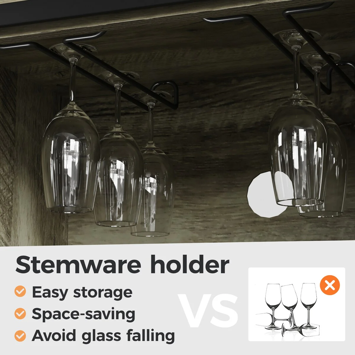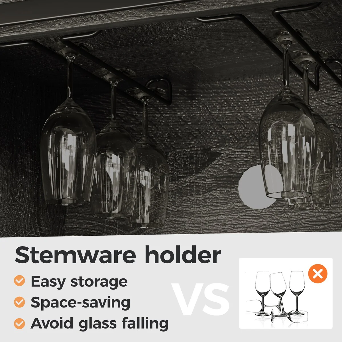 - The wine cabinet is equipped with 6 wine glass racks and 12 wine bars