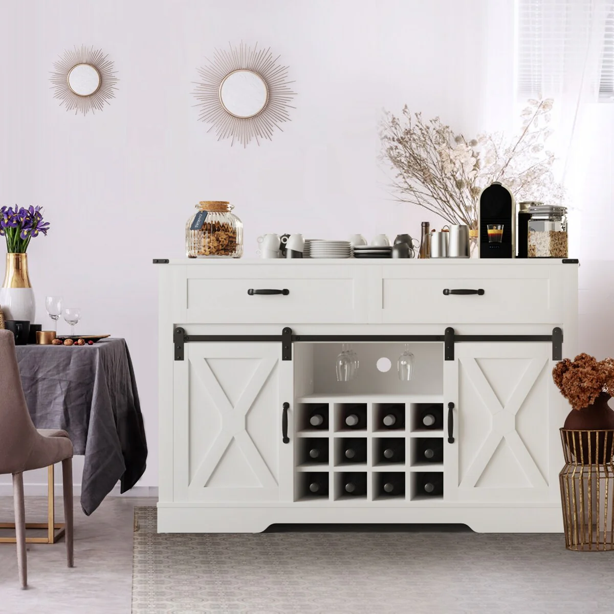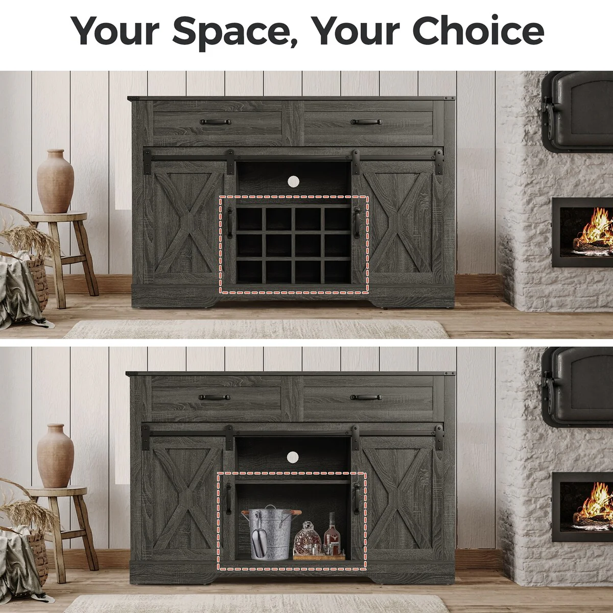 - The sliding door design of the wine cabinet makes it easy and smooth to access items