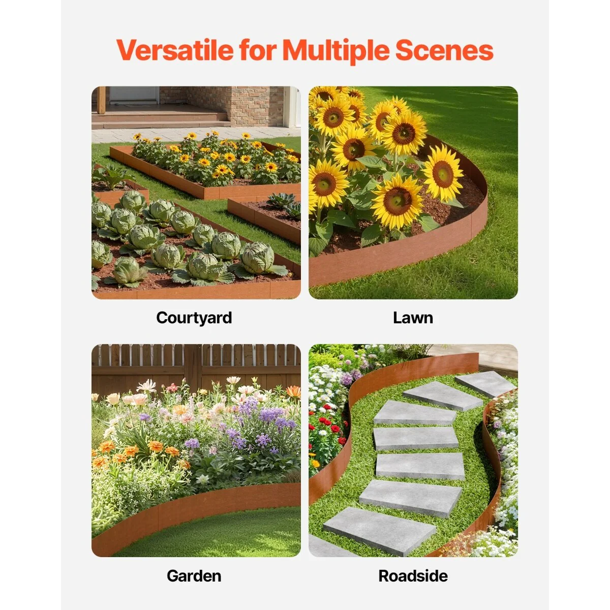 Surface Height: 4.9'' / 124.5 mm,Clips: 8 pcs, 1.5 x 10.24'' / 38 x 260 mm,Number of Edgings: 6 pcs,Product Color: Rust,Item Model Number: B40X8in-6,Product Weight: 30.12 lbs / 13.66 kg,Product Dimensions: 40 x 8 x 0.06'' / 1016 x 203.2 x 1.5 mm,Spike Height: 3.1'' / 78.7mm,Main Material: Weathering Steel