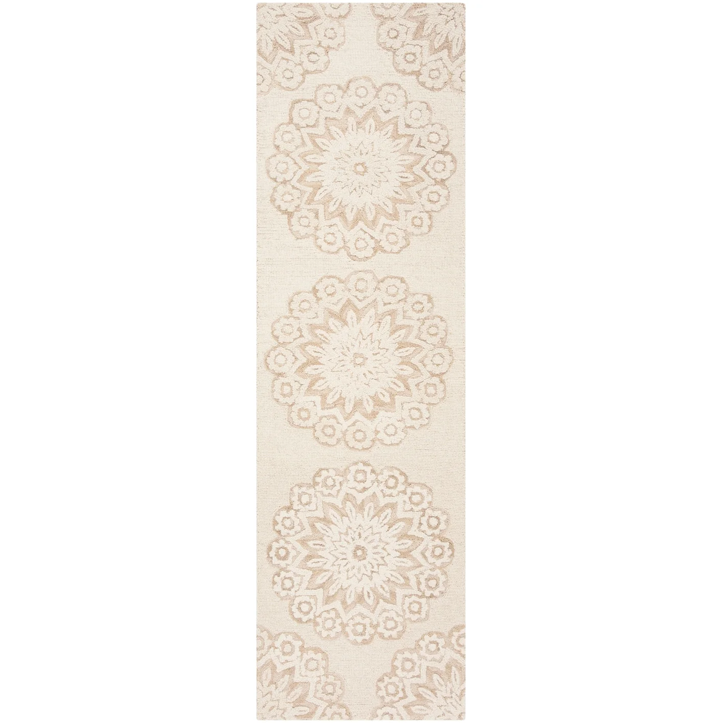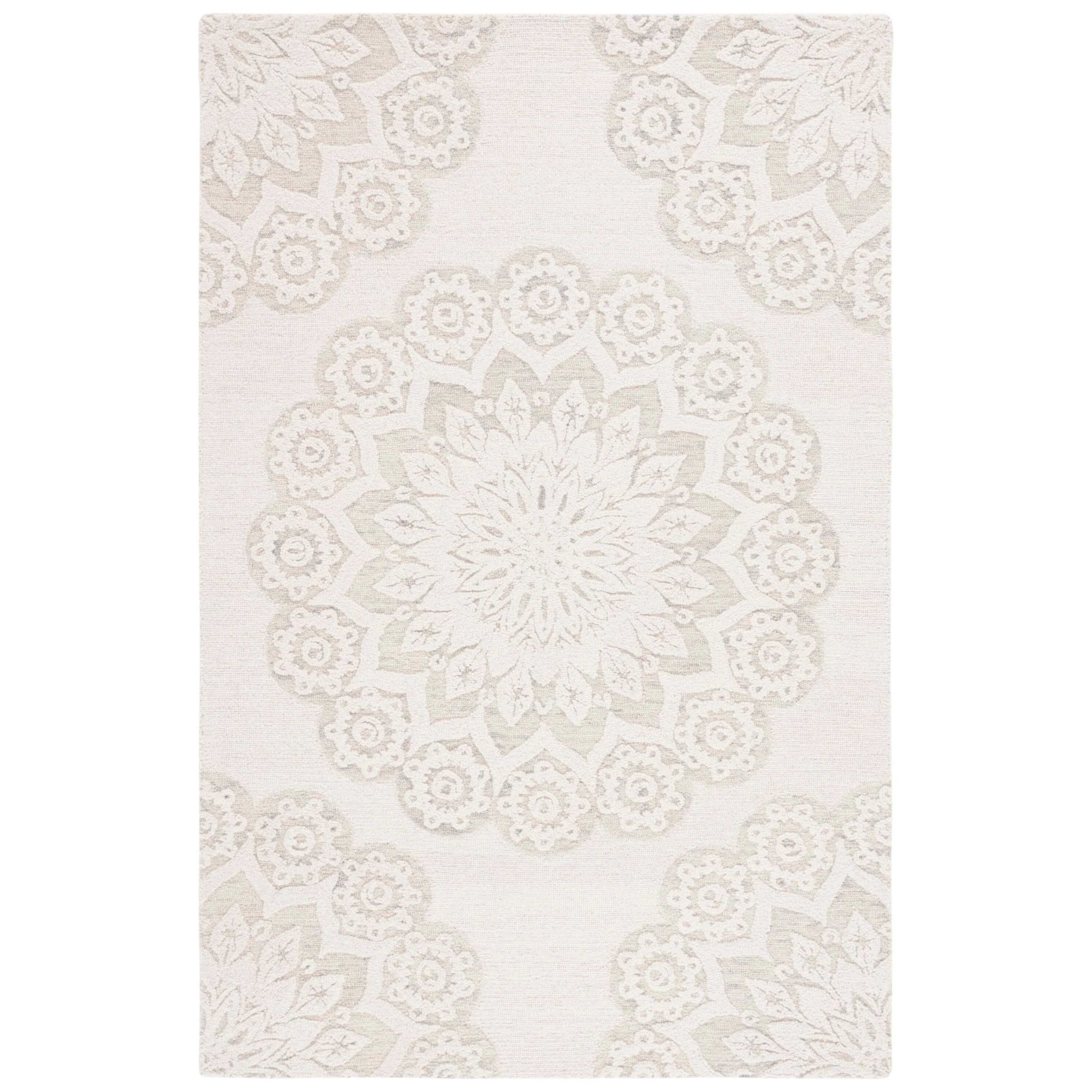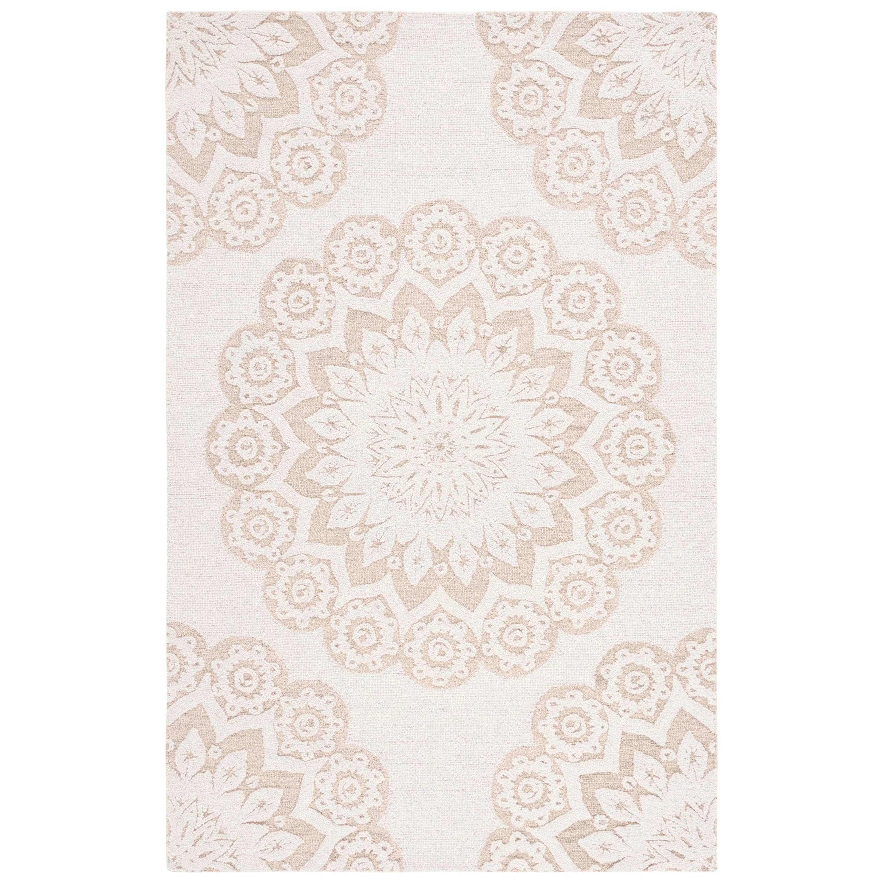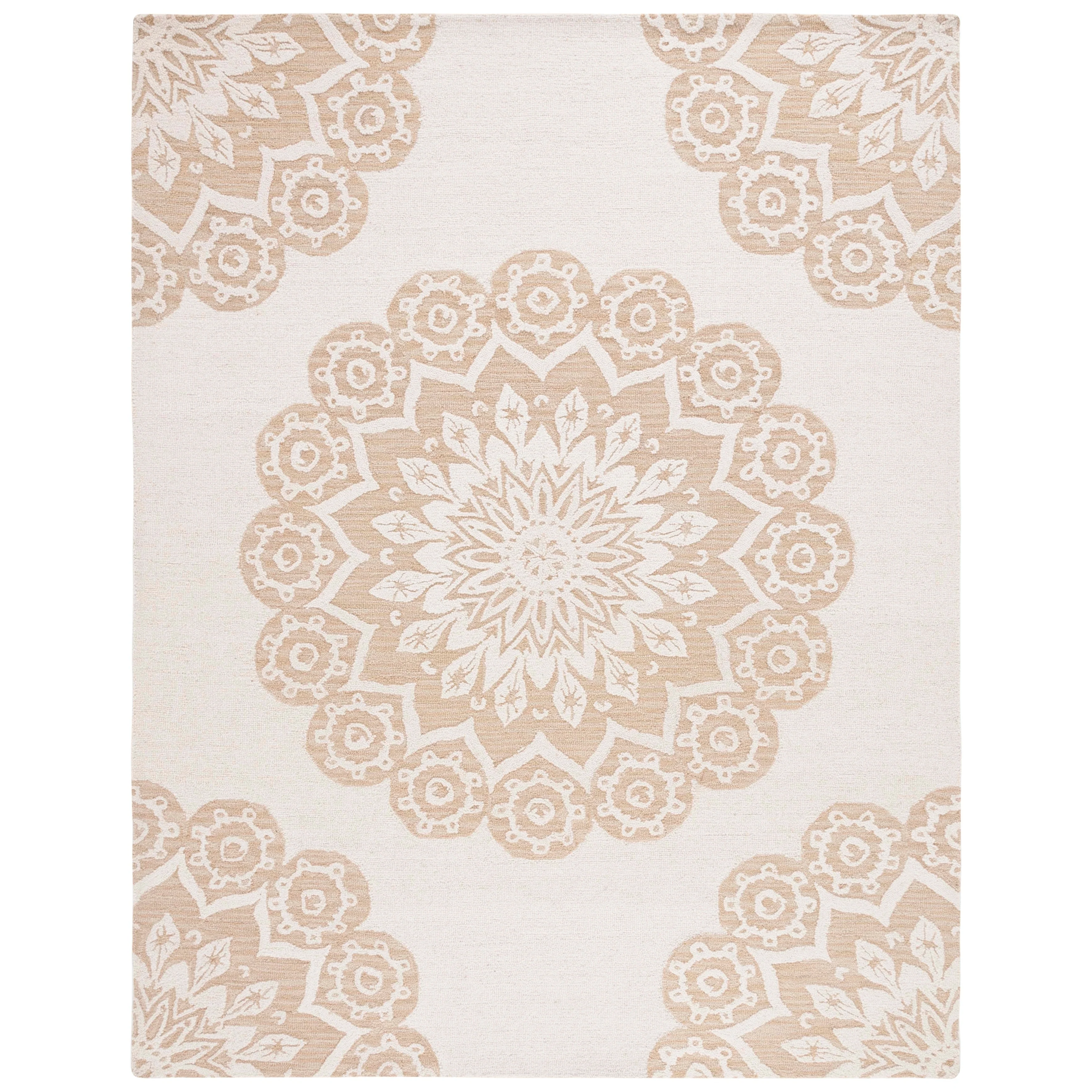 Elevate your living space with the timeless elegance of our hand-tufted Ivory/Beige area rug, crafted in the renowned textile mills of India. This exquisite 10' x 14' rug boasts a large rectangular shape that is perfect for anchoring your furniture and creating a warm, inviting atmosphere in any room.Featuring a plush 1/4" pile height, this luxurious rug is masterfully created from the finest wool, offering both comfort and durability. Its refined hand-tufted construction ensures precision and quality in every stitch, making it a true work of art for your floor.The rug displays a harmonious pattern of intricate florals and mandala-inspired motifs, with a beautiful medallion at the center acting as the focal point. This design is not only a tribute to traditional craftsmanship but also adept at complementing contemporary decor schemes.Immerse your home in the soft, neutral palette of ivory and beige, a versatile color combination that will seamlessly blend with your existing interior design. This rug is more than just a decorative piece; it's a statement of sophistication and a testament to the timeless beauty of handmade textiles.Bring a touch of elegance and comfort to your living space with our Hand Tufted Wool Ivory/Beige Large Rectangle Area Rug, a luxurious addition that epitomizes the perfect blend of traditional artisanship and modern style.