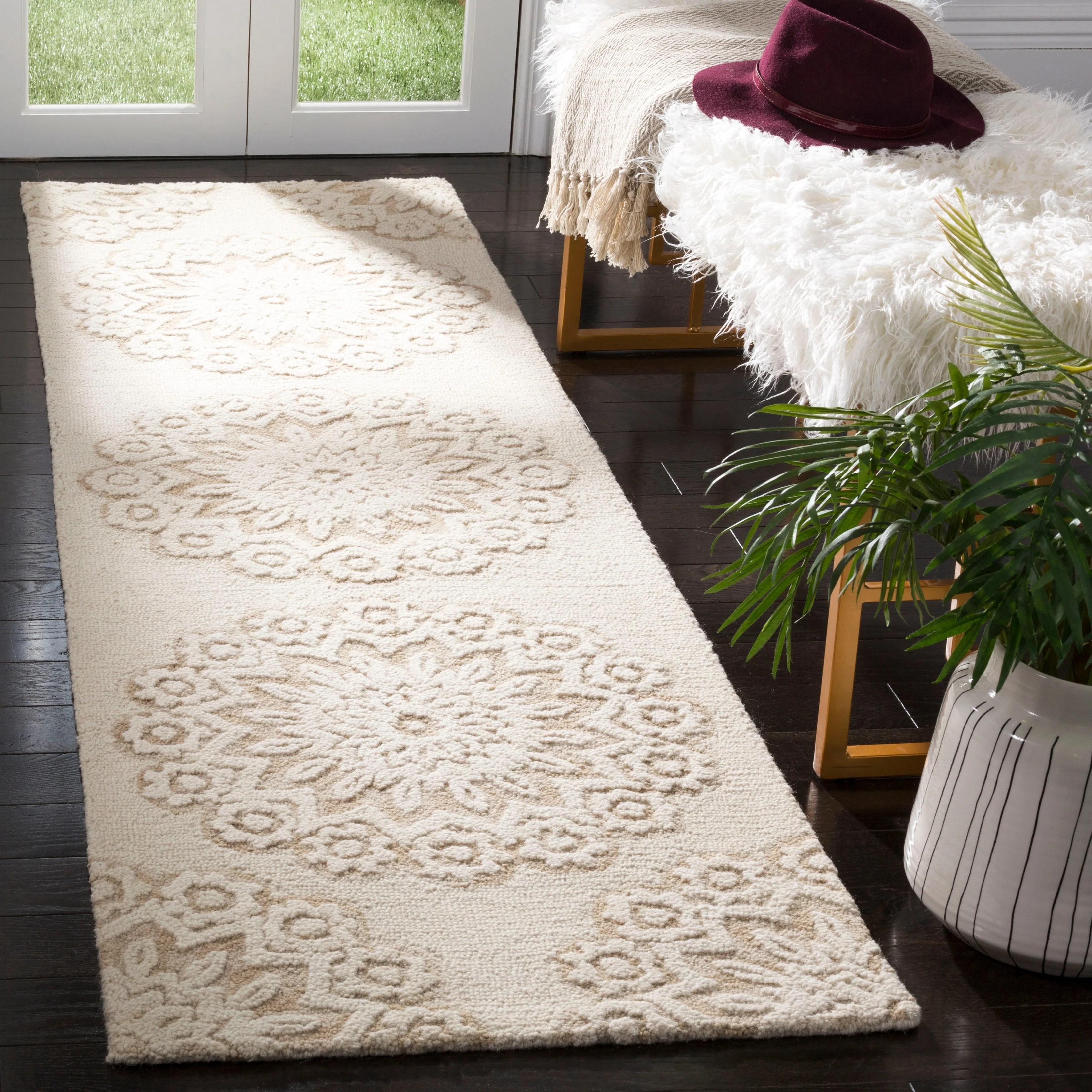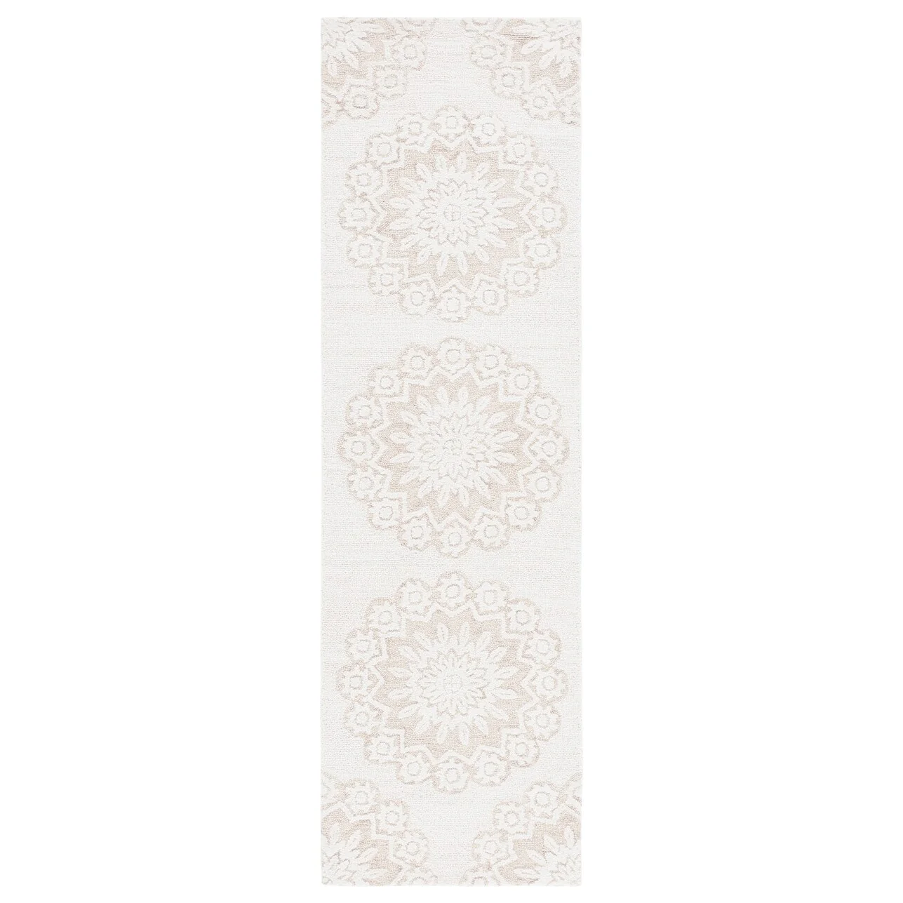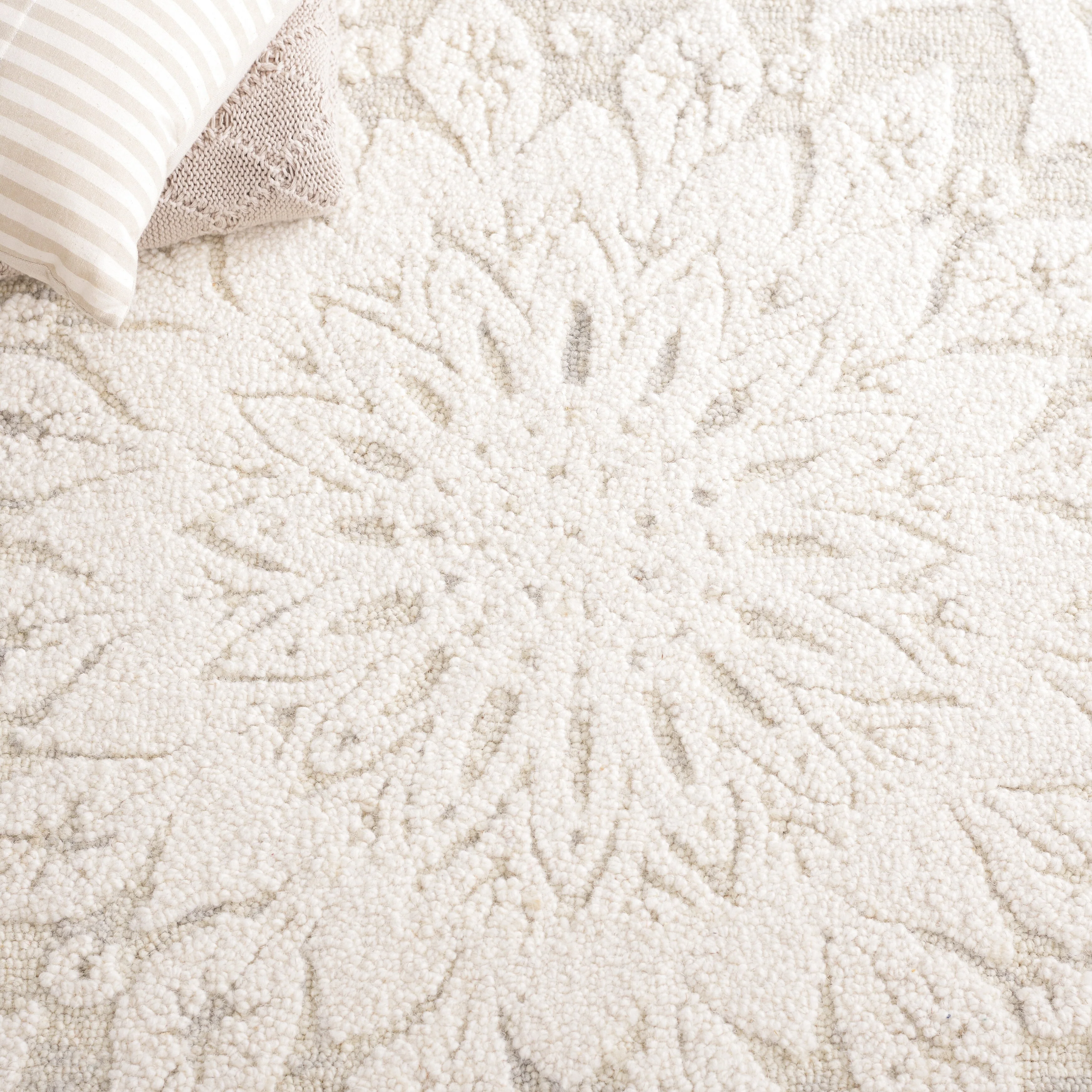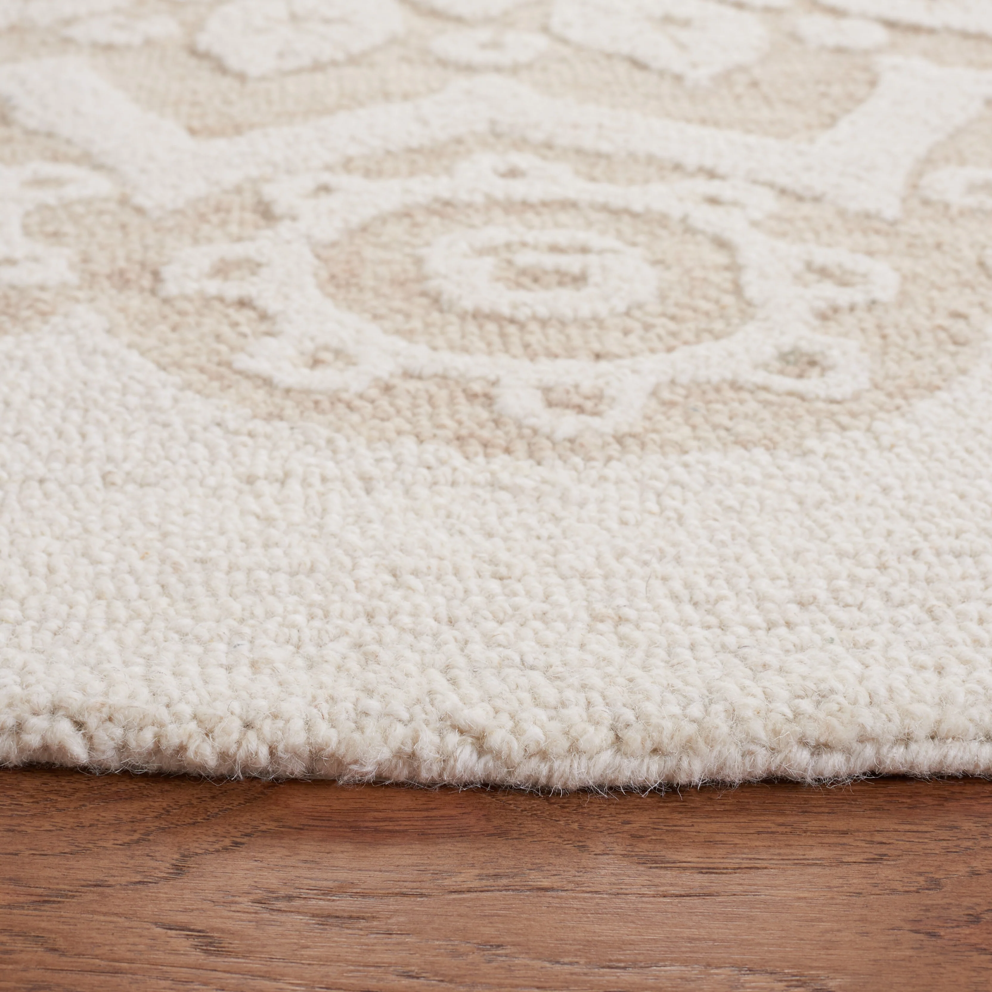 Elevate your living space with the timeless elegance of our hand-tufted Ivory/Beige area rug, crafted in the renowned textile mills of India. This exquisite 10' x 14' rug boasts a large rectangular shape that is perfect for anchoring your furniture and creating a warm, inviting atmosphere in any room.Featuring a plush 1/4" pile height, this luxurious rug is masterfully created from the finest wool, offering both comfort and durability. Its refined hand-tufted construction ensures precision and quality in every stitch, making it a true work of art for your floor.The rug displays a harmonious pattern of intricate florals and mandala-inspired motifs, with a beautiful medallion at the center acting as the focal point. This design is not only a tribute to traditional craftsmanship but also adept at complementing contemporary decor schemes.Immerse your home in the soft, neutral palette of ivory and beige, a versatile color combination that will seamlessly blend with your existing interior design. This rug is more than just a decorative piece; it's a statement of sophistication and a testament to the timeless beauty of handmade textiles.Bring a touch of elegance and comfort to your living space with our Hand Tufted Wool Ivory/Beige Large Rectangle Area Rug, a luxurious addition that epitomizes the perfect blend of traditional artisanship and modern style.