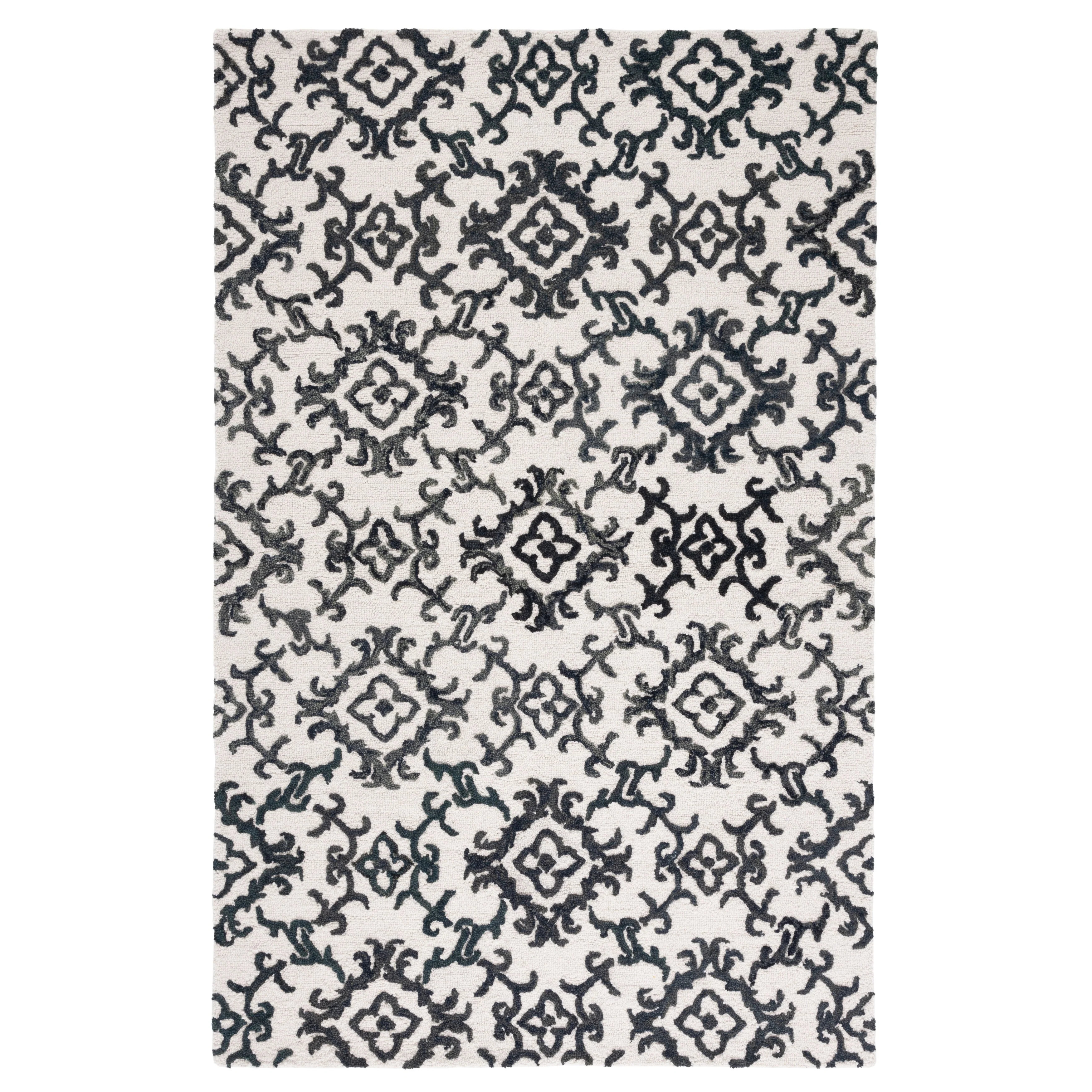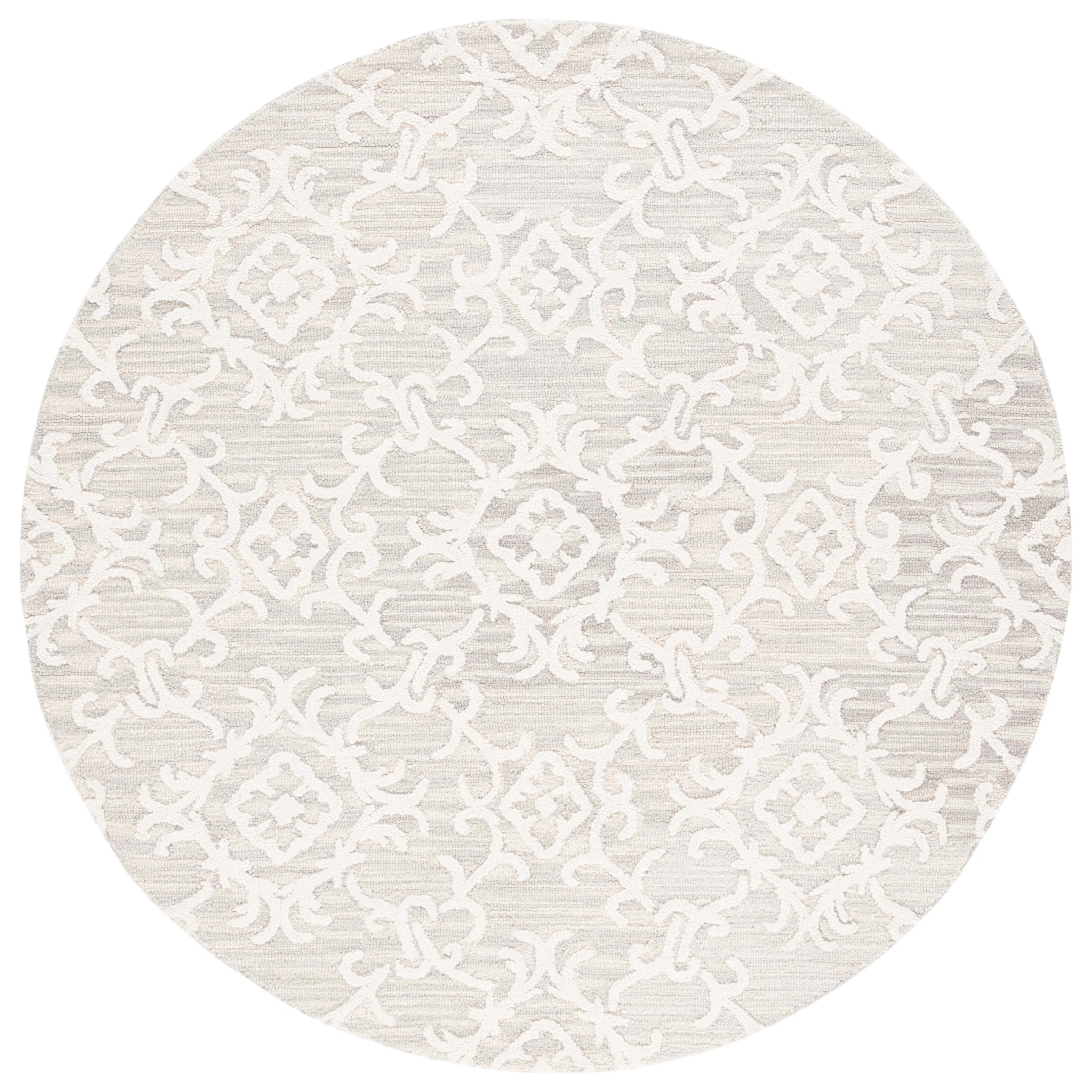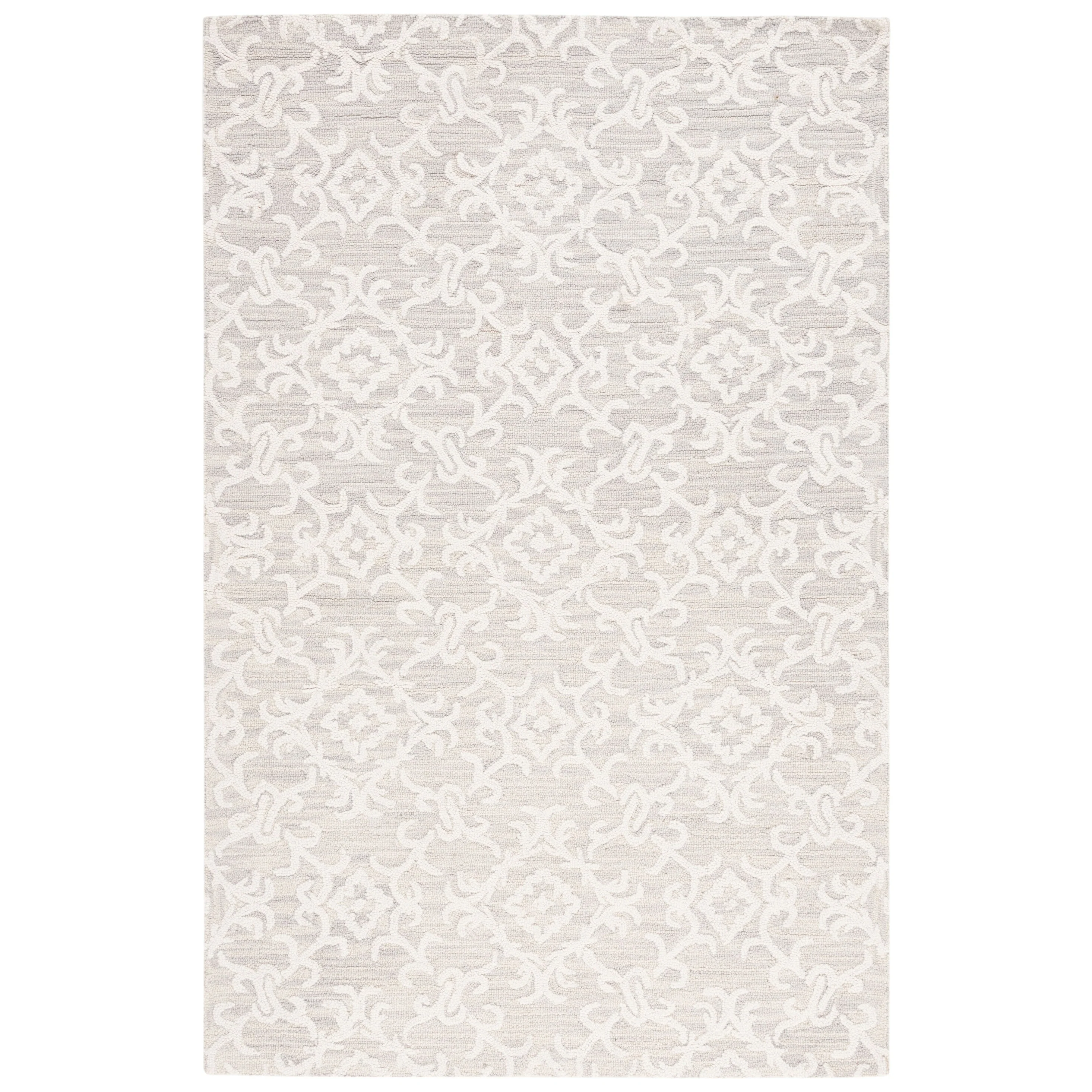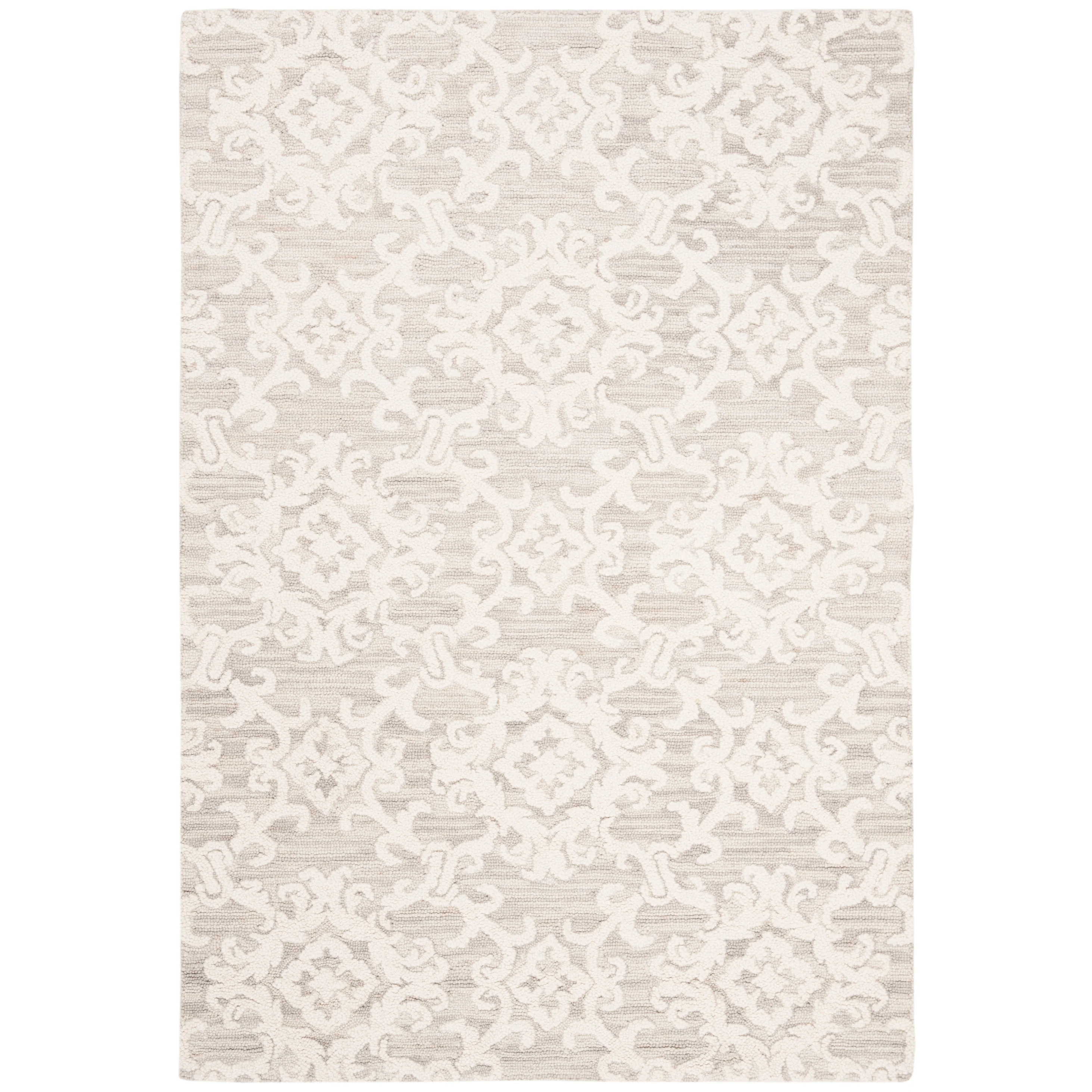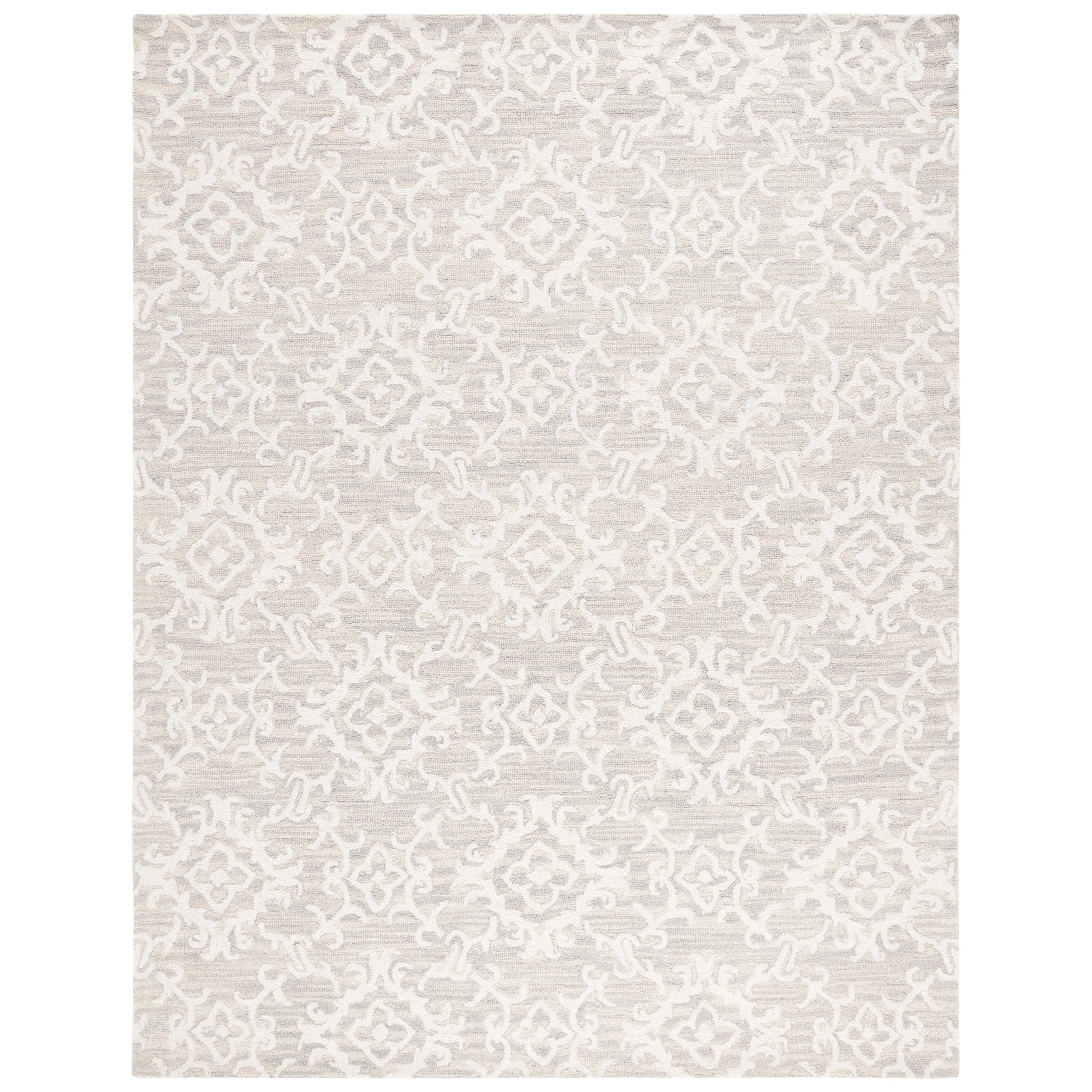 Elevate your living space with the exquisite charm of our Hand Tufted Wool Area Rug, now available in a grand 10' x 14' size, perfect for accentuating your large living areas, dining rooms, or master suites. Crafted with care in India, this rug boasts a luxurious height of 1/4", ideal for creating an inviting yet stylish atmosphere.Impeccably designed with a refined grey and ivory color palette, this large rectangle-shaped area rug showcases a sophisticated interplay of traditional patterns. Its elegant damask-like motifs, defined by delicate swirls and floral elements, create a serene and timeless ambience that effortlessly complements a variety of decor styles.The hand-tufted construction ensures each piece is unique, demonstrating the artisan's touch with every fiber. The rug's 100% wool composition not only gives it an unmatched softness underfoot but also contributes to its durability, making it a trusted addition to your home for years to come.Let your floor make a statement of luxury and grace with this magnificent area rug; a testament to classic beauty and artisanal craftsmanship.