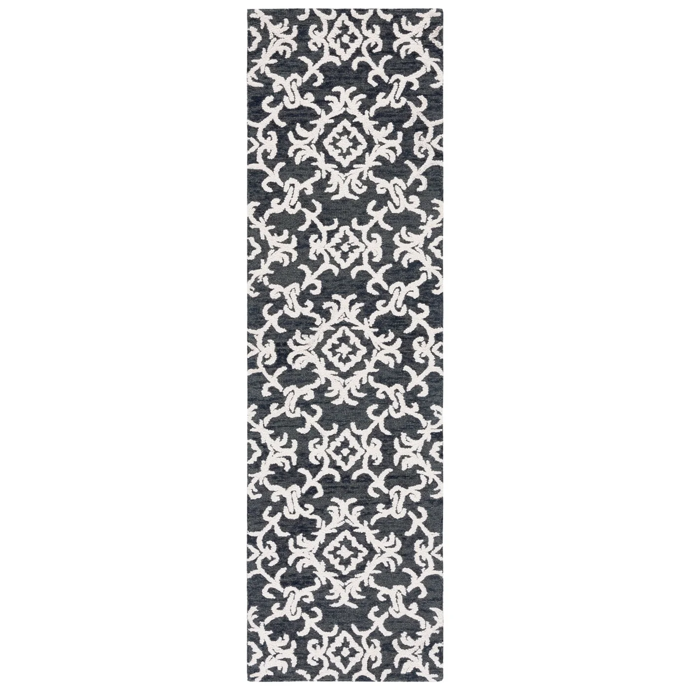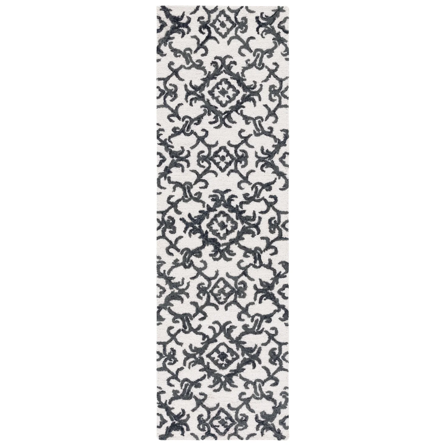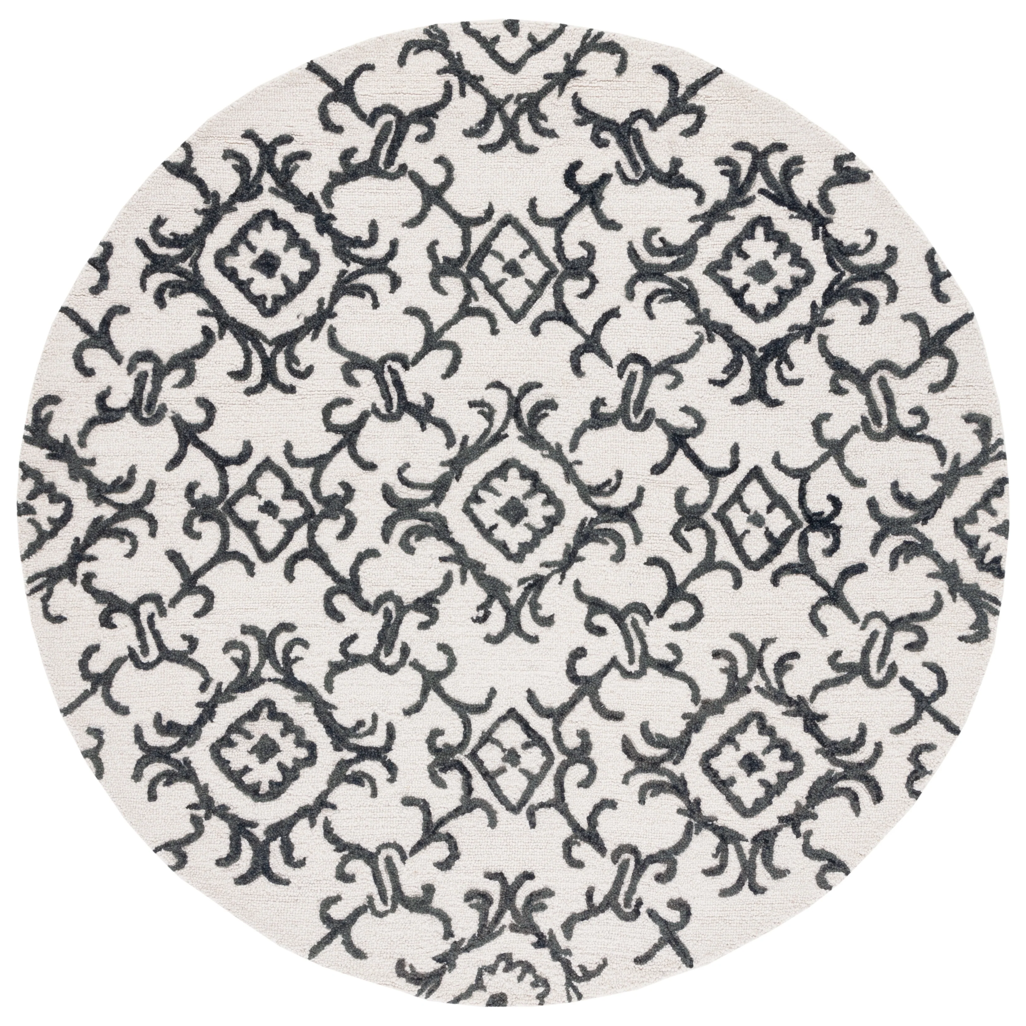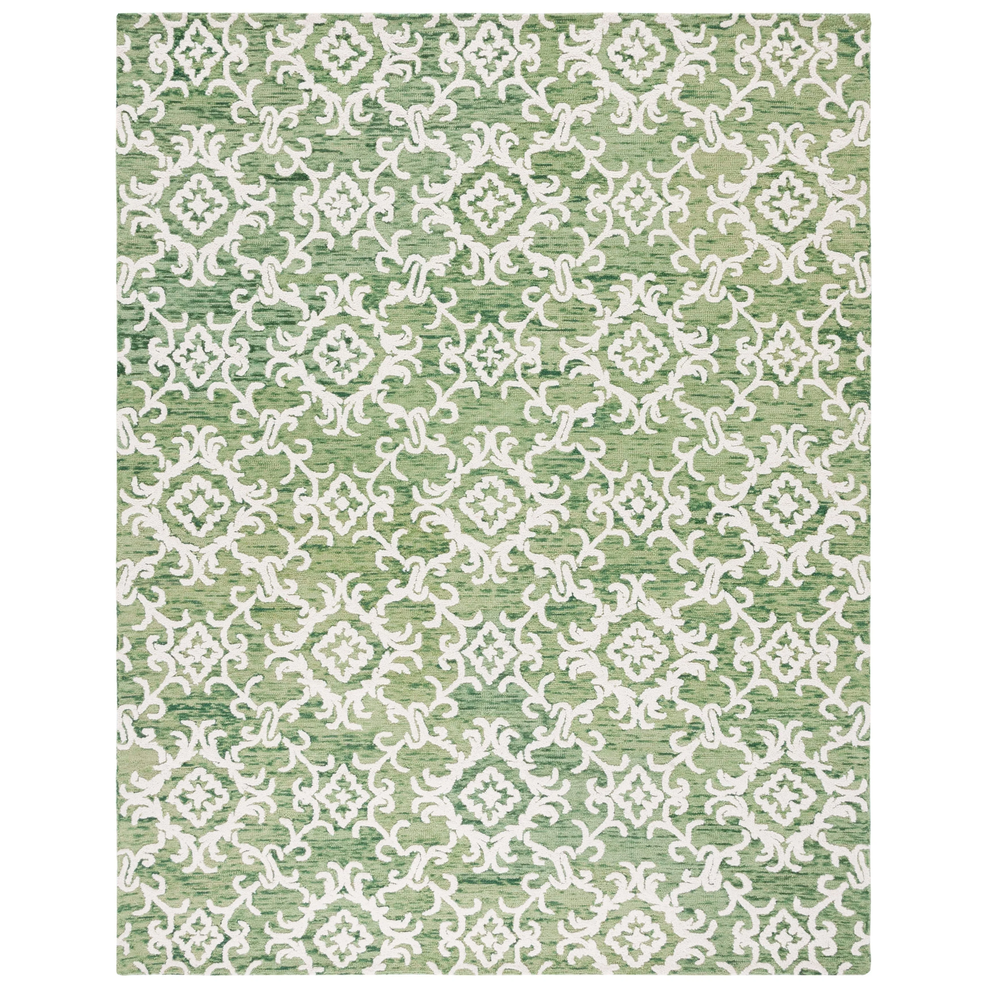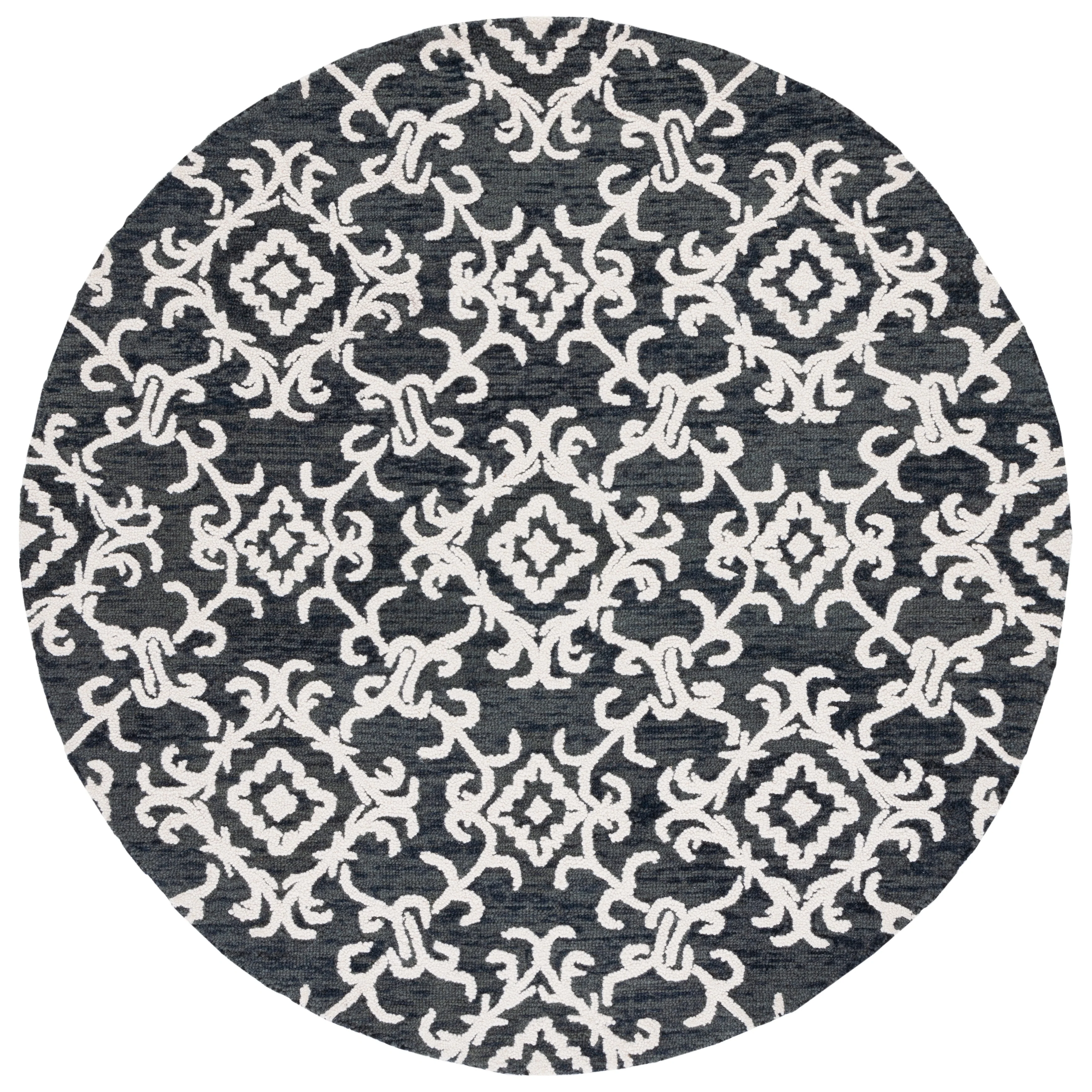 Elevate your living space with the exquisite charm of our Hand Tufted Wool Area Rug, now available in a grand 10' x 14' size, perfect for accentuating your large living areas, dining rooms, or master suites. Crafted with care in India, this rug boasts a luxurious height of 1/4", ideal for creating an inviting yet stylish atmosphere.Impeccably designed with a refined grey and ivory color palette, this large rectangle-shaped area rug showcases a sophisticated interplay of traditional patterns. Its elegant damask-like motifs, defined by delicate swirls and floral elements, create a serene and timeless ambience that effortlessly complements a variety of decor styles.The hand-tufted construction ensures each piece is unique, demonstrating the artisan's touch with every fiber. The rug's 100% wool composition not only gives it an unmatched softness underfoot but also contributes to its durability, making it a trusted addition to your home for years to come.Let your floor make a statement of luxury and grace with this magnificent area rug; a testament to classic beauty and artisanal craftsmanship.