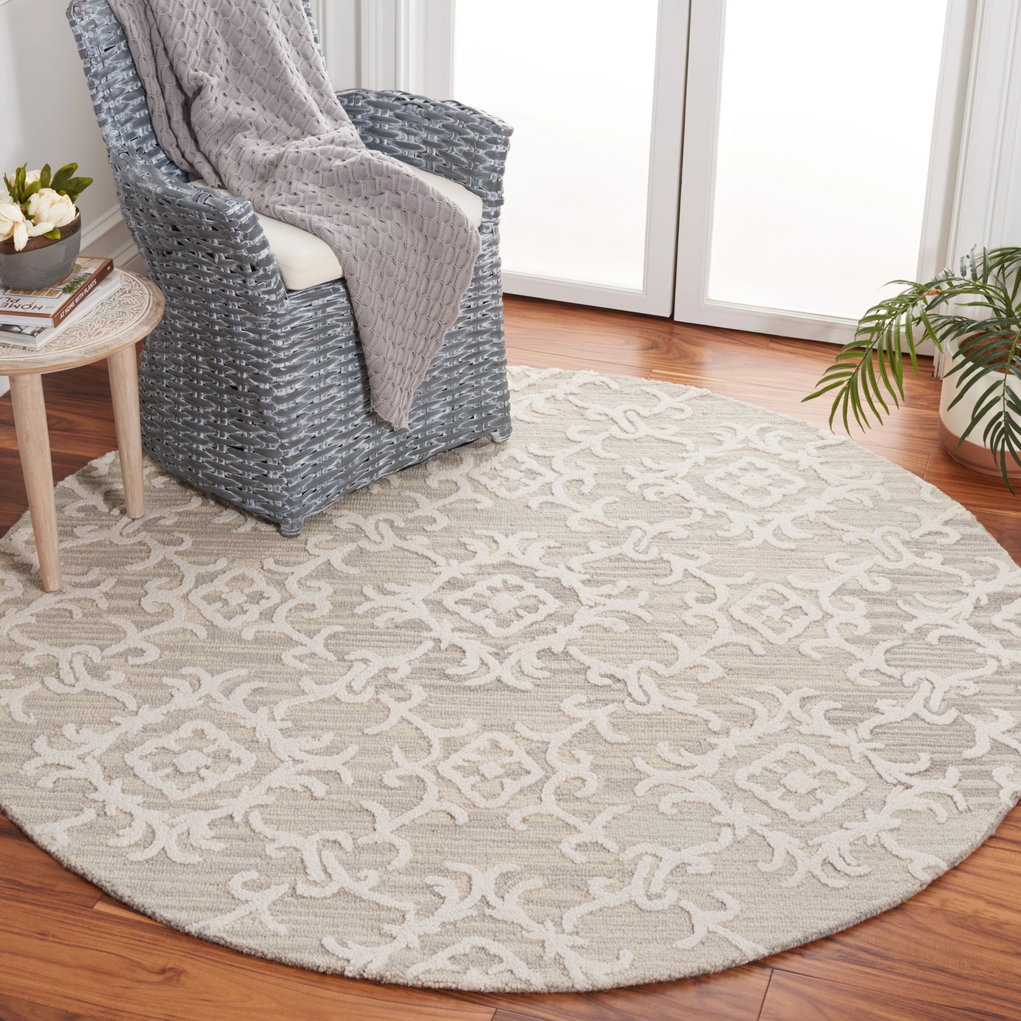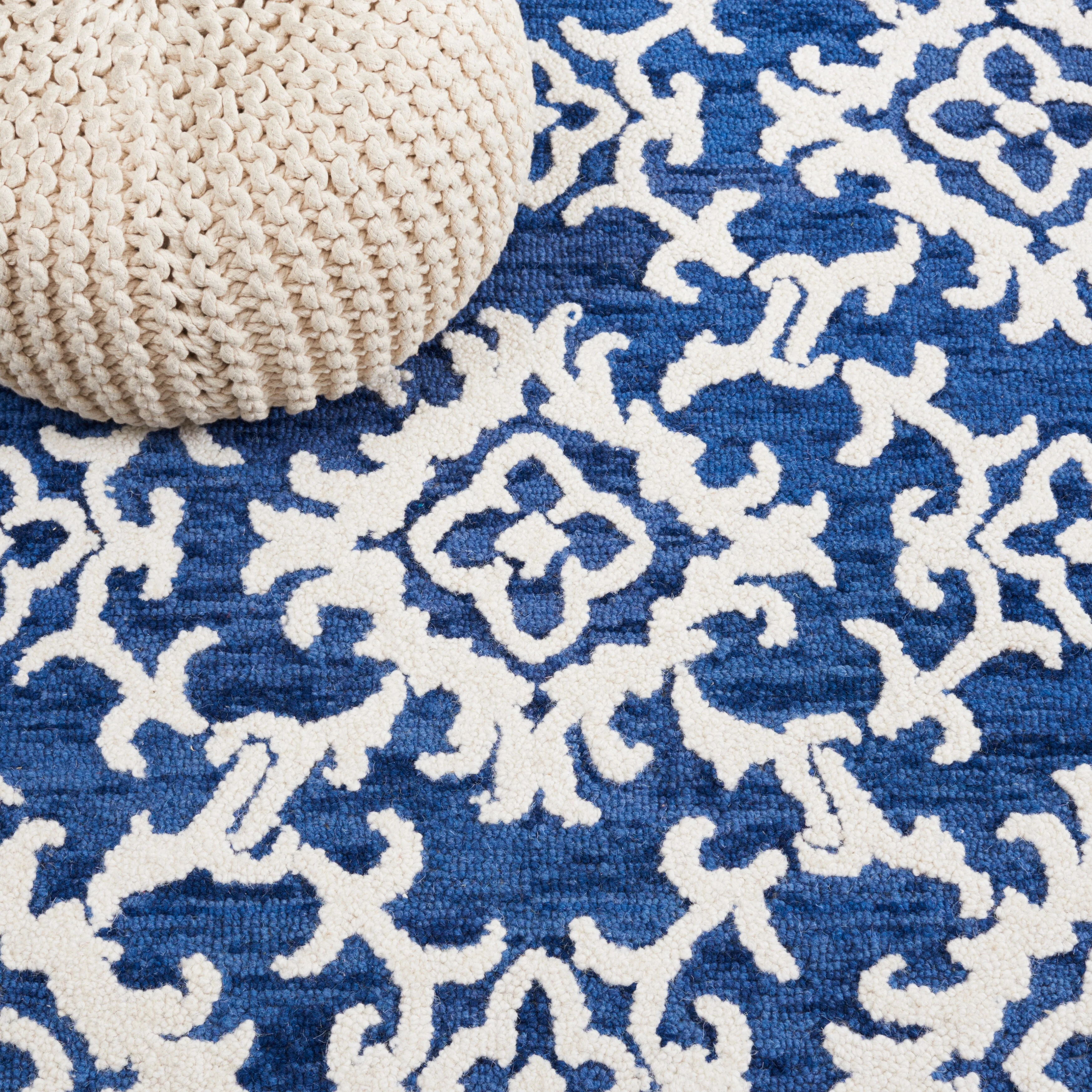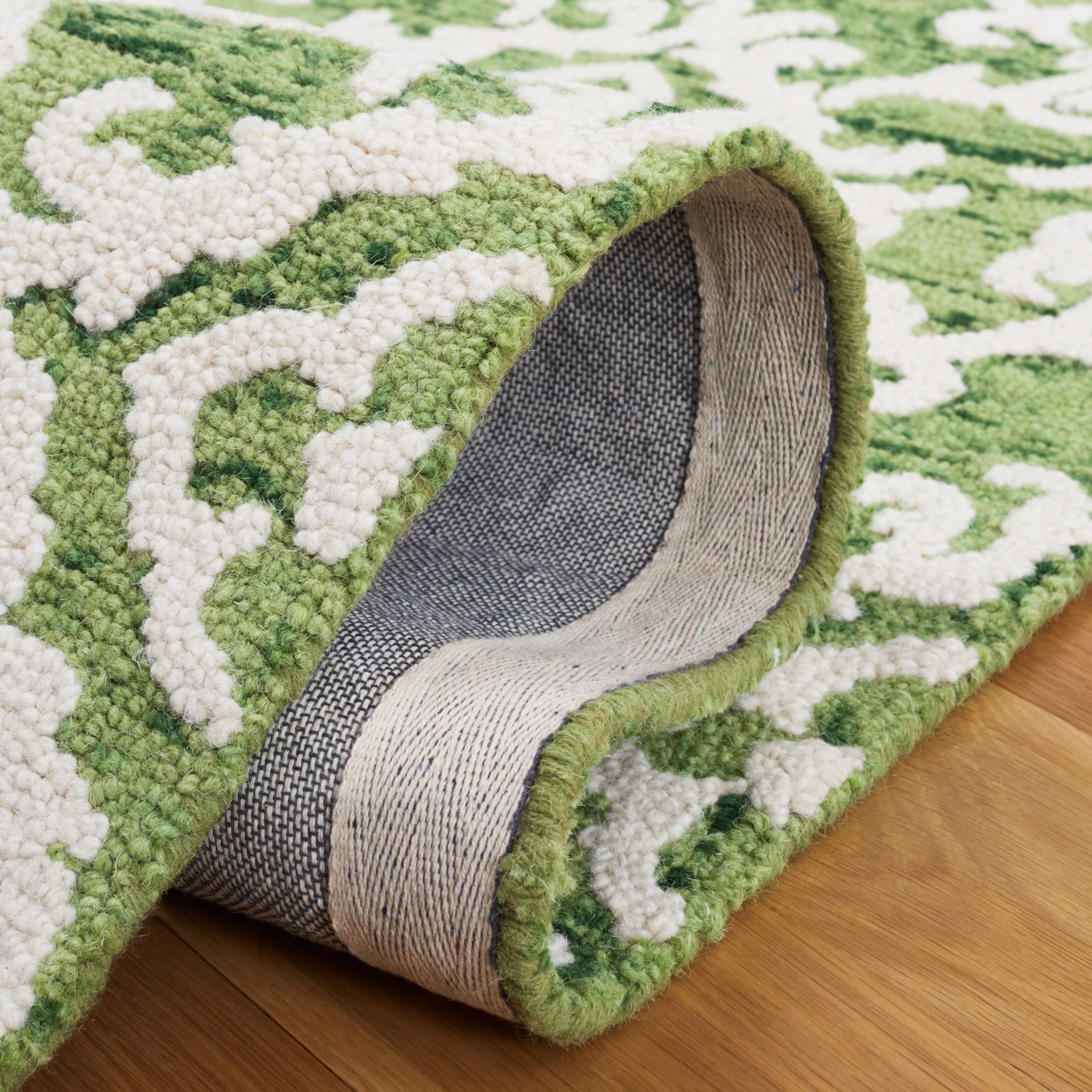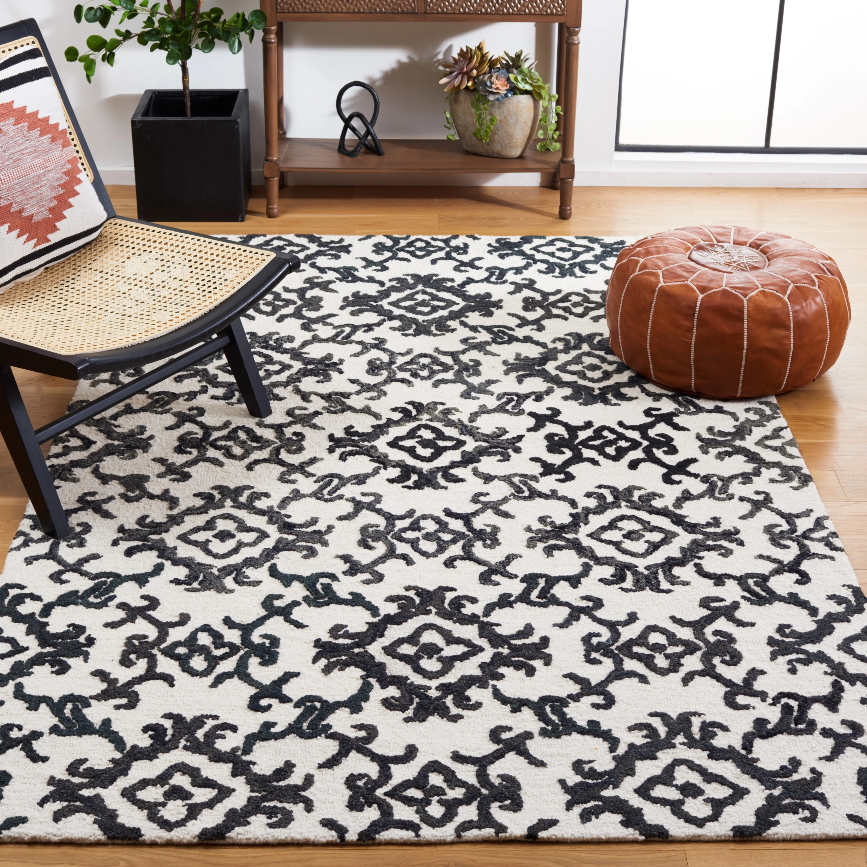 Elevate your living space with the exquisite charm of our Hand Tufted Wool Area Rug, now available in a grand 10' x 14' size, perfect for accentuating your large living areas, dining rooms, or master suites. Crafted with care in India, this rug boasts a luxurious height of 1/4", ideal for creating an inviting yet stylish atmosphere.Impeccably designed with a refined grey and ivory color palette, this large rectangle-shaped area rug showcases a sophisticated interplay of traditional patterns. Its elegant damask-like motifs, defined by delicate swirls and floral elements, create a serene and timeless ambience that effortlessly complements a variety of decor styles.The hand-tufted construction ensures each piece is unique, demonstrating the artisan's touch with every fiber. The rug's 100% wool composition not only gives it an unmatched softness underfoot but also contributes to its durability, making it a trusted addition to your home for years to come.Let your floor make a statement of luxury and grace with this magnificent area rug; a testament to classic beauty and artisanal craftsmanship.