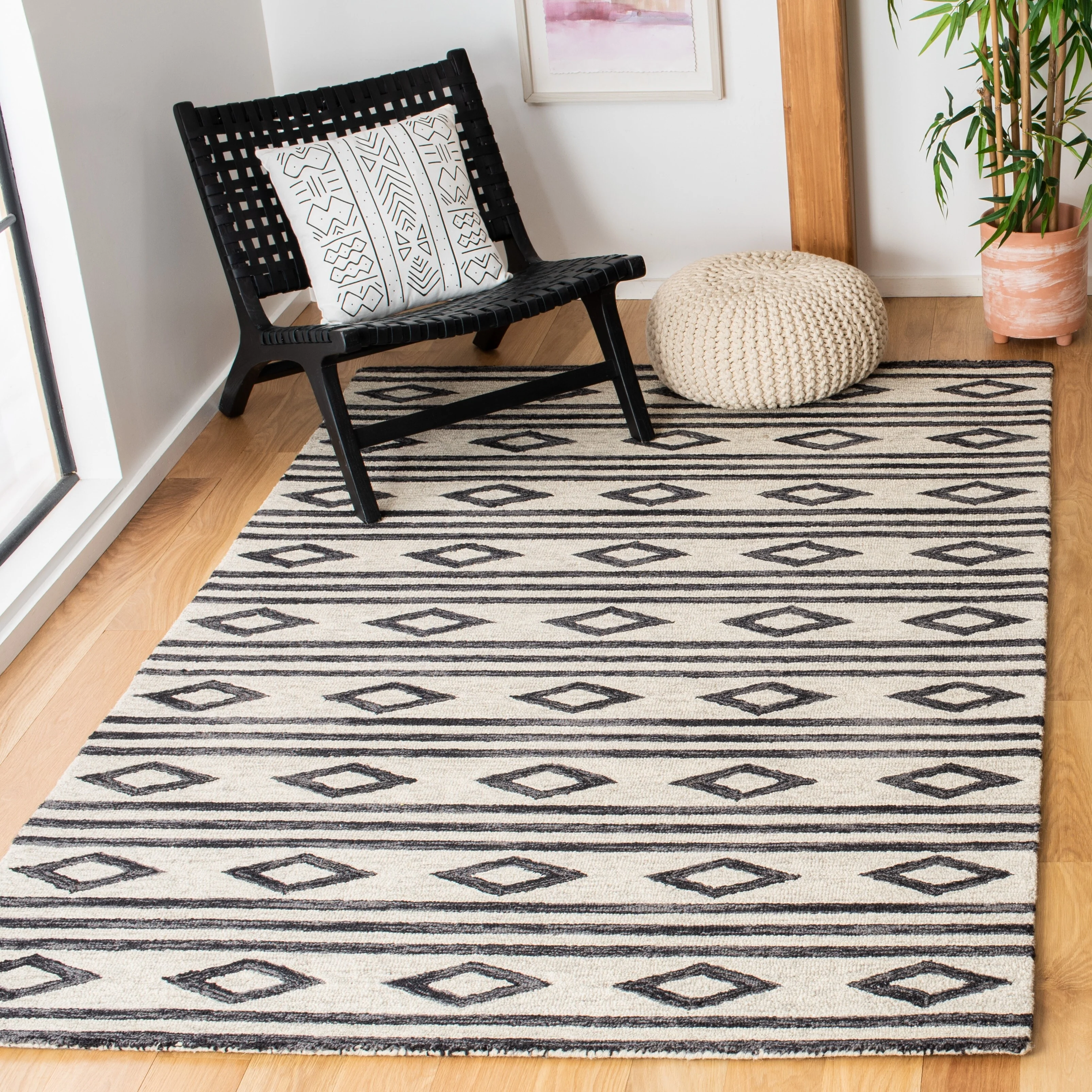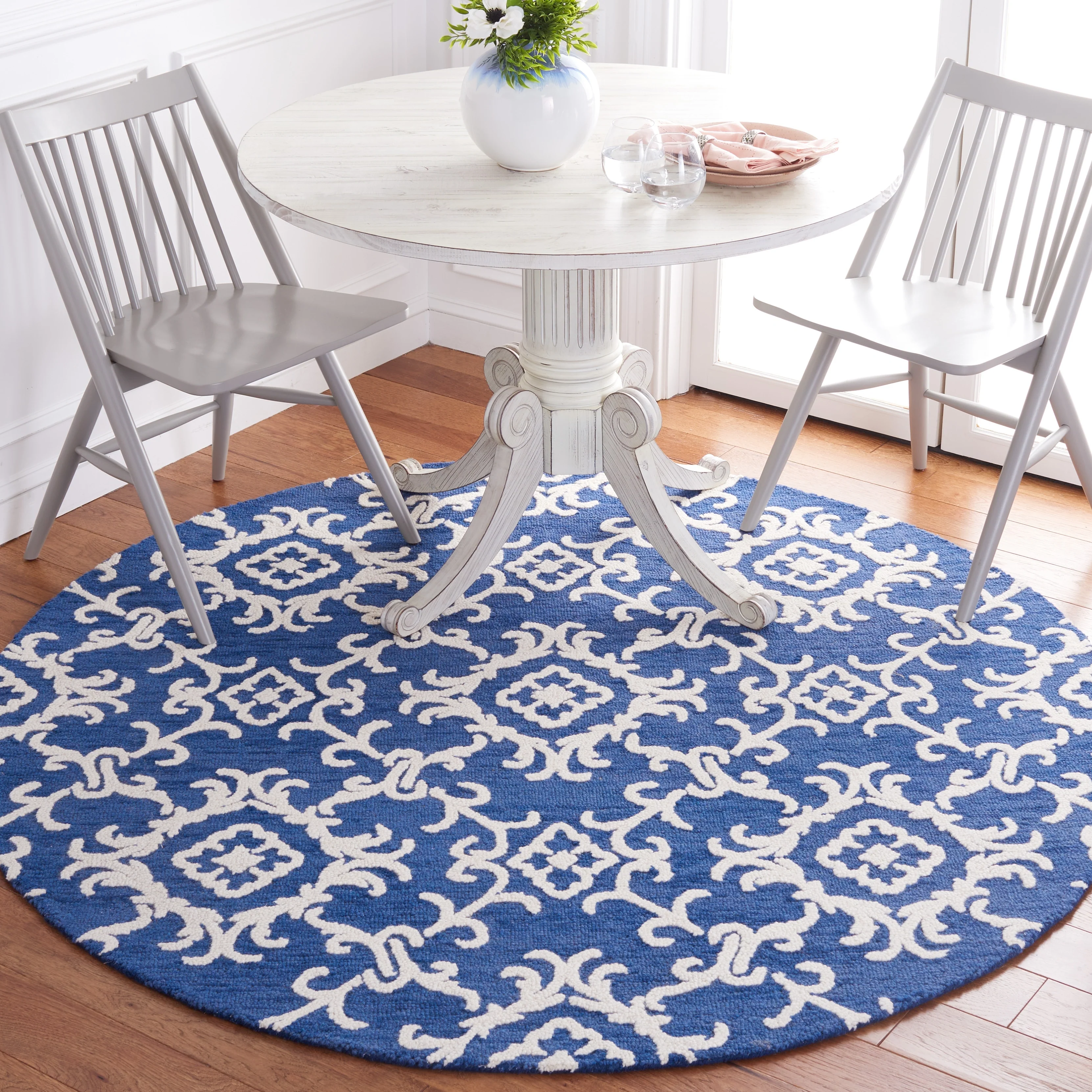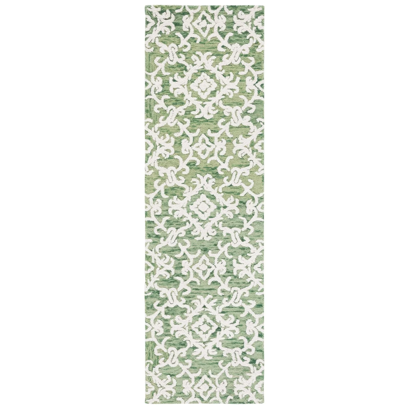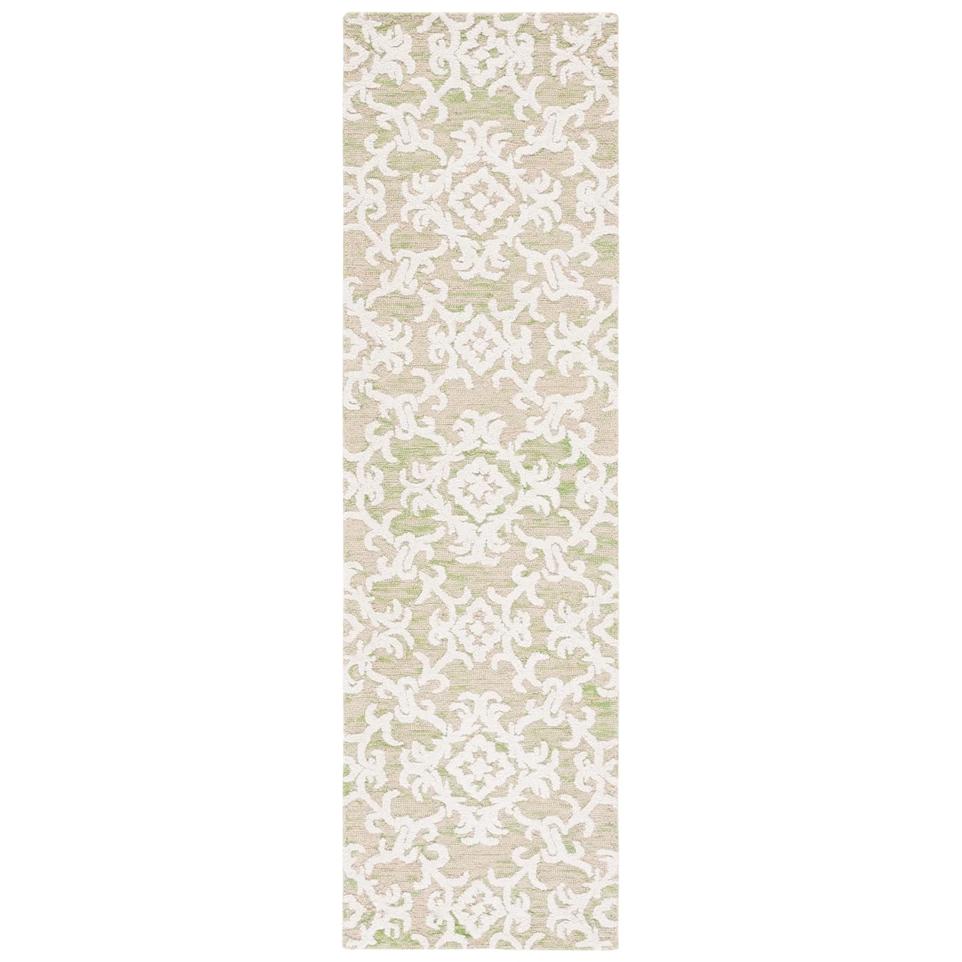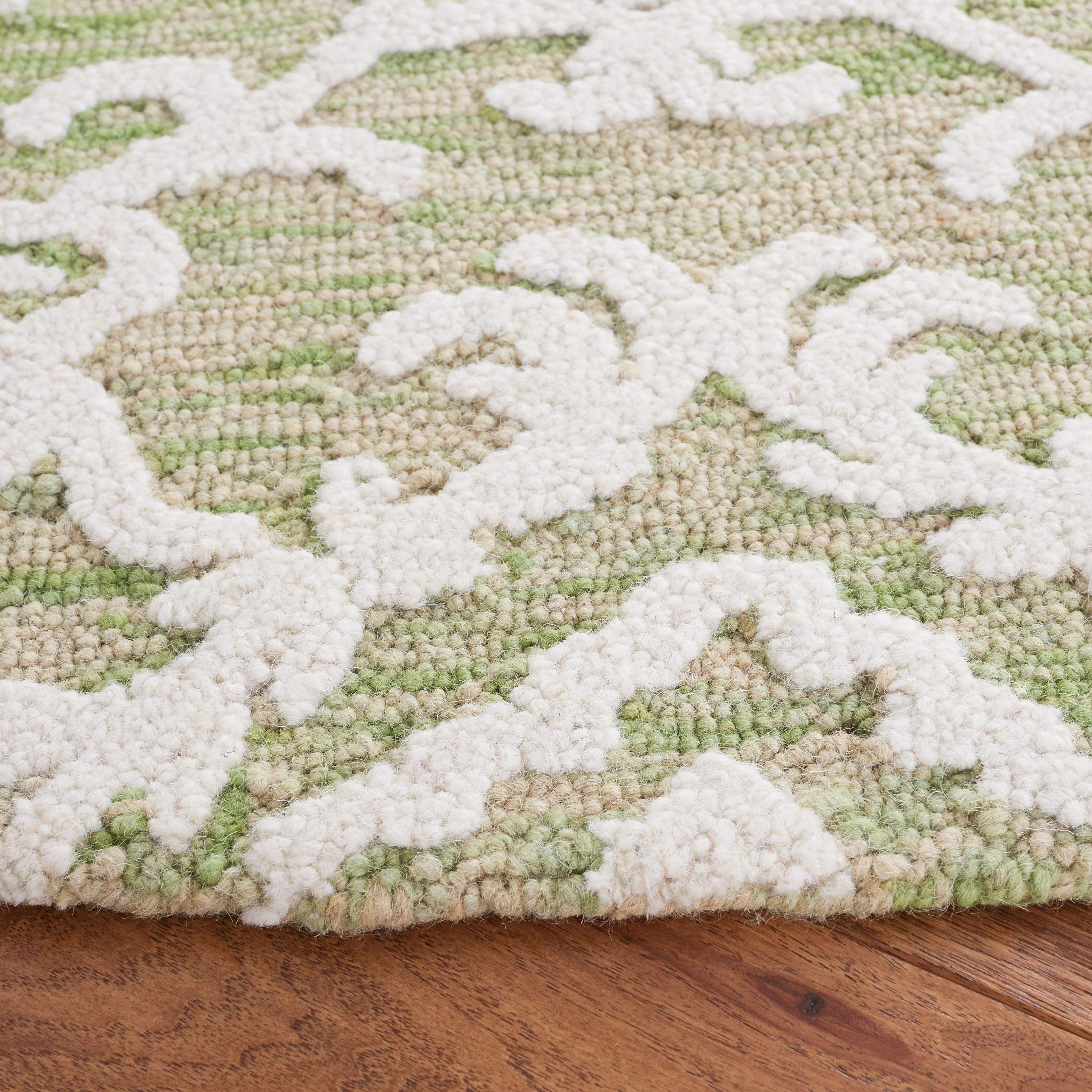Elevate your living space with the exquisite charm of our Hand Tufted Wool Area Rug, now available in a grand 10' x 14' size, perfect for accentuating your large living areas, dining rooms, or master suites. Crafted with care in India, this rug boasts a luxurious height of 1/4", ideal for creating an inviting yet stylish atmosphere.Impeccably designed with a refined grey and ivory color palette, this large rectangle-shaped area rug showcases a sophisticated interplay of traditional patterns. Its elegant damask-like motifs, defined by delicate swirls and floral elements, create a serene and timeless ambience that effortlessly complements a variety of decor styles.The hand-tufted construction ensures each piece is unique, demonstrating the artisan's touch with every fiber. The rug's 100% wool composition not only gives it an unmatched softness underfoot but also contributes to its durability, making it a trusted addition to your home for years to come.Let your floor make a statement of luxury and grace with this magnificent area rug; a testament to classic beauty and artisanal craftsmanship.