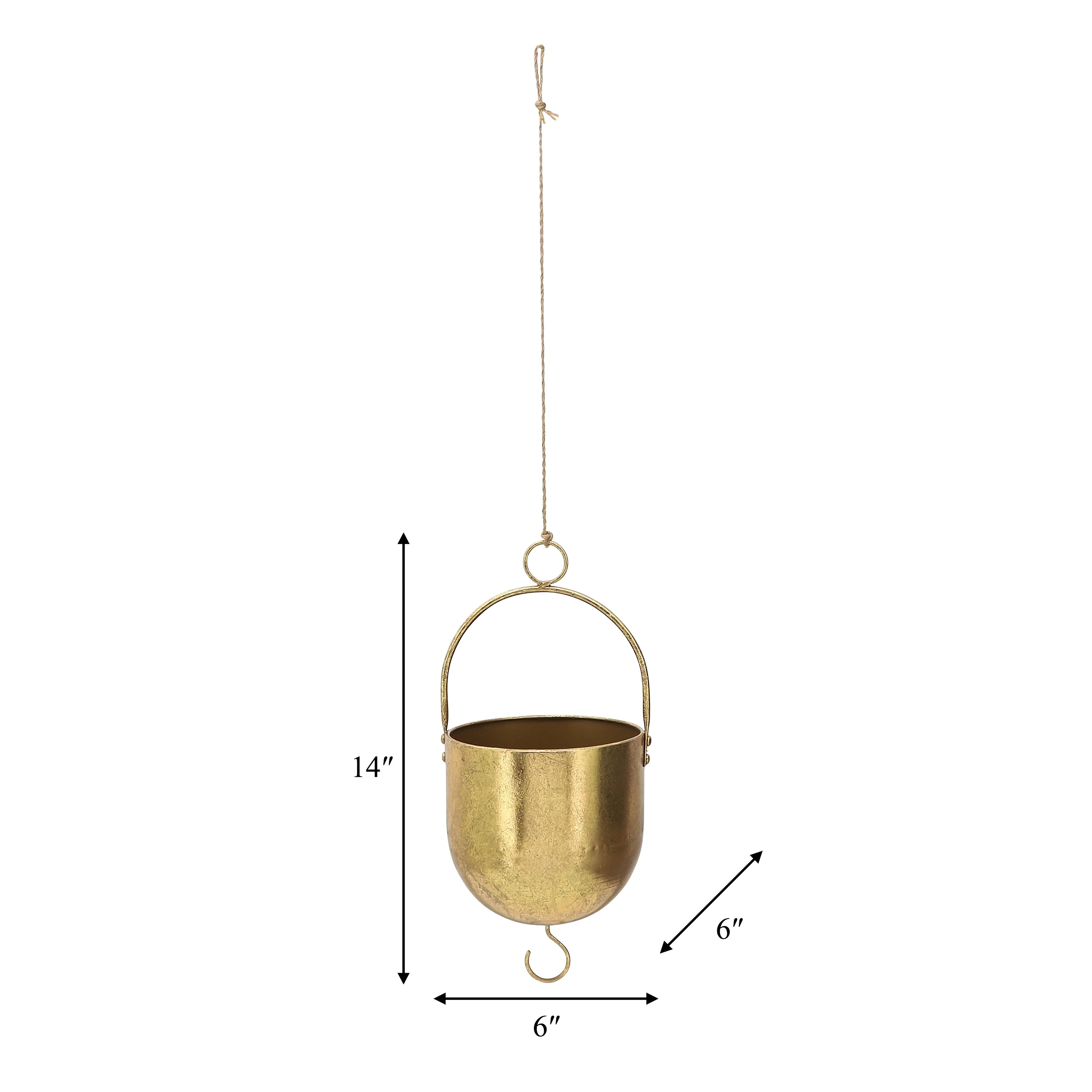 Go for the gold! Add a fun and creative hanging planter to the mix to plant your favorite succulents, cacti and other small plants. Hang in your kitchen window, on your patio or porch, or anywhere you'd like to see more plant life thrive. Made out of iron, it's not only an attractive addition to your home, it's high quality and durable! Consider giving as a gift to your plant-loving pals!