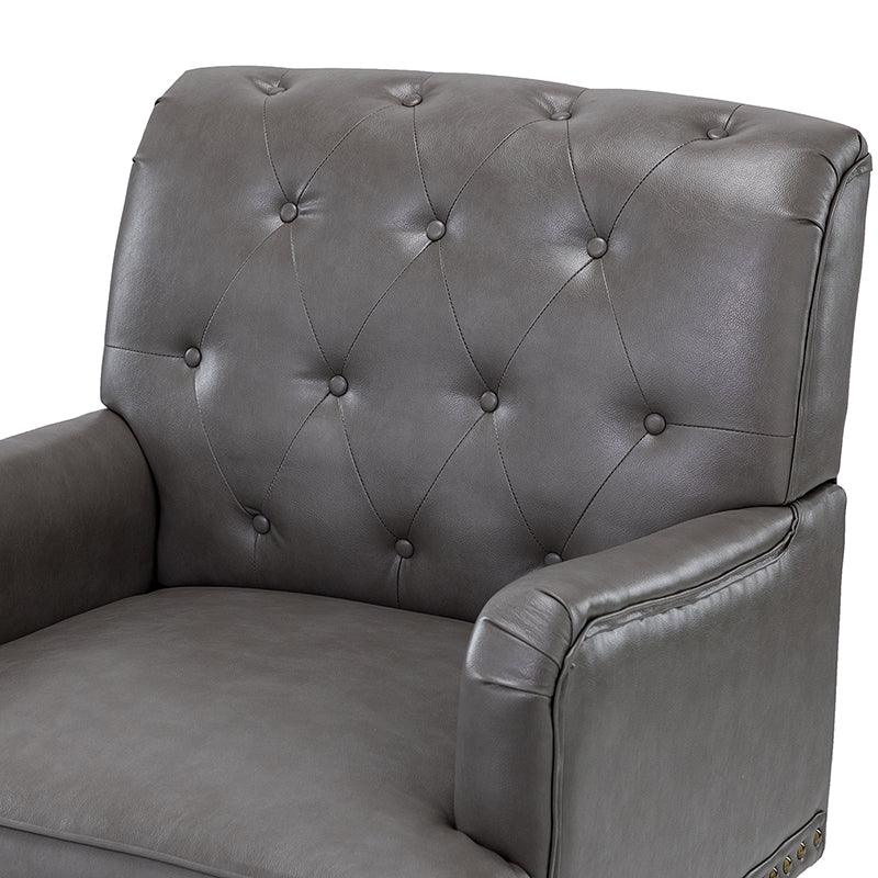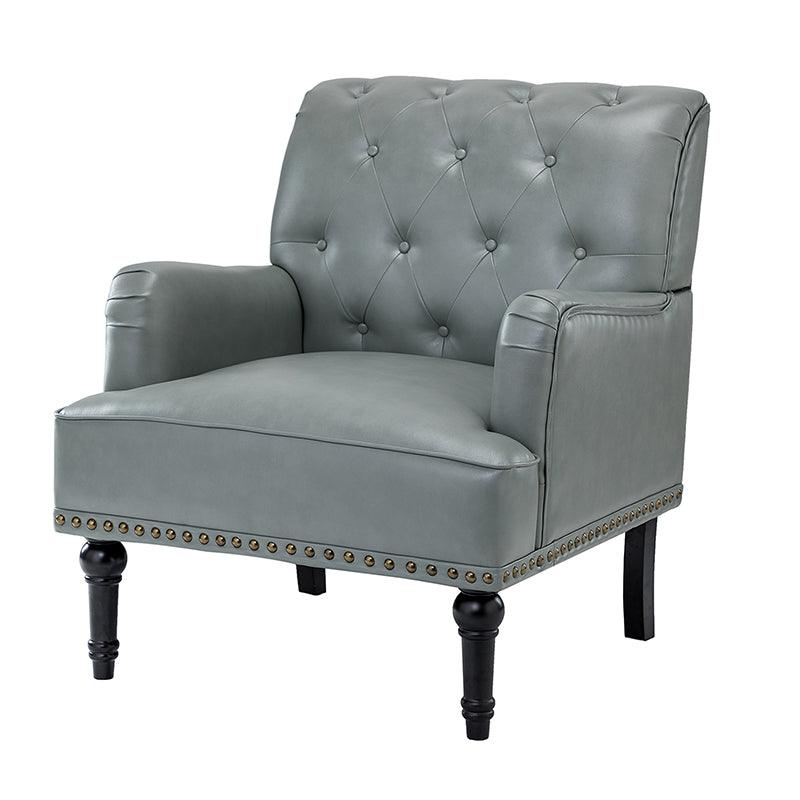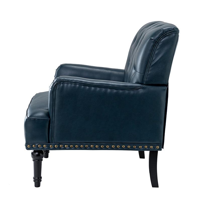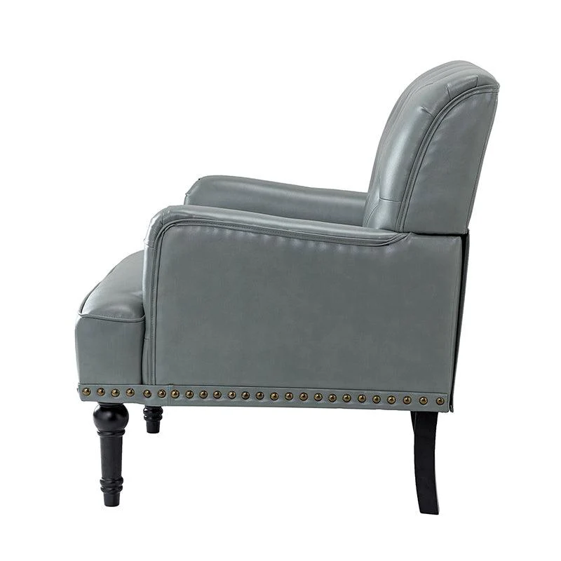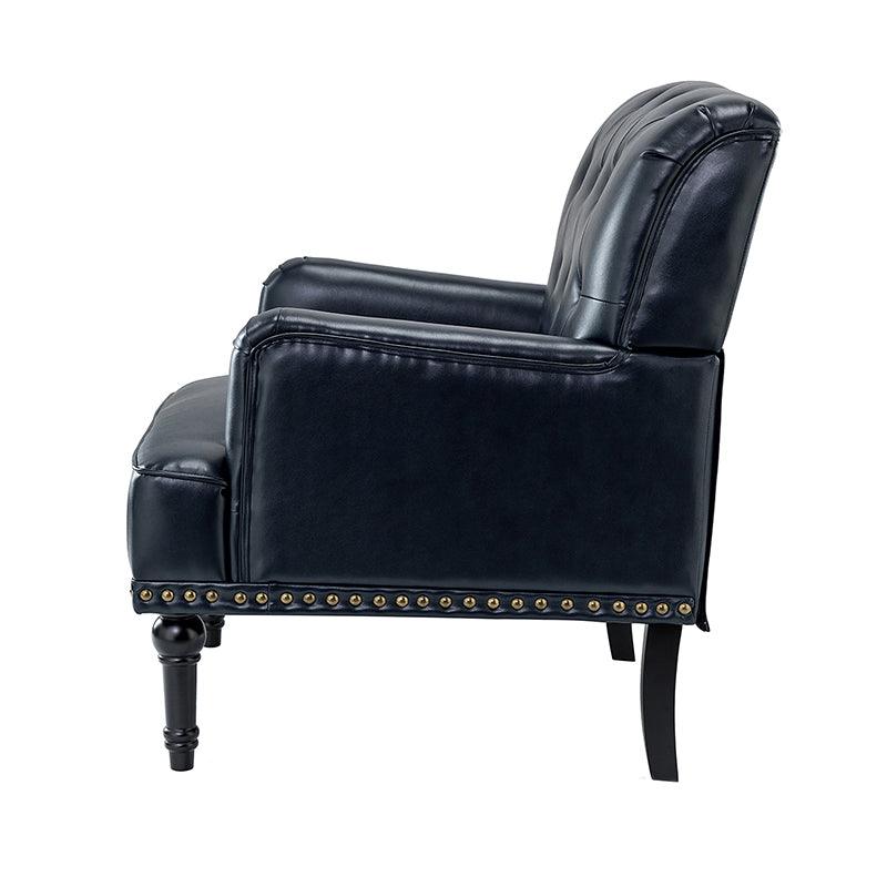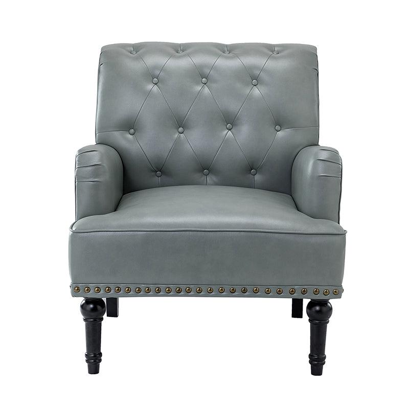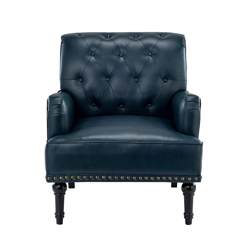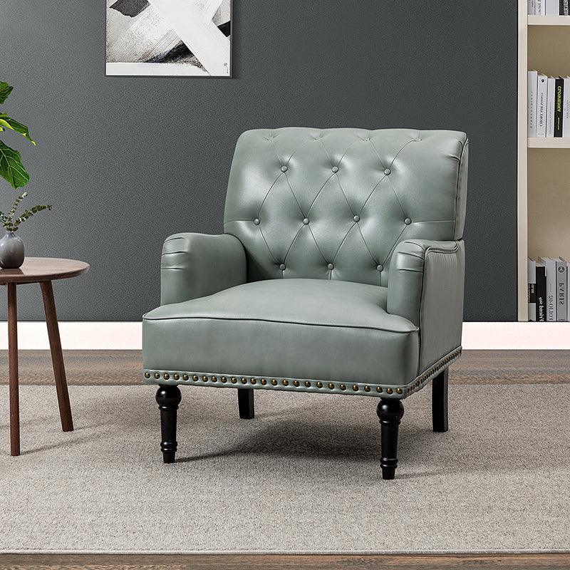 Unique style and classic design combine in this inviting armchair. It features a sturdy wood frame, wrapped in PU upholstery with a button-tufted design, elegantly carved front legs, and simple back legs that offer a visual variation. The foam-filled back provides extra support, while the nailhead trim adds a dose of vintage design to it. It is suitable for most of your daily scenarios such as study room, bedroom, and living room. Whether you are enjoying quality family time or entertaining guests, this armchair will extend an open invitation for everyone to relax.