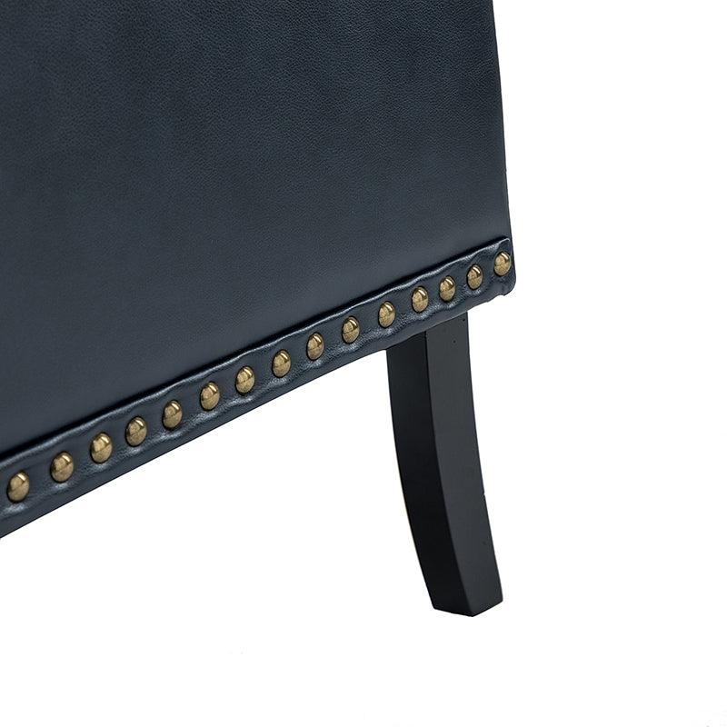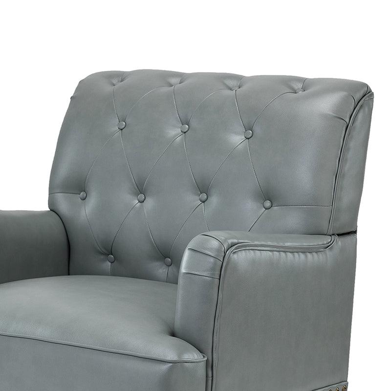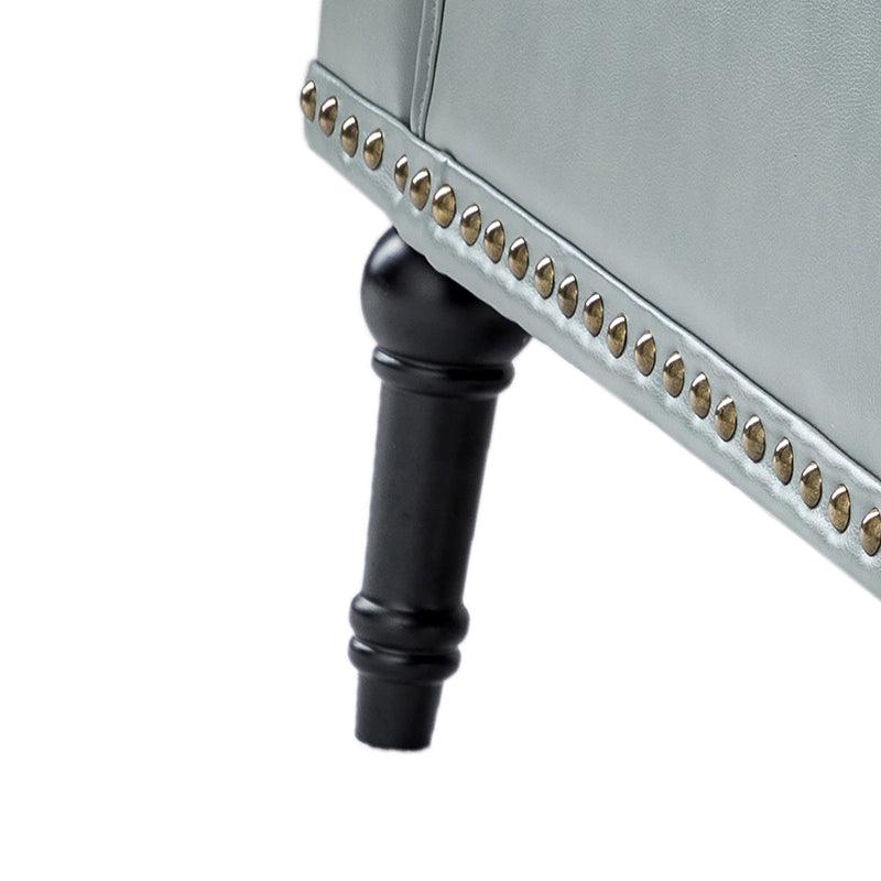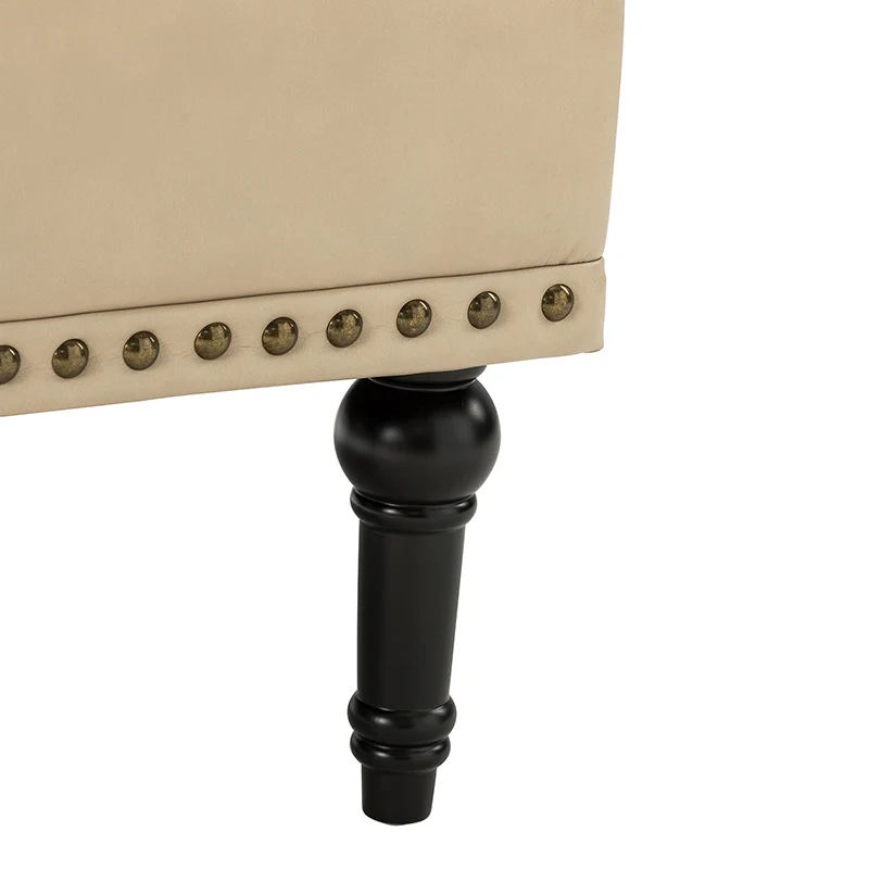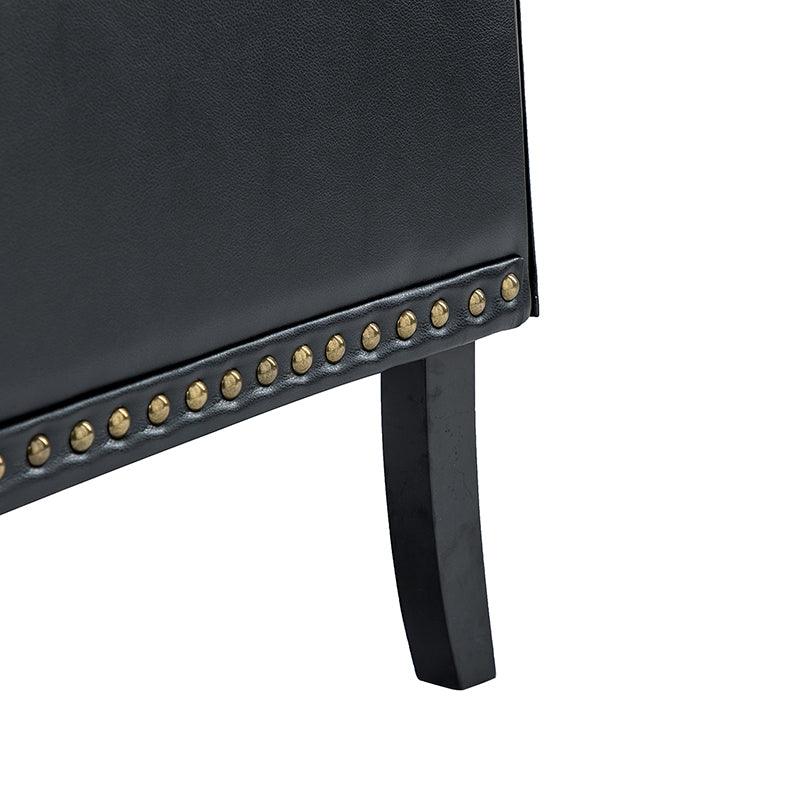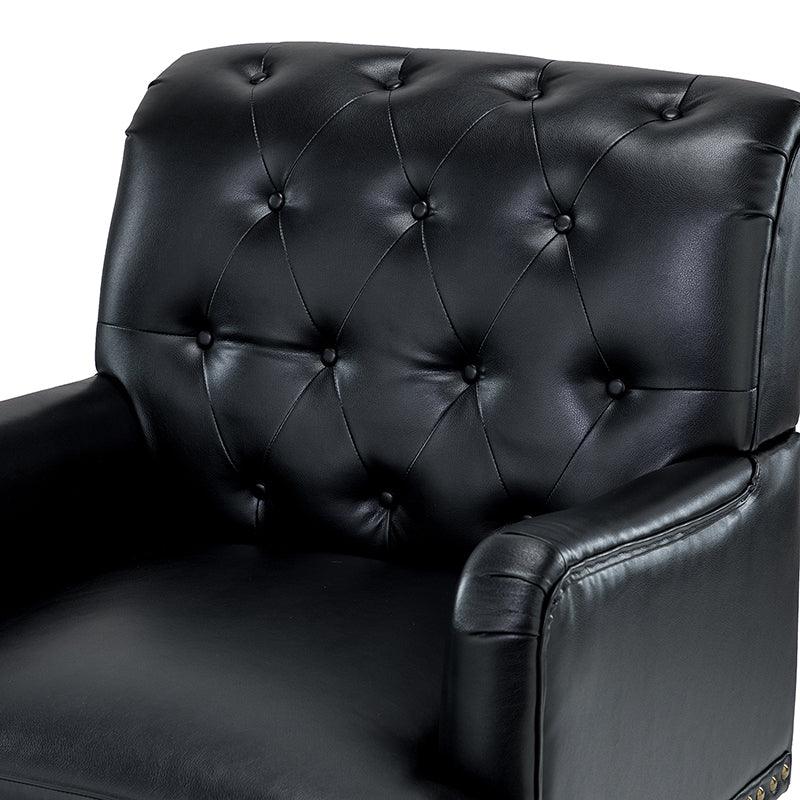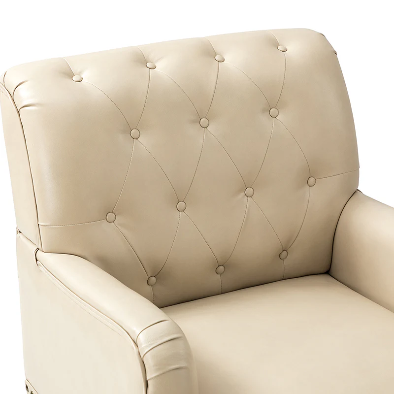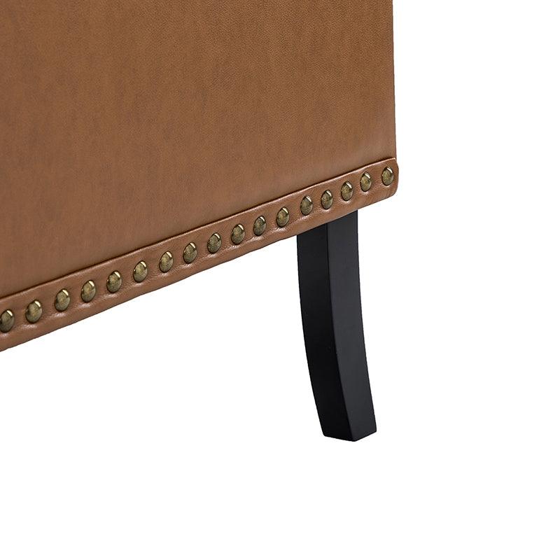Unique style and classic design combine in this inviting armchair. It features a sturdy wood frame, wrapped in PU upholstery with a button-tufted design, elegantly carved front legs, and simple back legs that offer a visual variation. The foam-filled back provides extra support, while the nailhead trim adds a dose of vintage design to it. It is suitable for most of your daily scenarios such as study room, bedroom, and living room. Whether you are enjoying quality family time or entertaining guests, this armchair will extend an open invitation for everyone to relax.