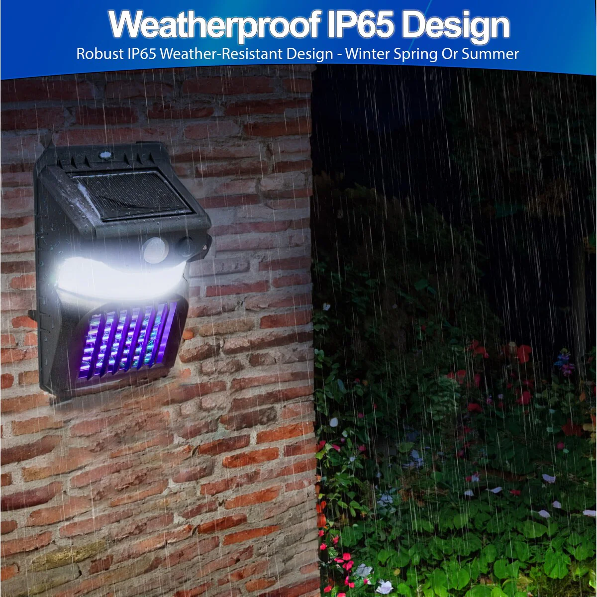 Crafted for resilience, our solar zapper remains unyielding against the unpredictable. Its robust waterproof build guarantees consistent performance, no matter the weather. Beyond this, its lightweight design beckons eco-friendly adventure, from tranquil backyards to wild camping terrains.