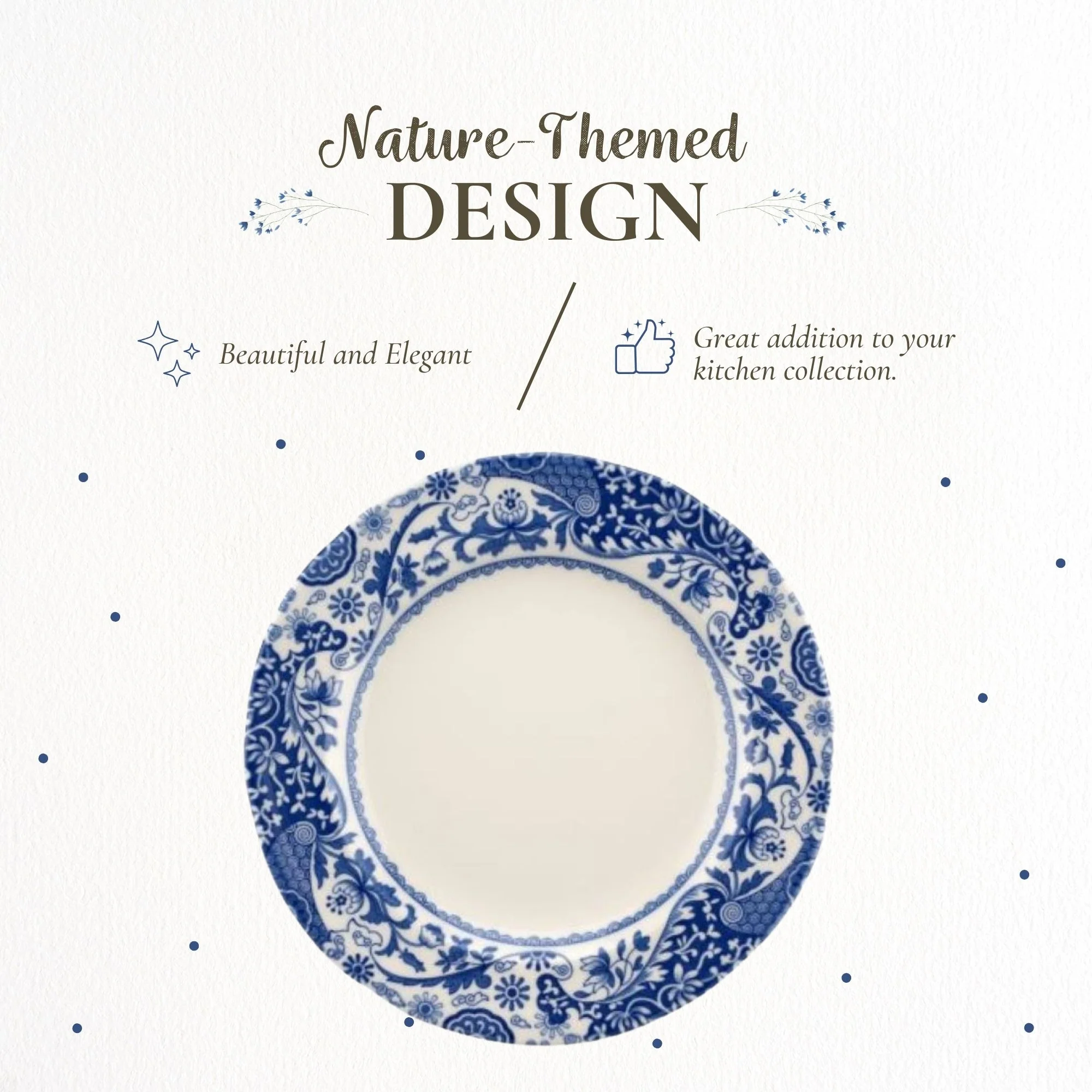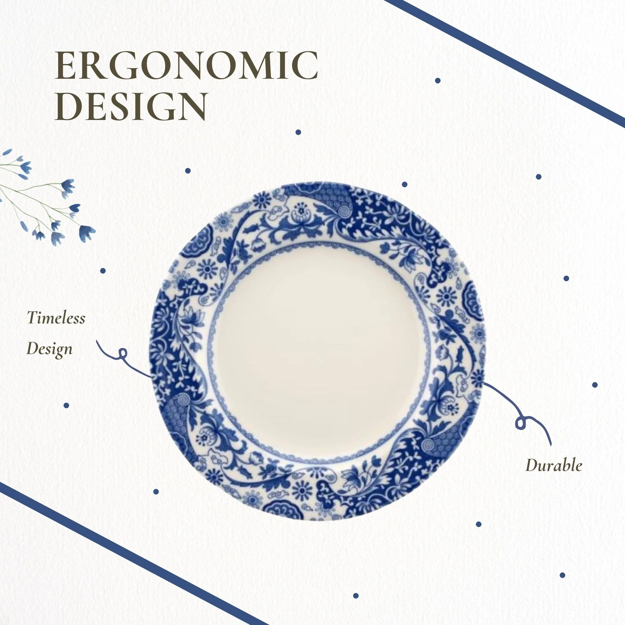 - Refreshed Eastern-Inspired Motif: The border design channels a light oriental dinnerware aesthetic, reinterpreting the classic Blue Italian look into a more contemporary and delicate style.