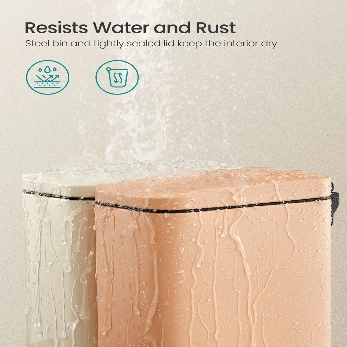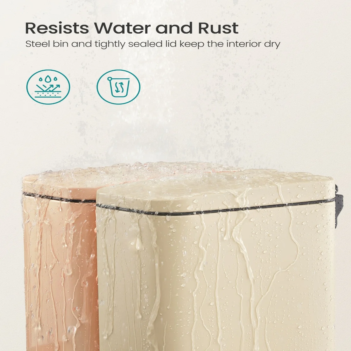 - Perfect for Damp Bathrooms: Featuring a stainless steel bin and a tightly sealed lid, this small trash can is resistant to rust and water, ensuring a dry interior that’s perfect for use in damp bathrooms