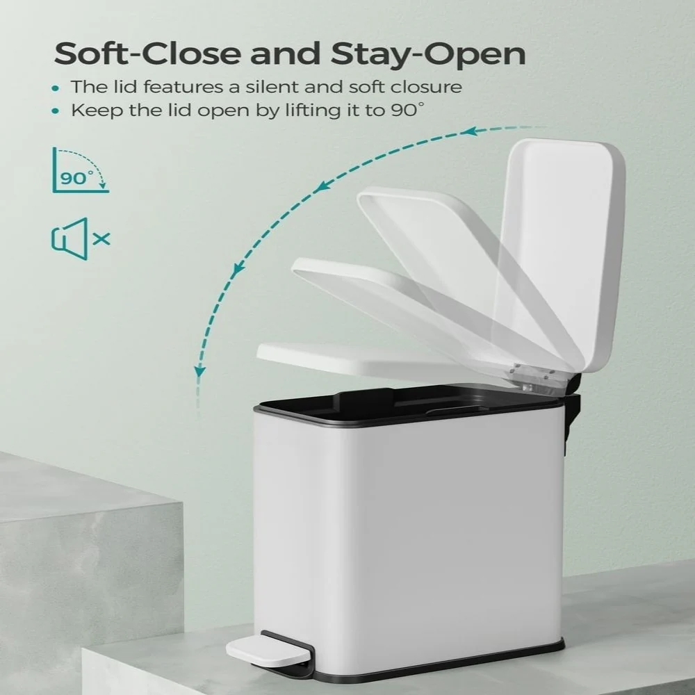 - Soft-Close & Stay-Open: This trash bin features a lid that closes quietly and gently without slamming shut. Additionally, you can keep the lid open for easy waste disposal when needed