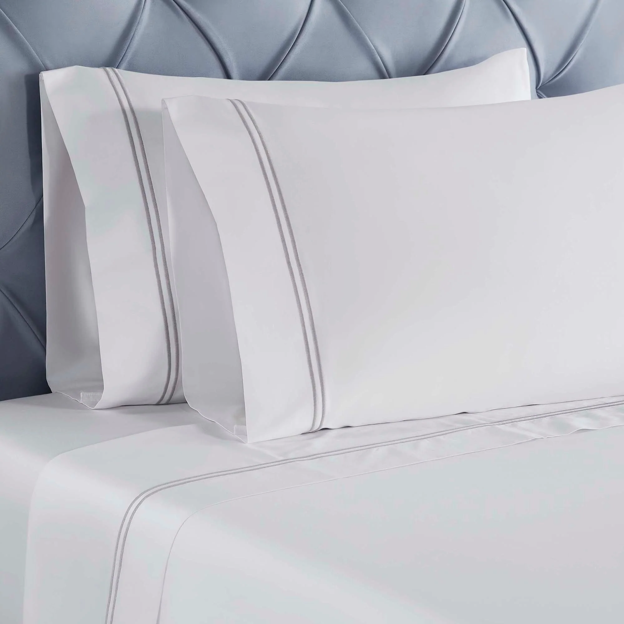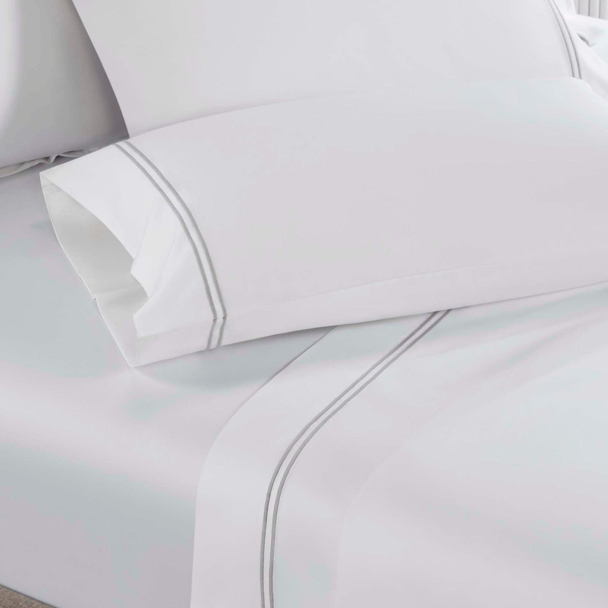 Introduce a bedding ensemble that boasts style and comfort with the Superior Fieldstone Bed Sheet Set. Crafted from naturally soft and strong cotton, this cozy sheet set is breathable, durable, and long-lasting. Included in each set are one flat sheet, one fitted sheet, and two pillowcases (Twin/Twin XL includes one pillowcase). Decorated with an intricate two-line embroidery and finished with a subtle shimmer, this sheet set meets both your fashion and comfort needs.