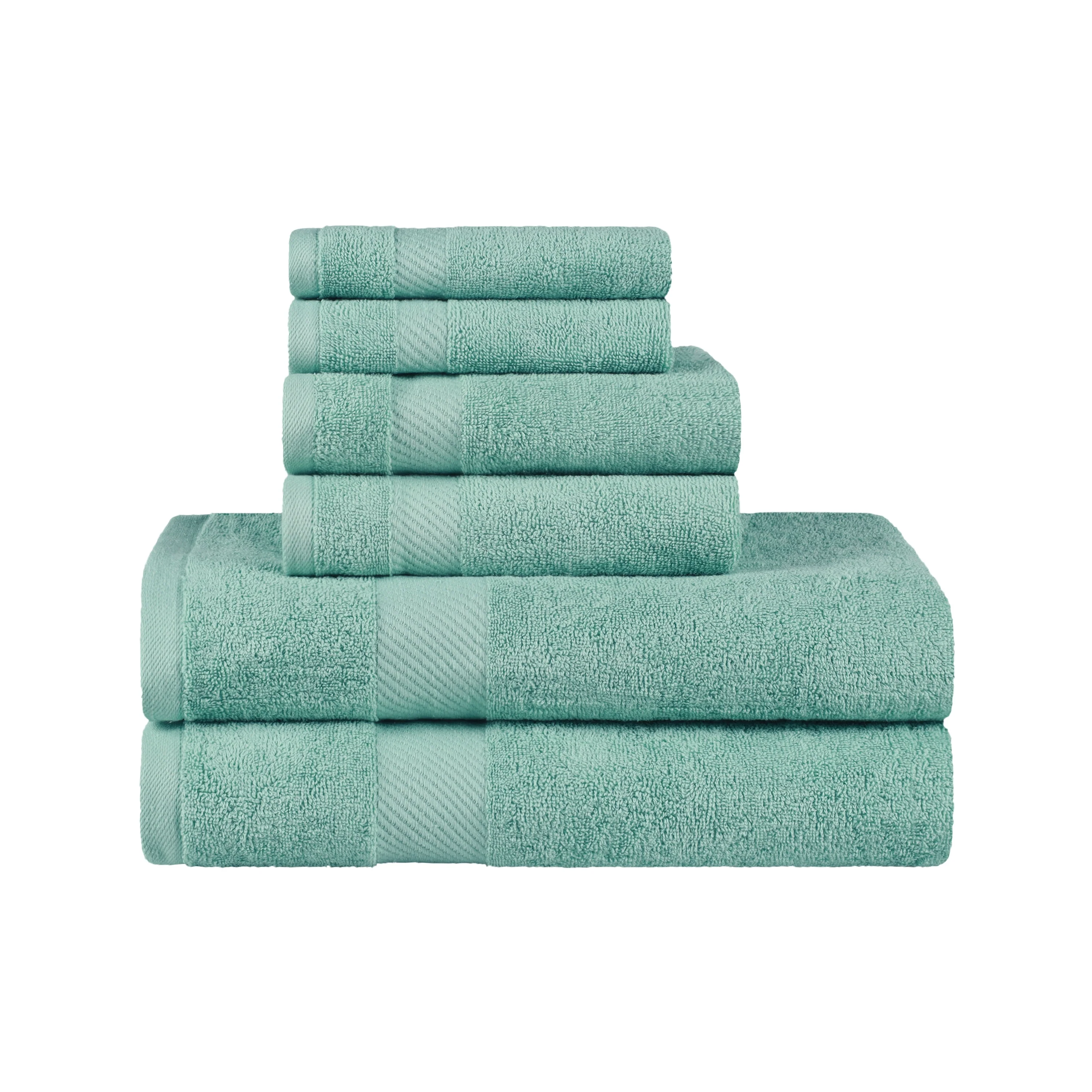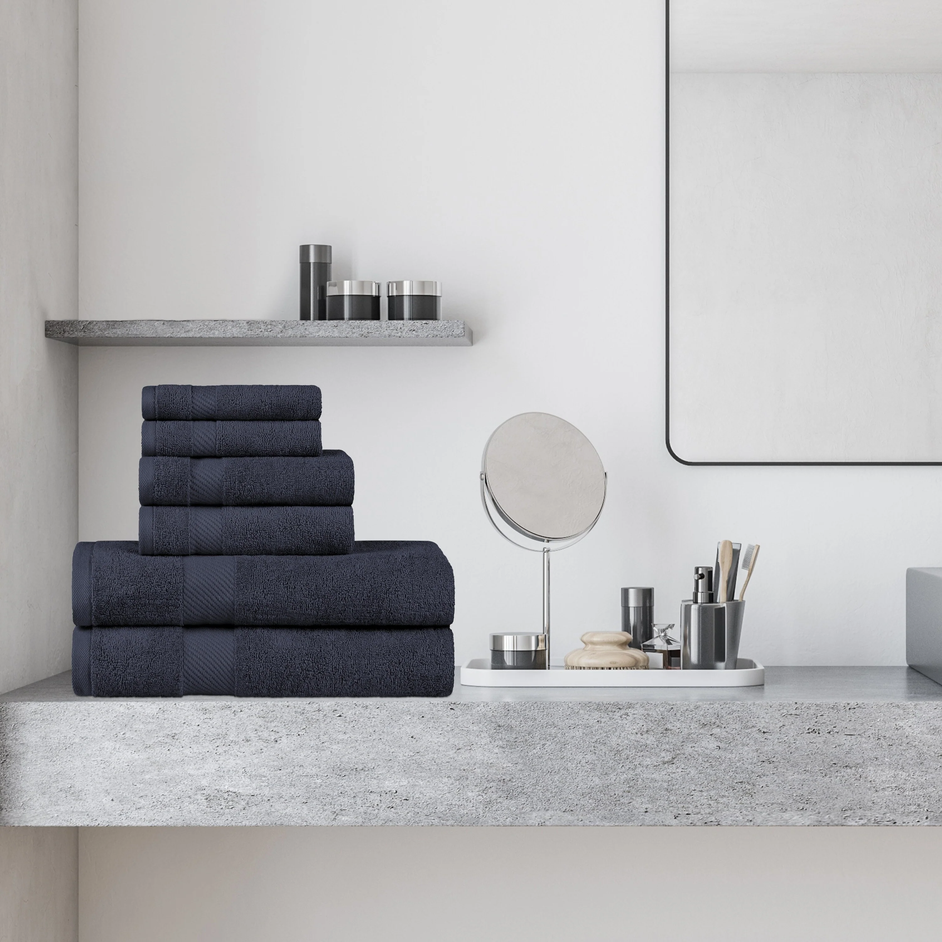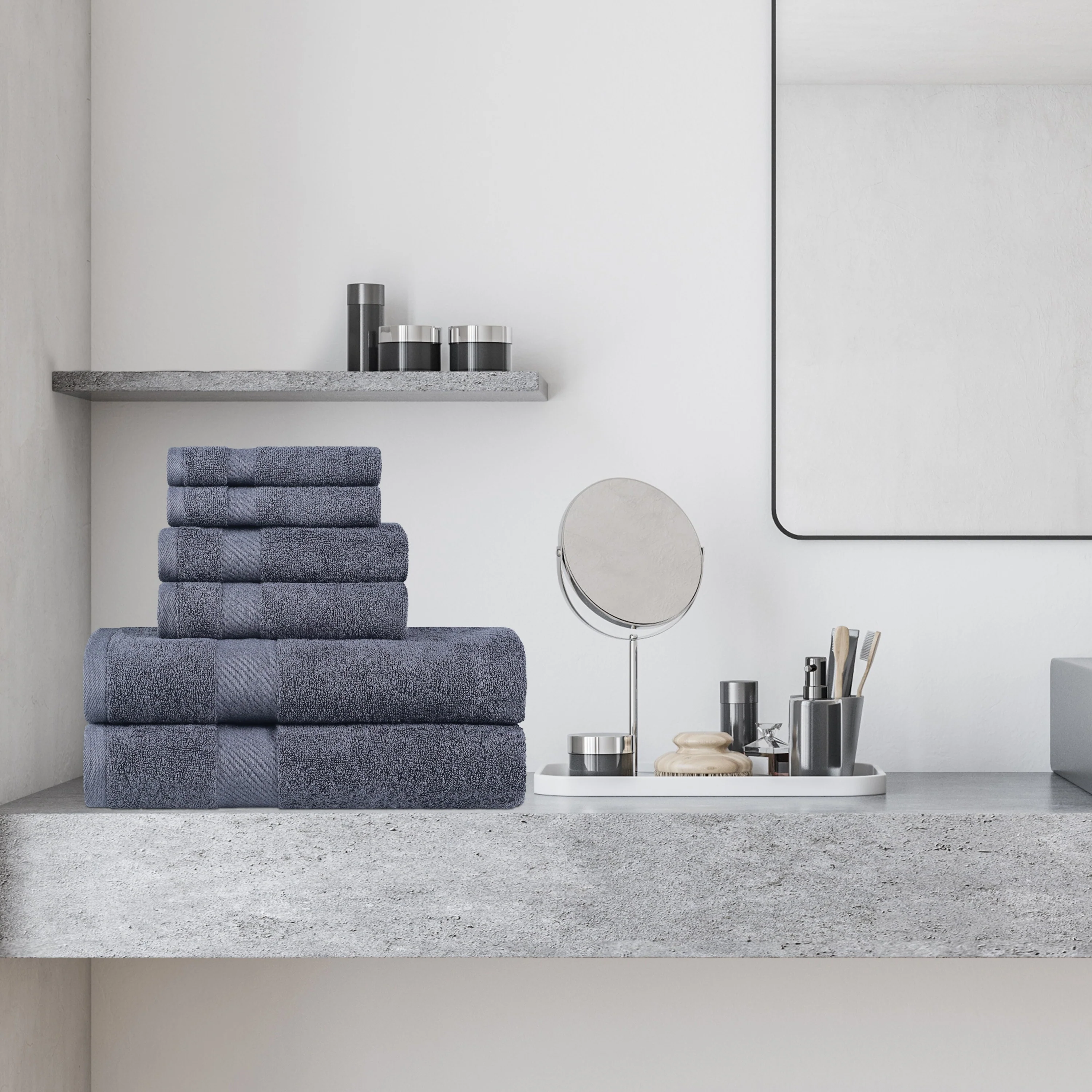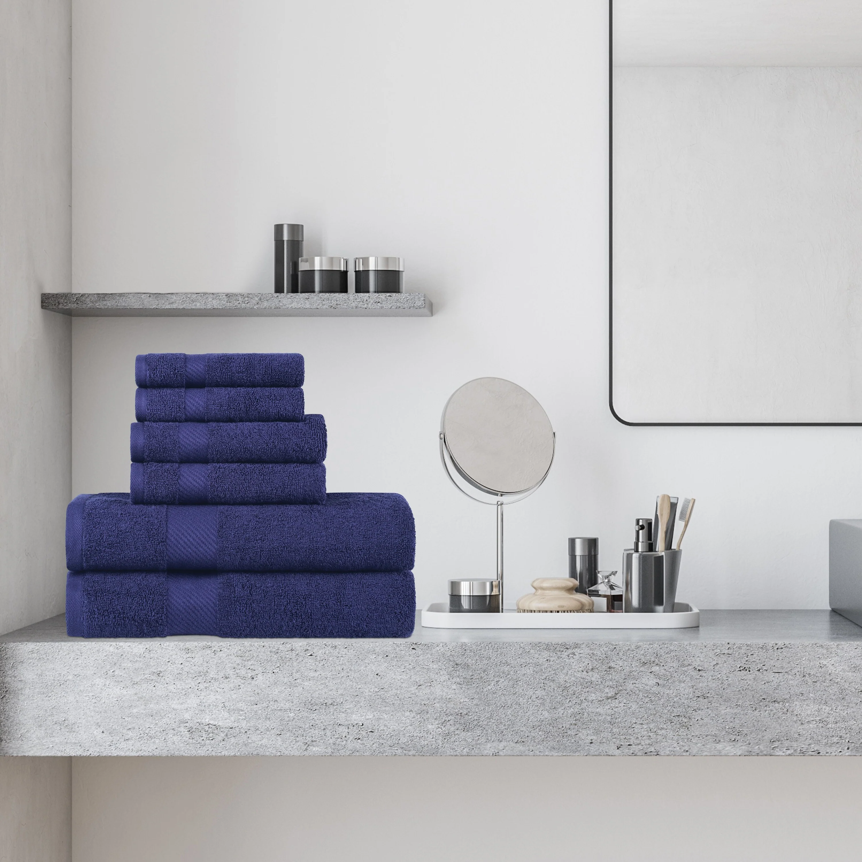 The Gabouray Luxury Solid Highly Absorbent Egyptian Cotton 6 Piece Bath, Face, and Hand Towel Set by Superior is the perfect complement to any bathroom. This luxurious towel set will tie together any bathroom decor style including; Modern, Casual, Classic, or Traditional. The solid design with a classic dobby border will seamlessly elevate the mood of your space. The length and strength of premium Egyptian Cotton make these towels naturally strong and soft. For comfort and durability, each towel provides versatile absorption. These delightful towels are available in a variety of vibrant colors to match your bathroom decor.