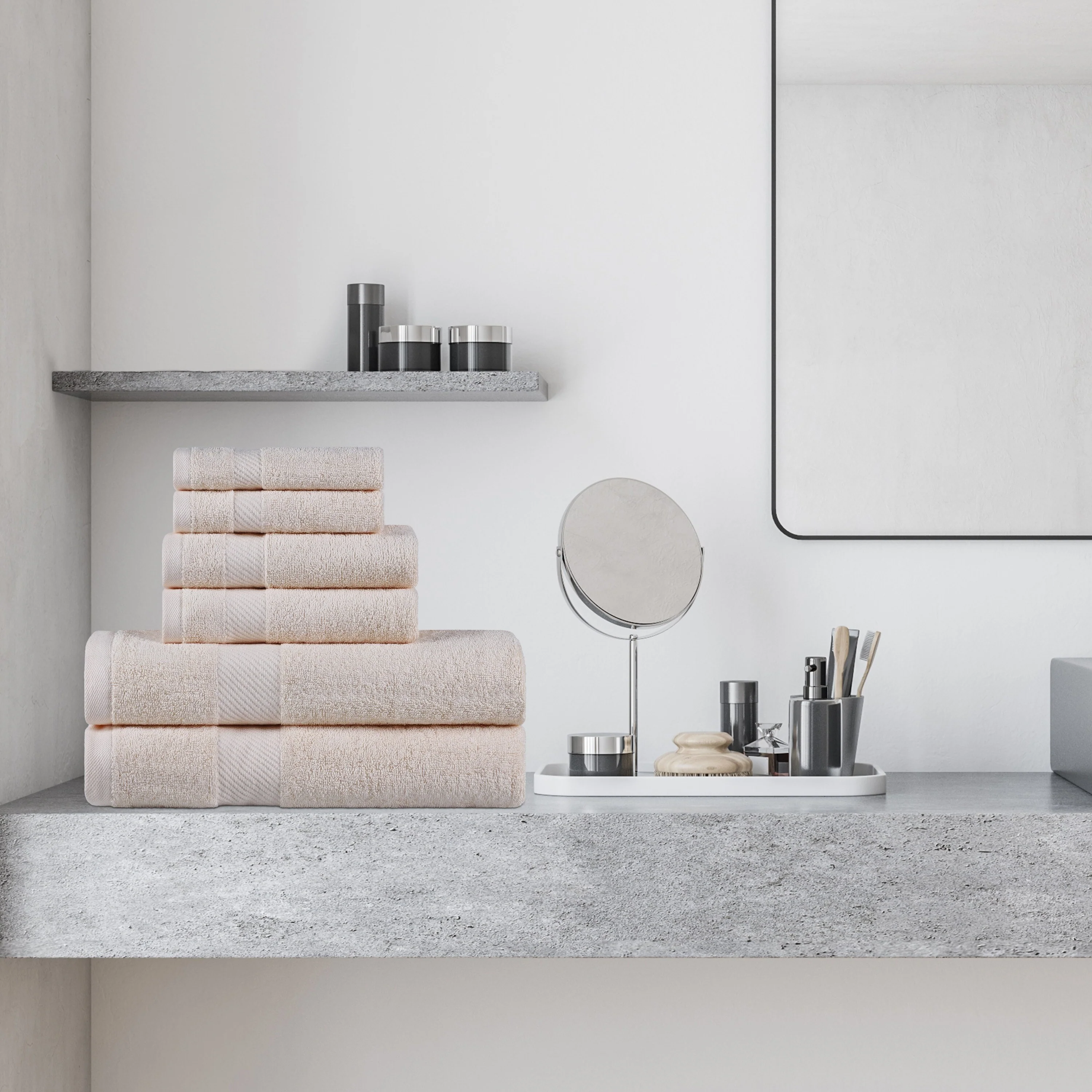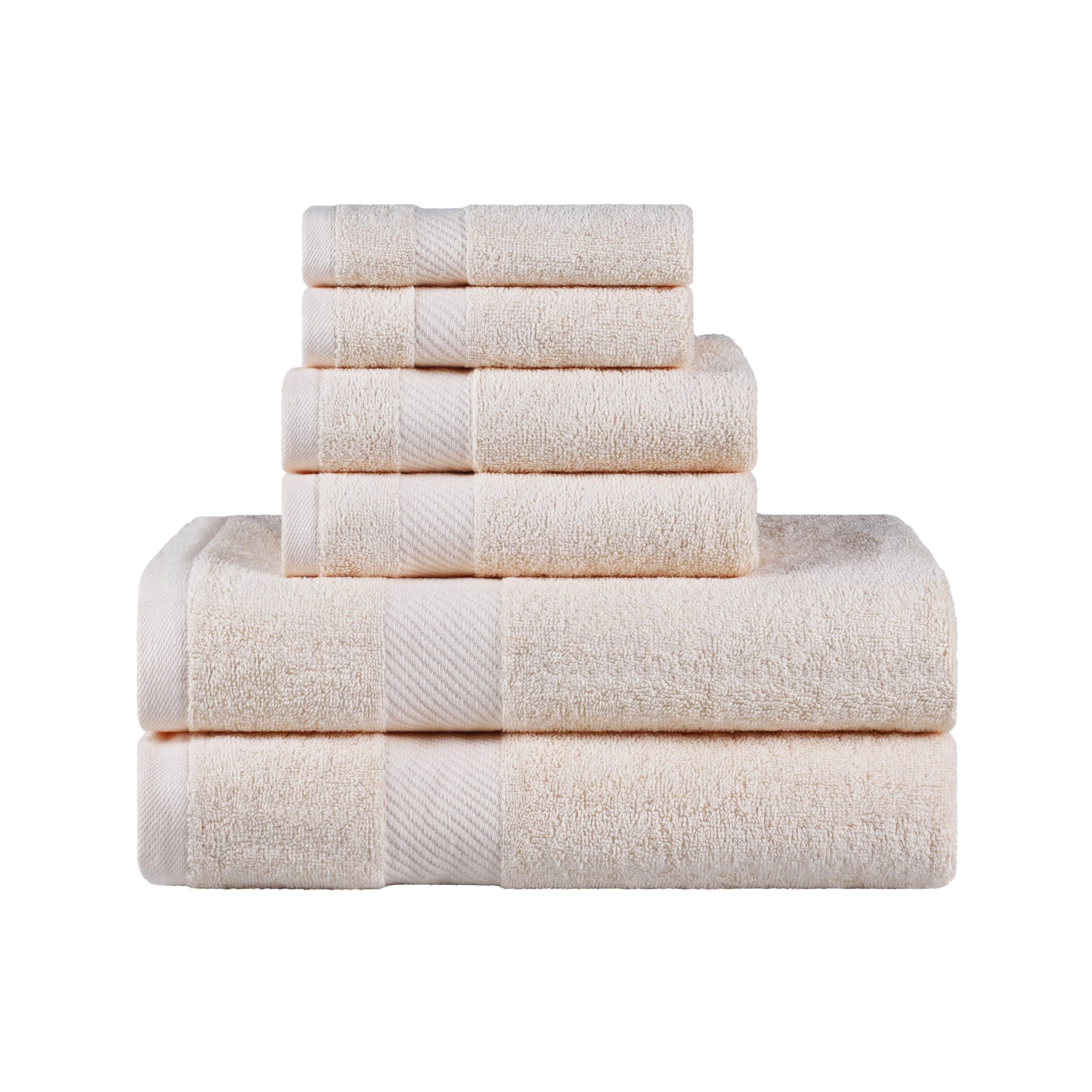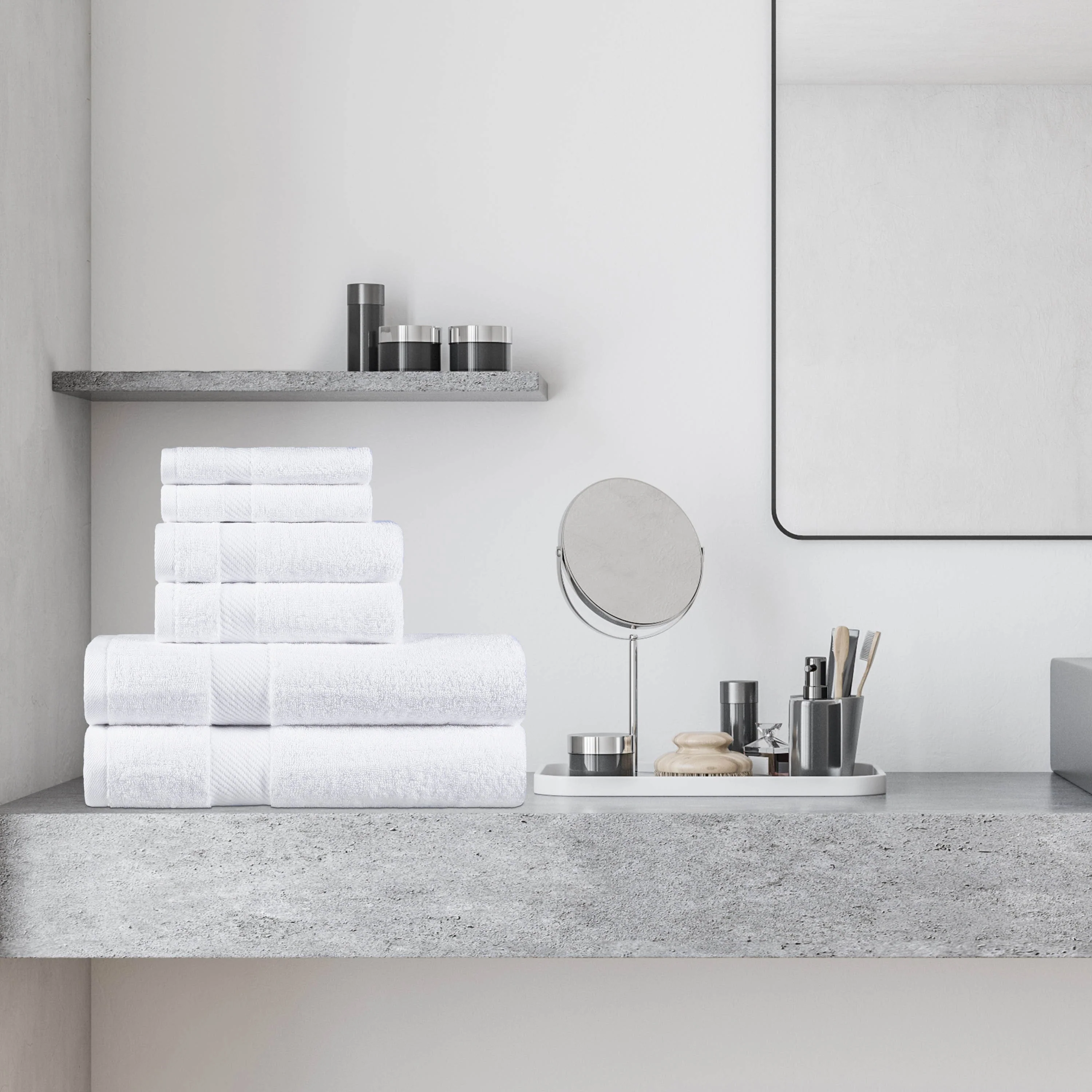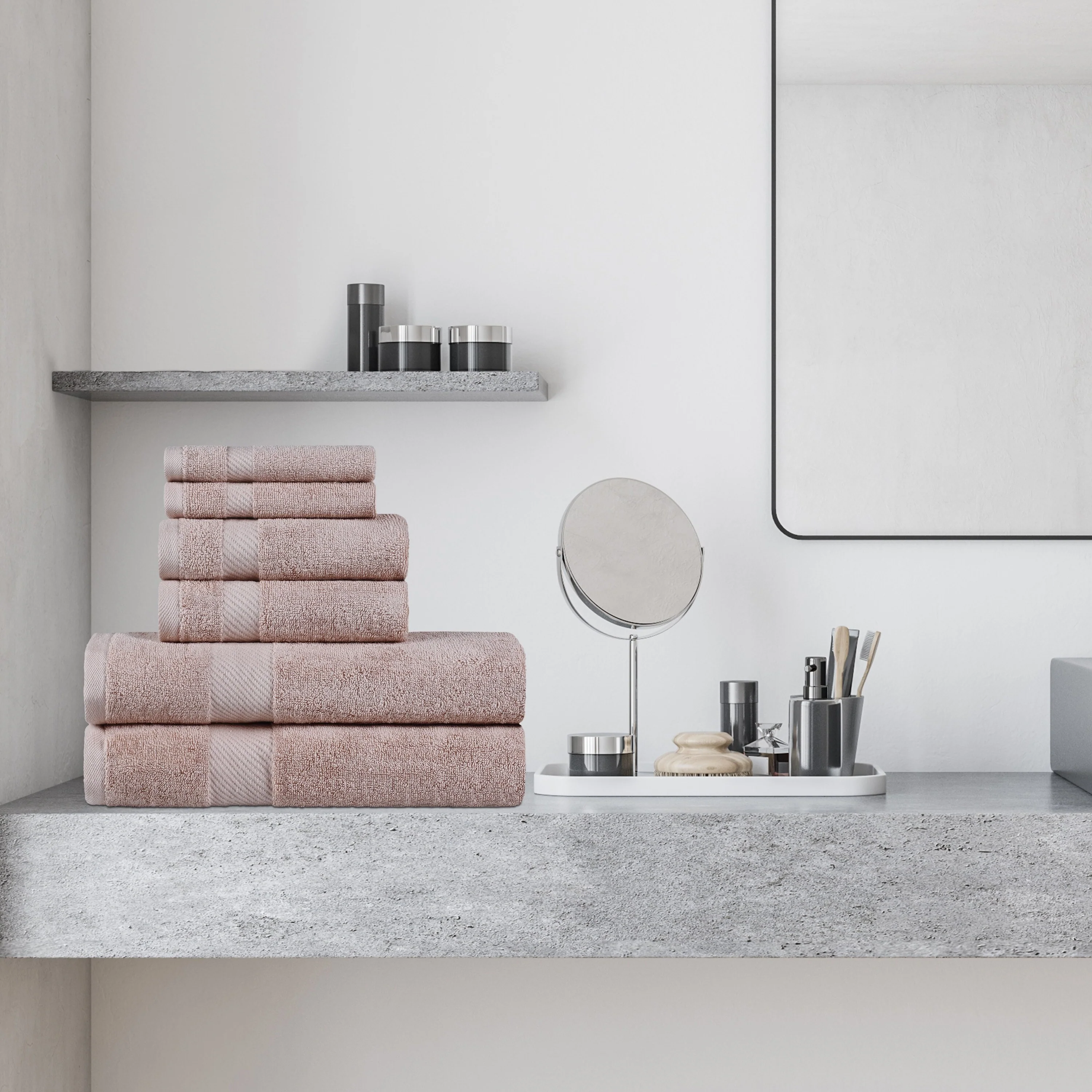 The Gabouray Luxury Solid Highly Absorbent Egyptian Cotton 6 Piece Bath, Face, and Hand Towel Set by Superior is the perfect complement to any bathroom. This luxurious towel set will tie together any bathroom decor style including; Modern, Casual, Classic, or Traditional. The solid design with a classic dobby border will seamlessly elevate the mood of your space. The length and strength of premium Egyptian Cotton make these towels naturally strong and soft. For comfort and durability, each towel provides versatile absorption. These delightful towels are available in a variety of vibrant colors to match your bathroom decor.
