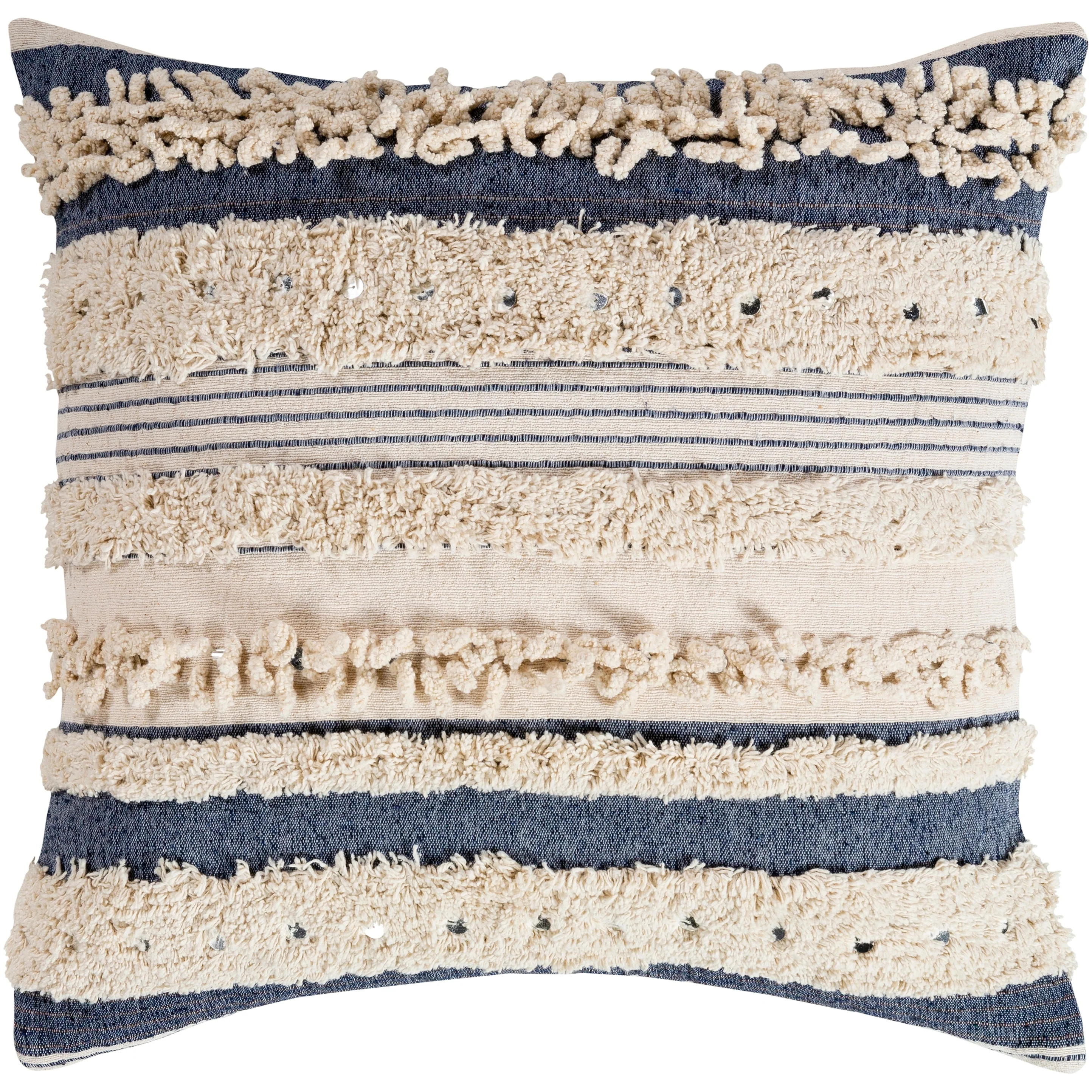 Bring some lively color to your living space with our Talco Boho Stripe Throw Pillow. The shaggy texture and sequin details add a playful touch to any bedroom or cozy nook. With three different colorways to choose from, this pillow features a hidden zipper enclosure for easy removal and a solid beige back panel. Made in India, this pillow is available as a cover only or with a feather down or polyester fill. Care Instructions: Spot Clean only.