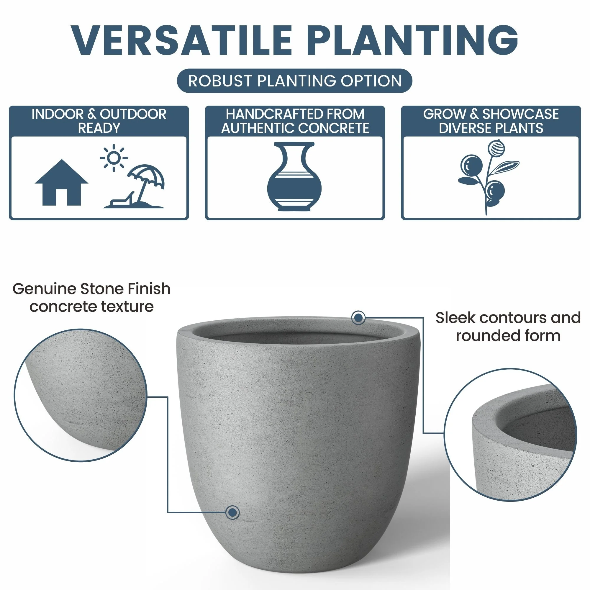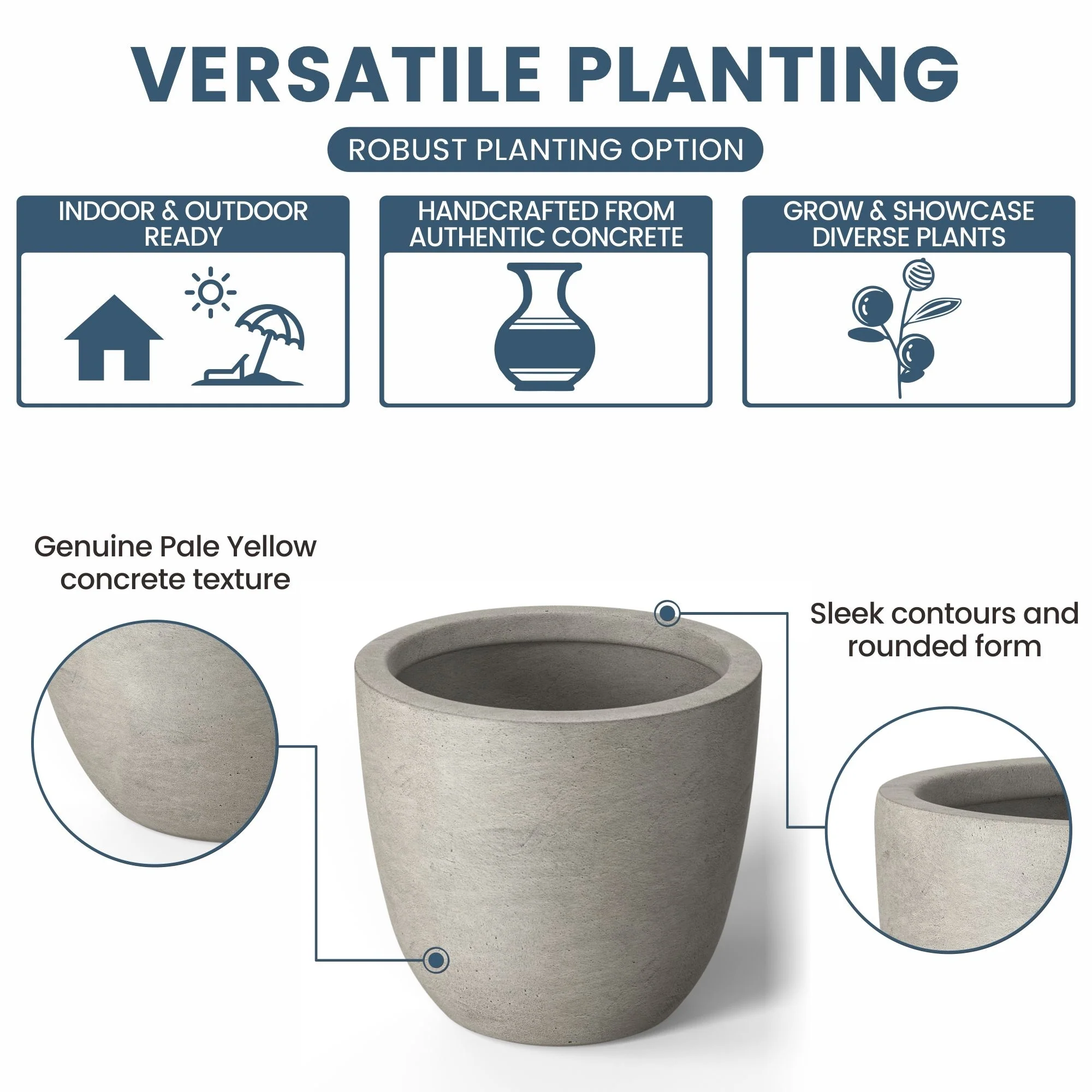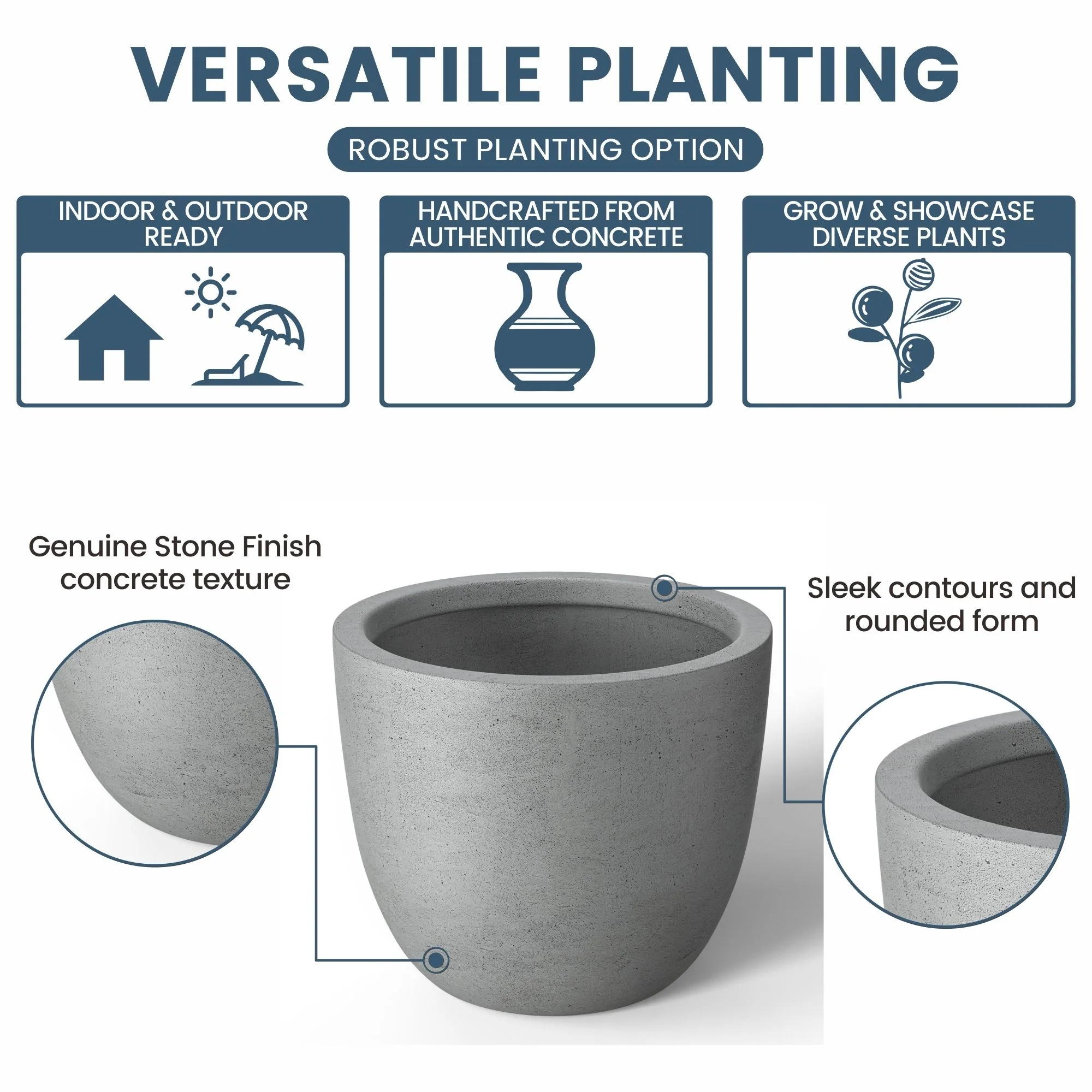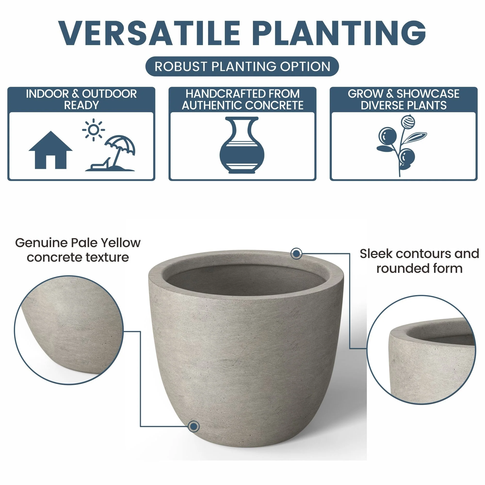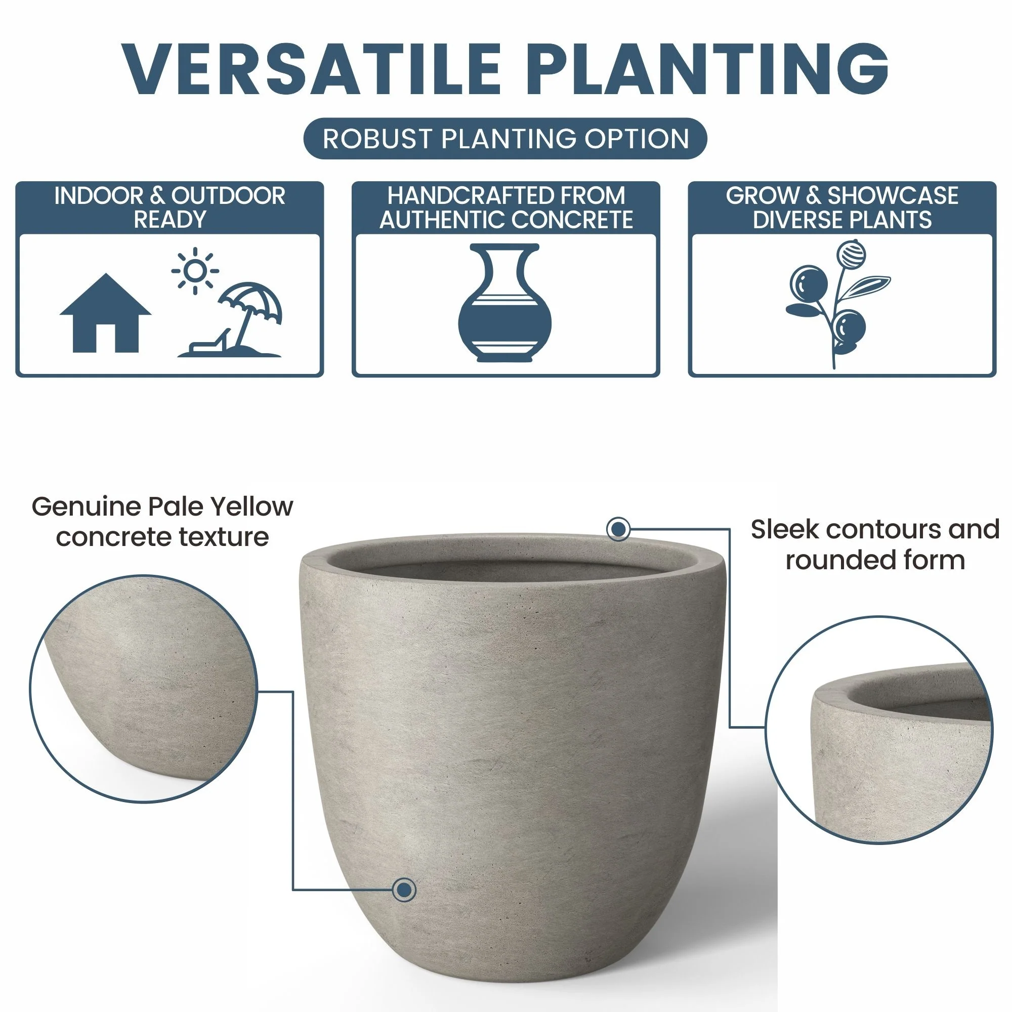 *Durability Meets Style: The cement planter and concrete planter indoor options are not only durable but also complement your home's modern décor with their stone and faux concrete finishes