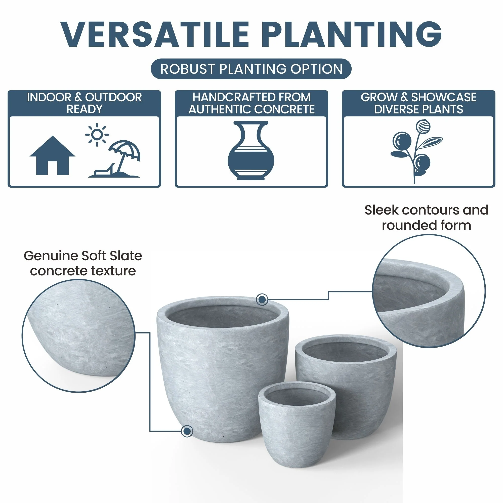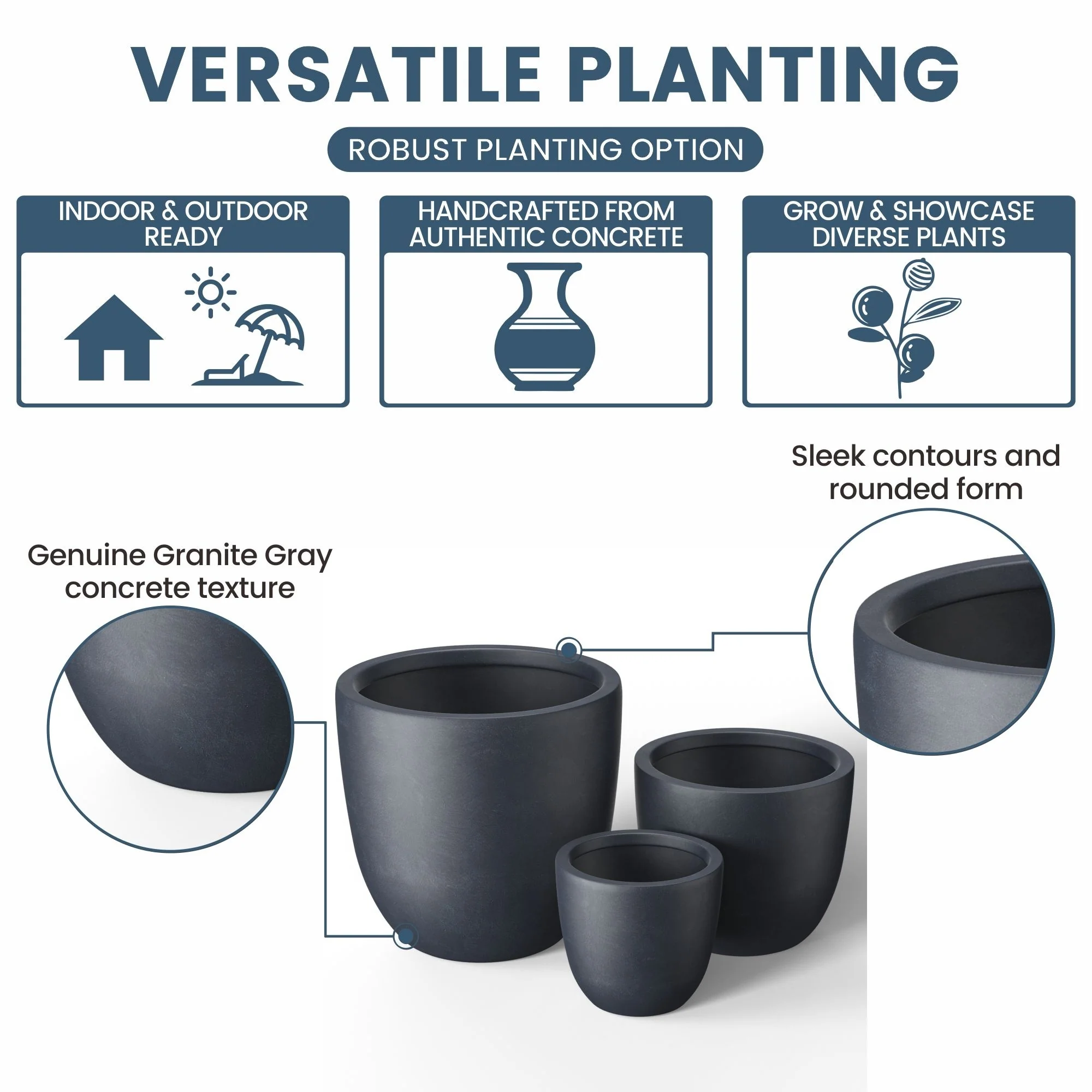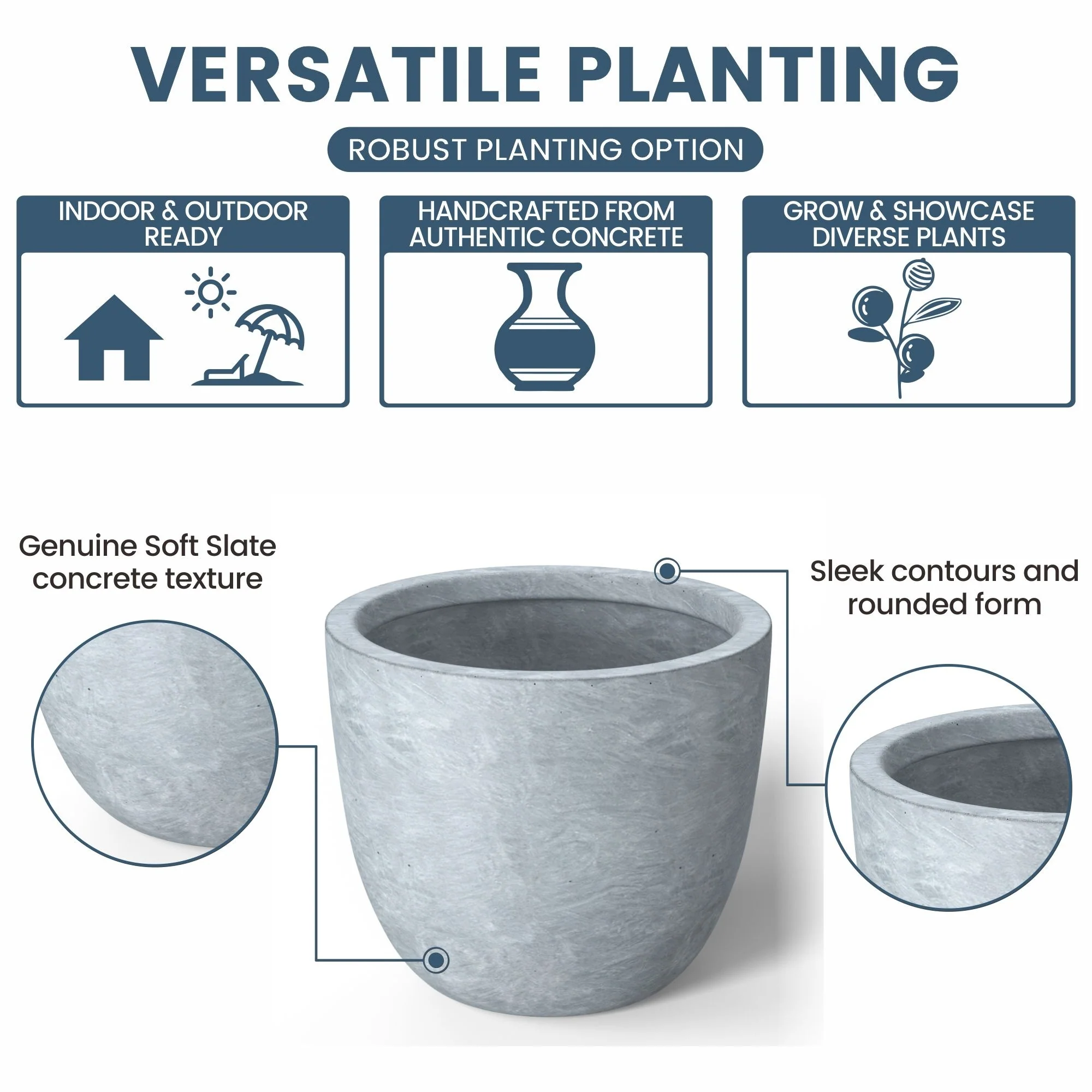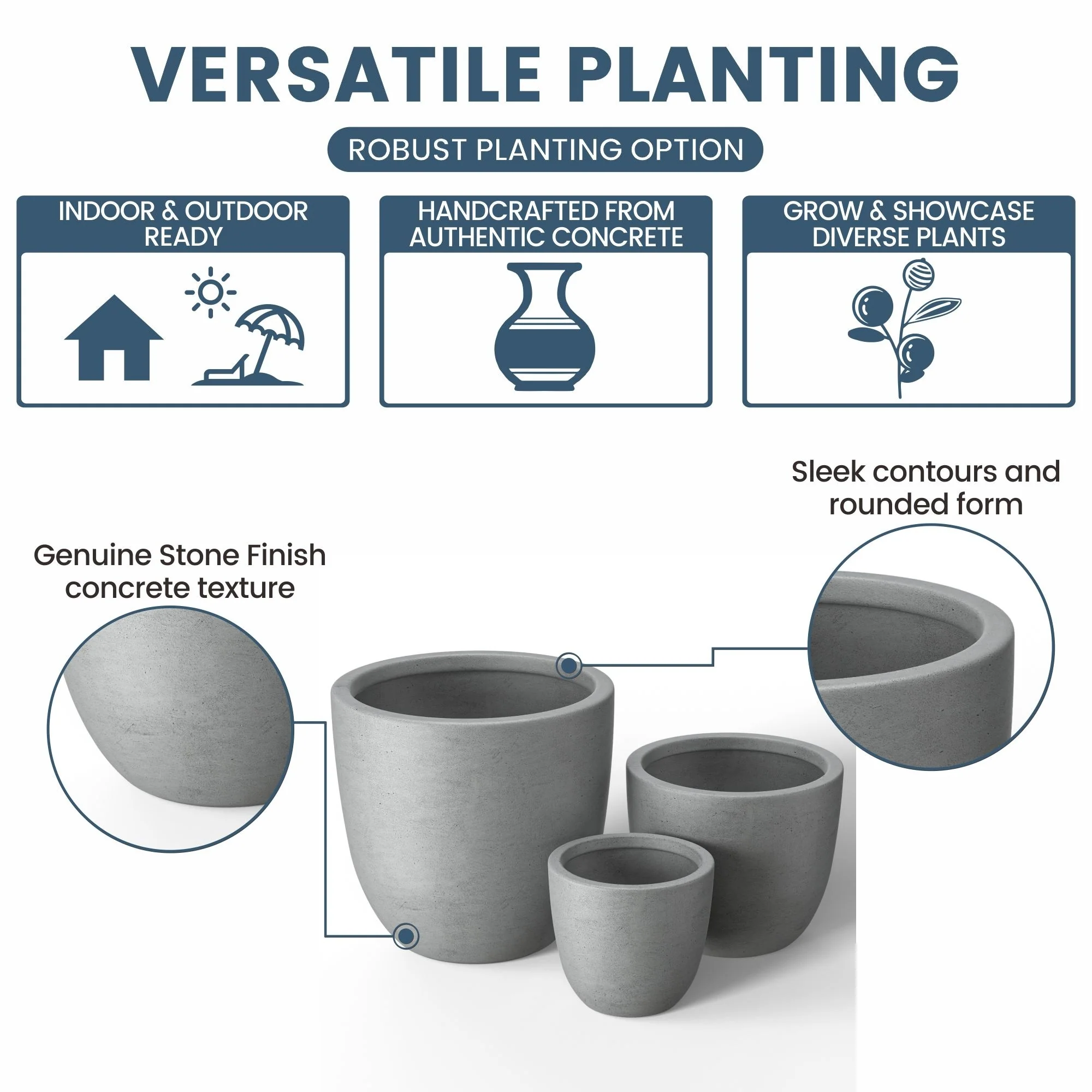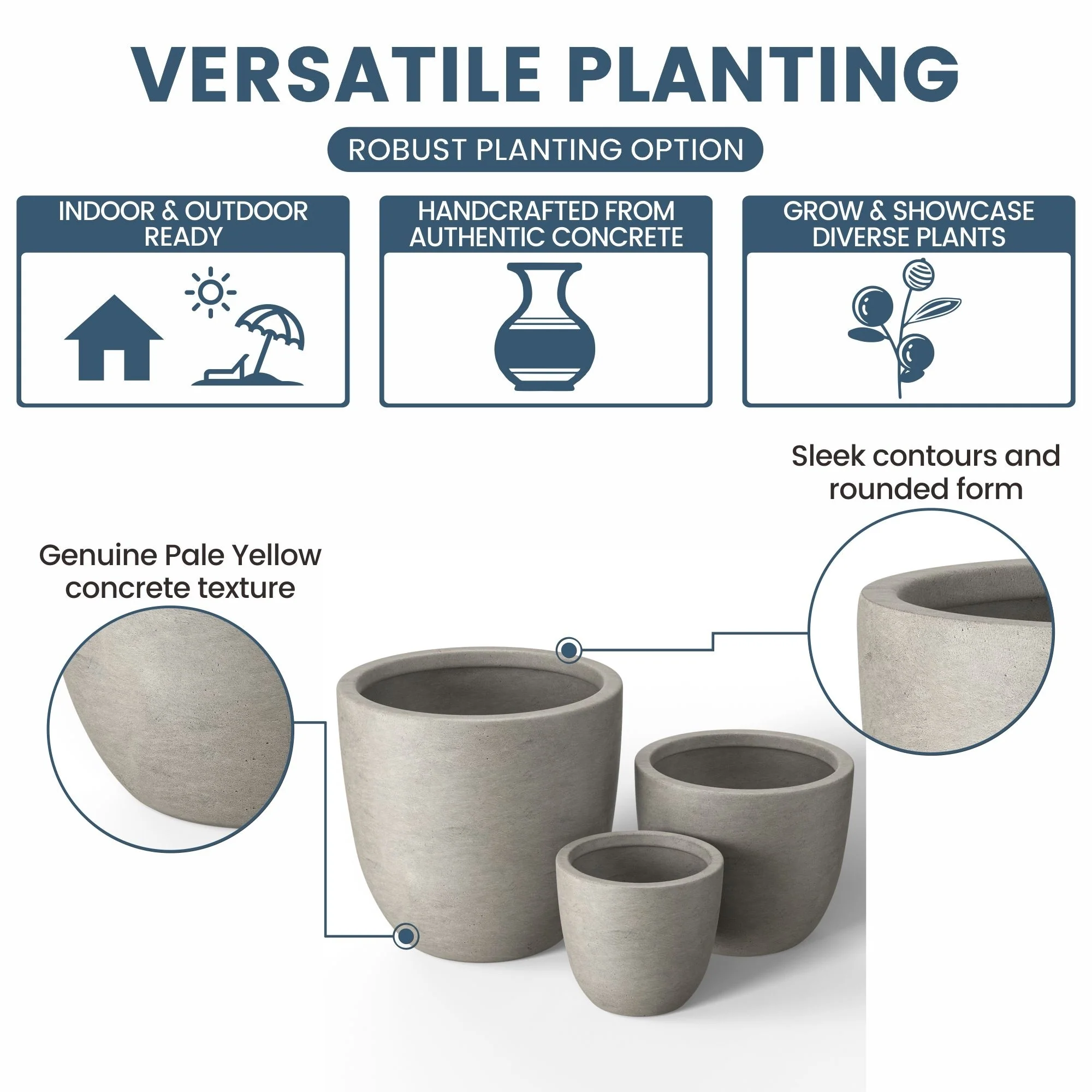 *Durability Meets Style: The cement planter and concrete planter indoor options are not only durable but also complement your home's modern décor with their stone and faux concrete finishes