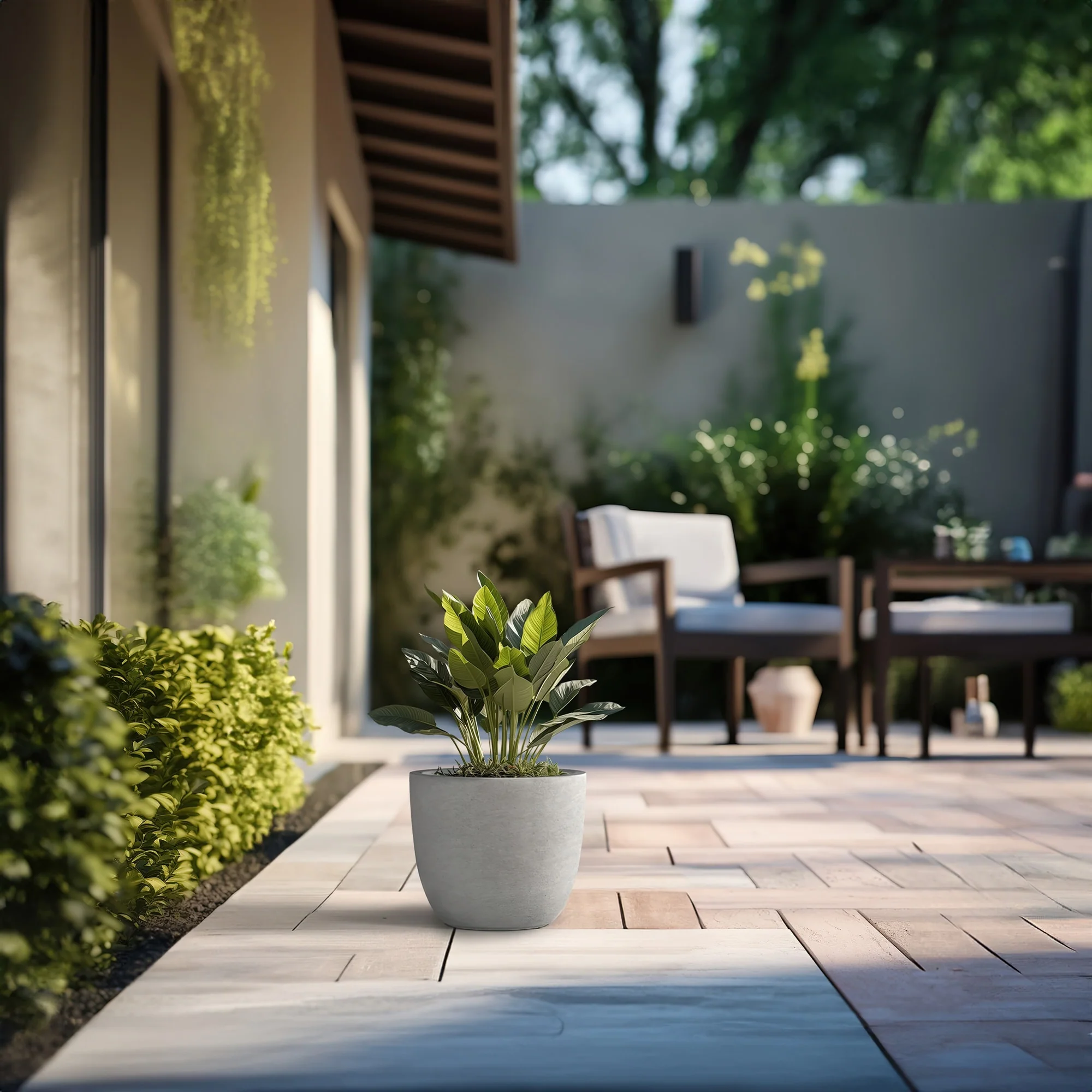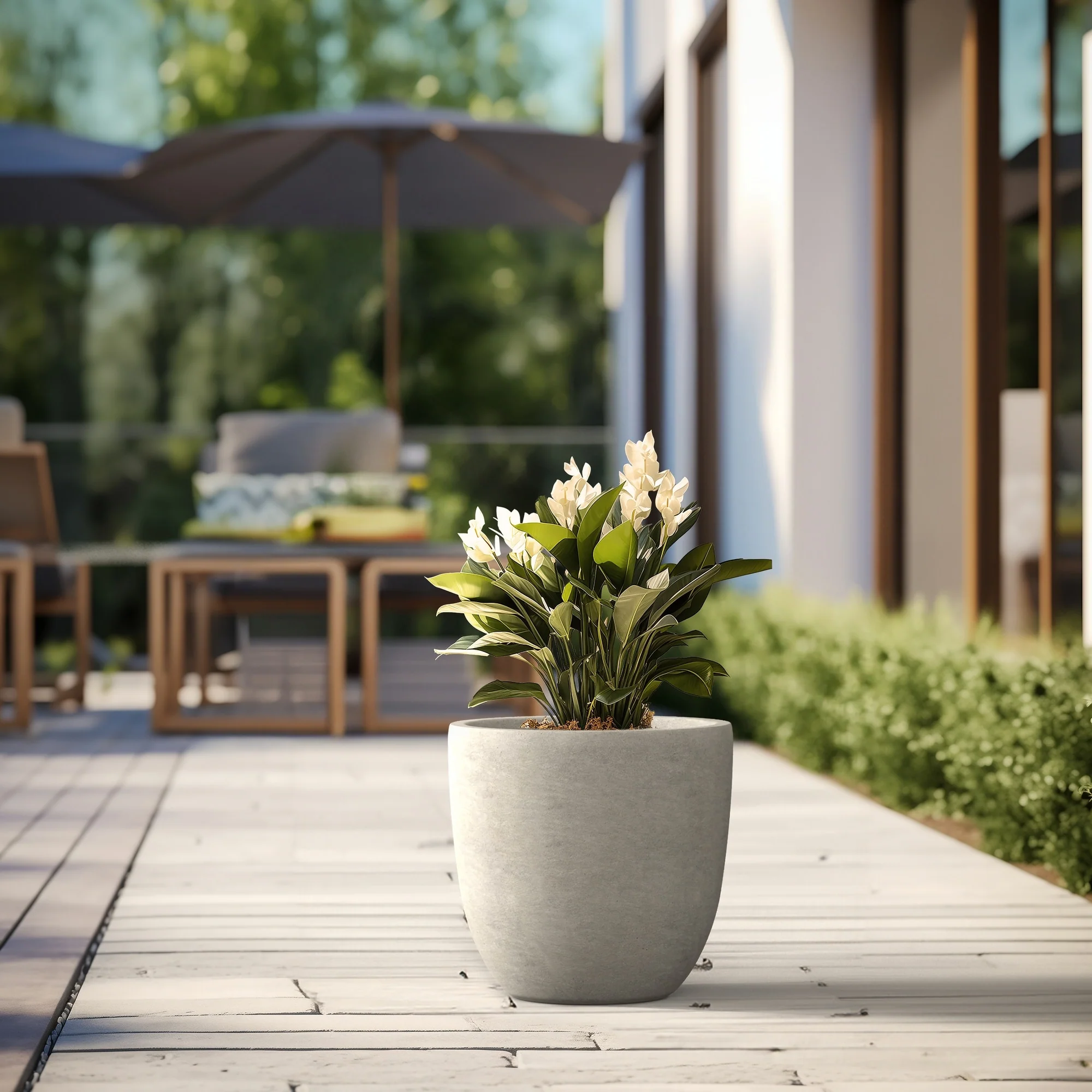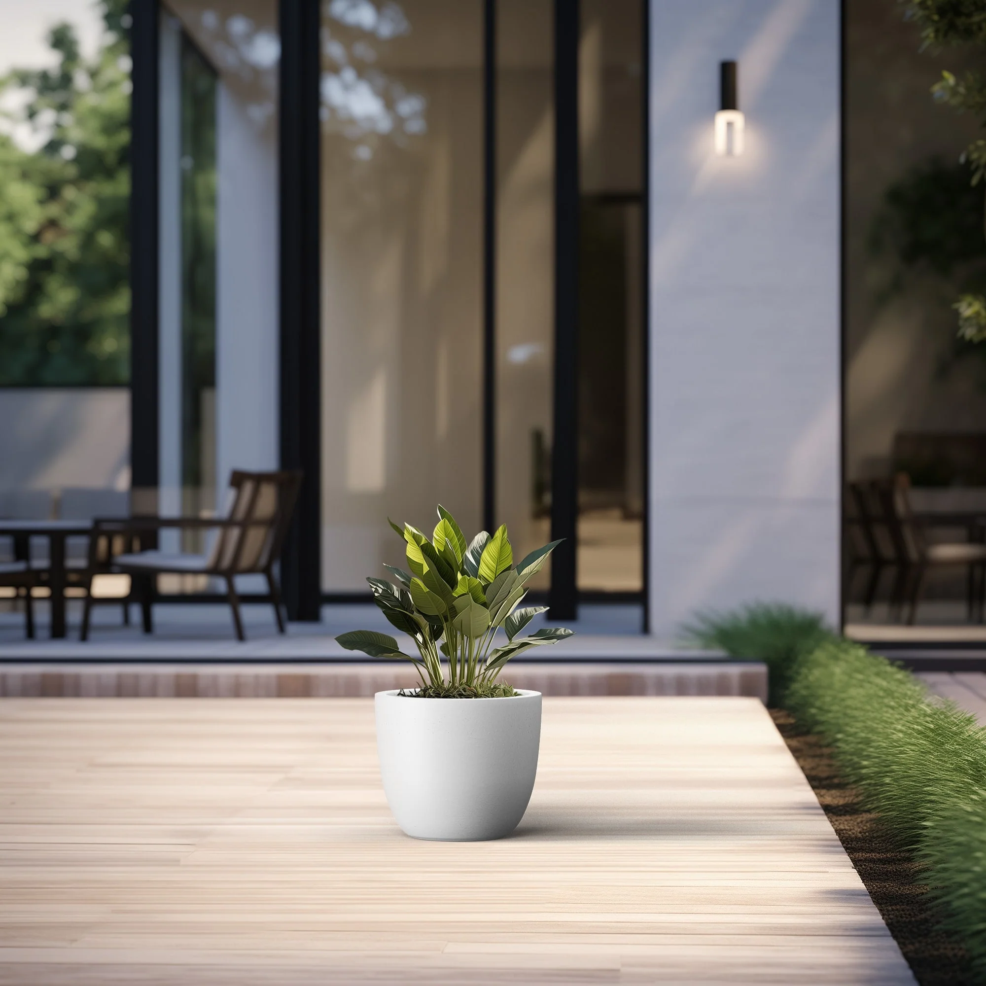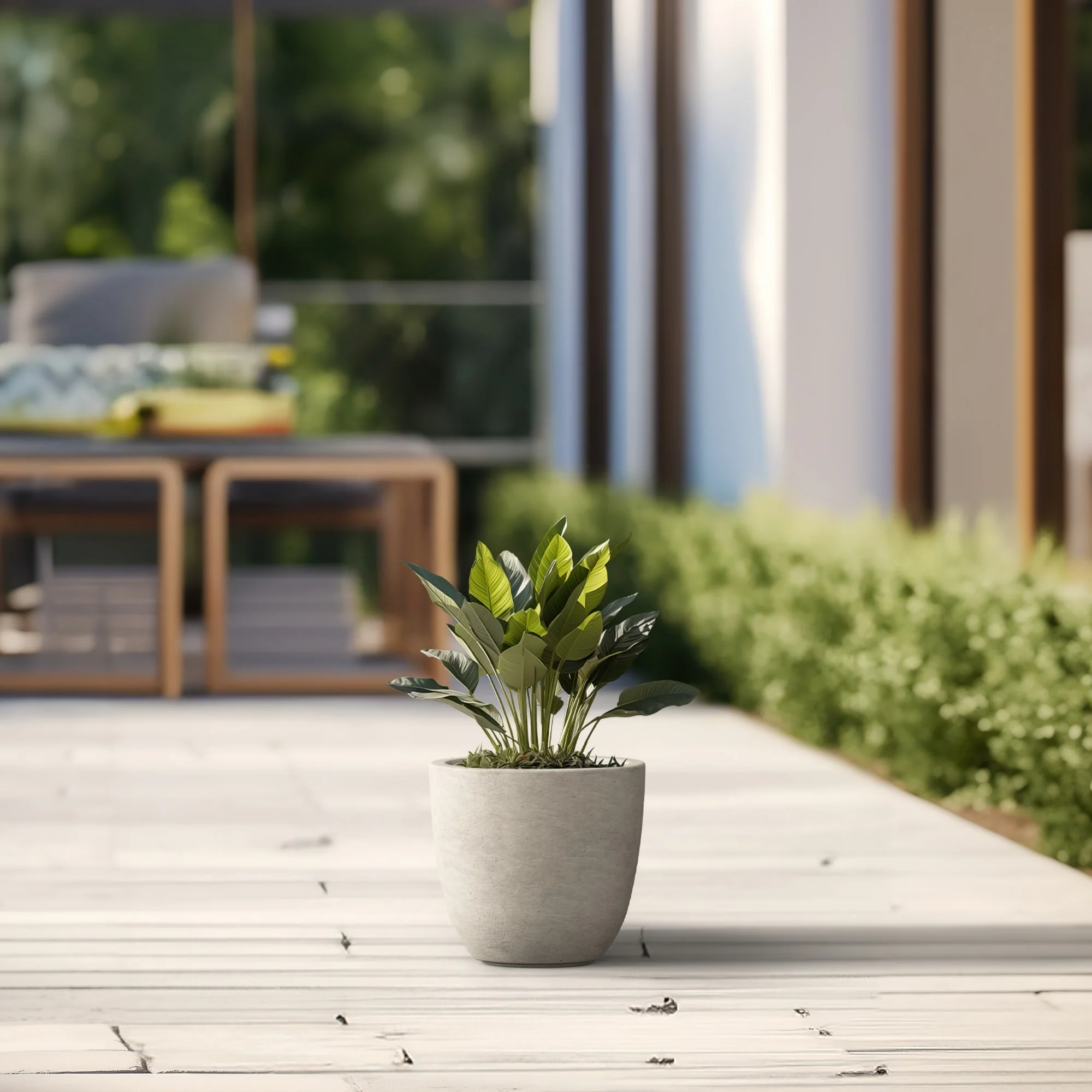 Unveil a sanctuary of green with our Durx-litecrete planters, where every piece is a blend of art and utility. These elegant planters boast a sophisticated concrete finish with visible pores, a testament to their authentic, contemporary design. Their weight is a pleasant surprise, substantial in appearance yet light enough to grace both indoor and outdoor settings. The smooth texture stands in stark contrast to the traditional rough concrete, making these planters a perfect match for the modern North American home. Spacious enough to house a diverse plant life, they sit beautifully on an apartment balcony or a vast backyard patio, infusing harmony and style with their versatile concrete finish.