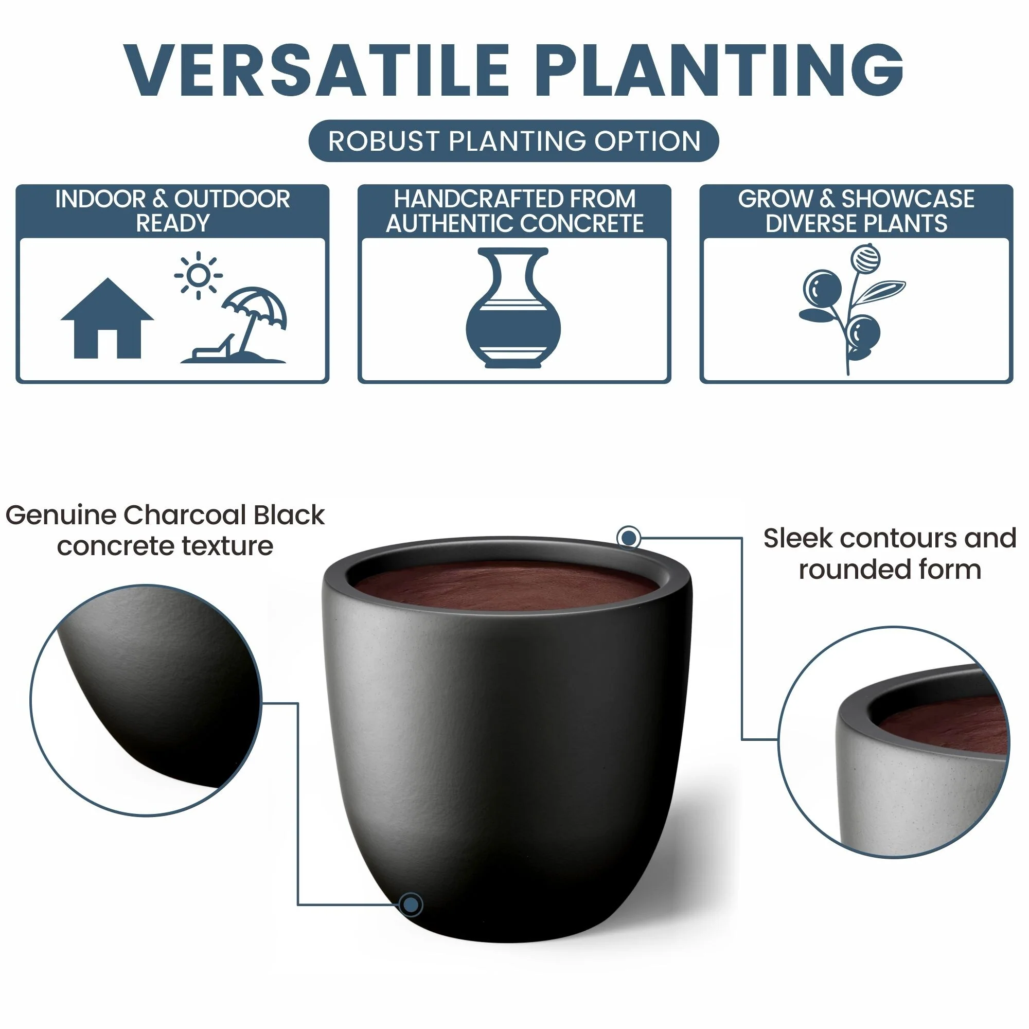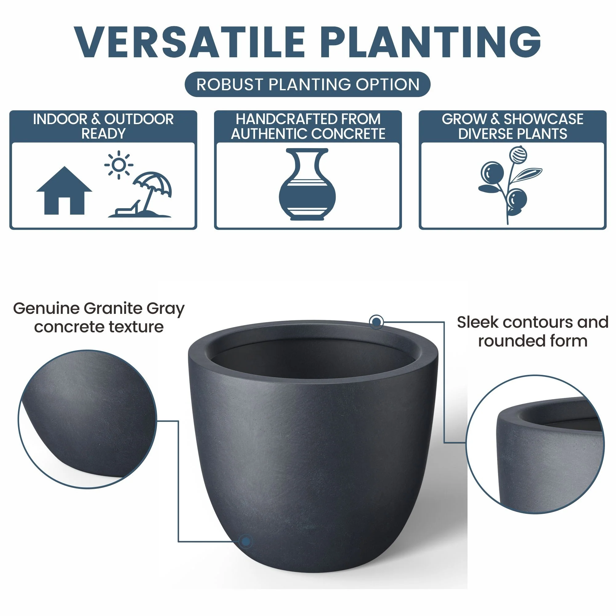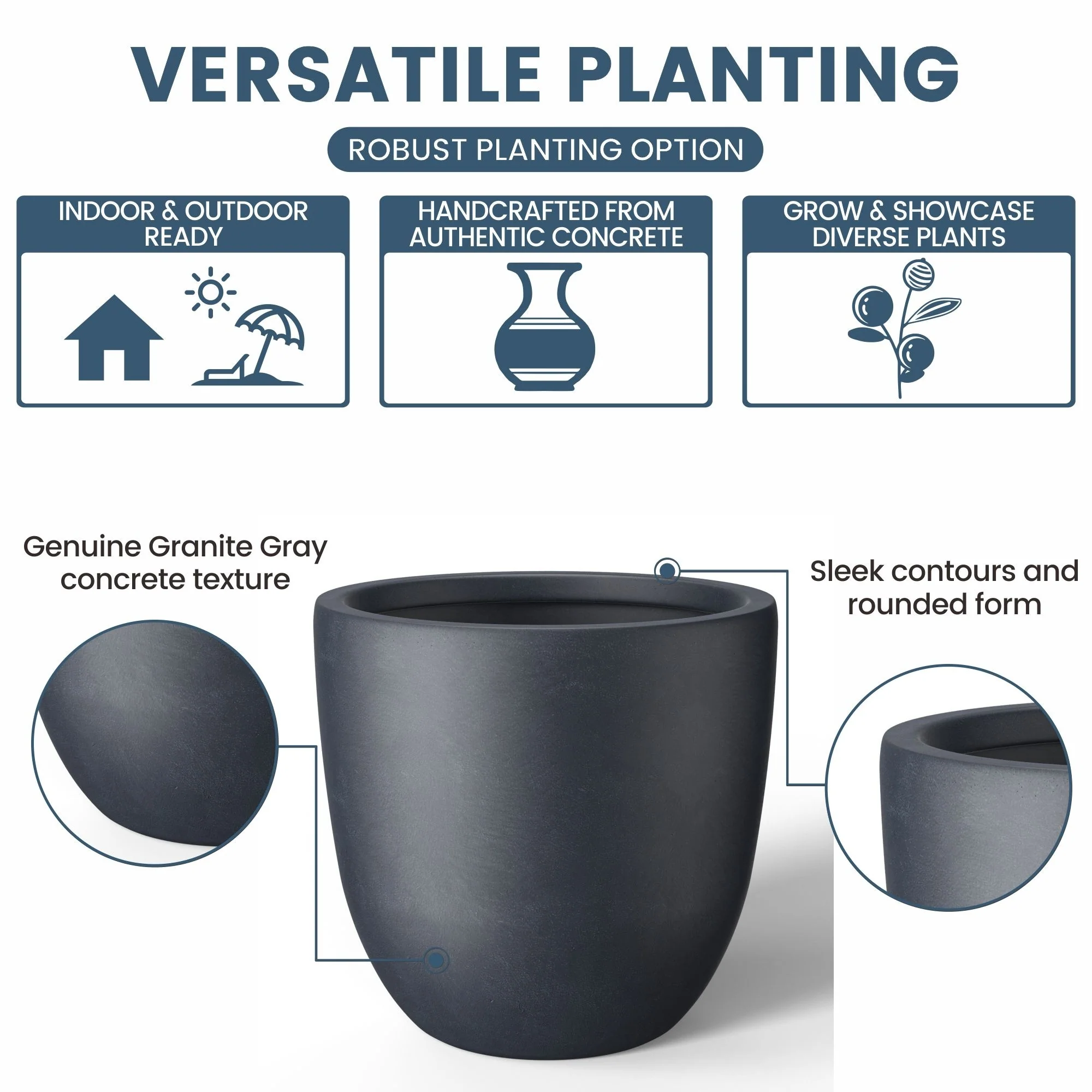 *Versatile Designs: From tall planters for outdoor plants to modern planters that make a statement, the Durx-litecrete collection offers a variety of shapes including round planters and tall planter pots