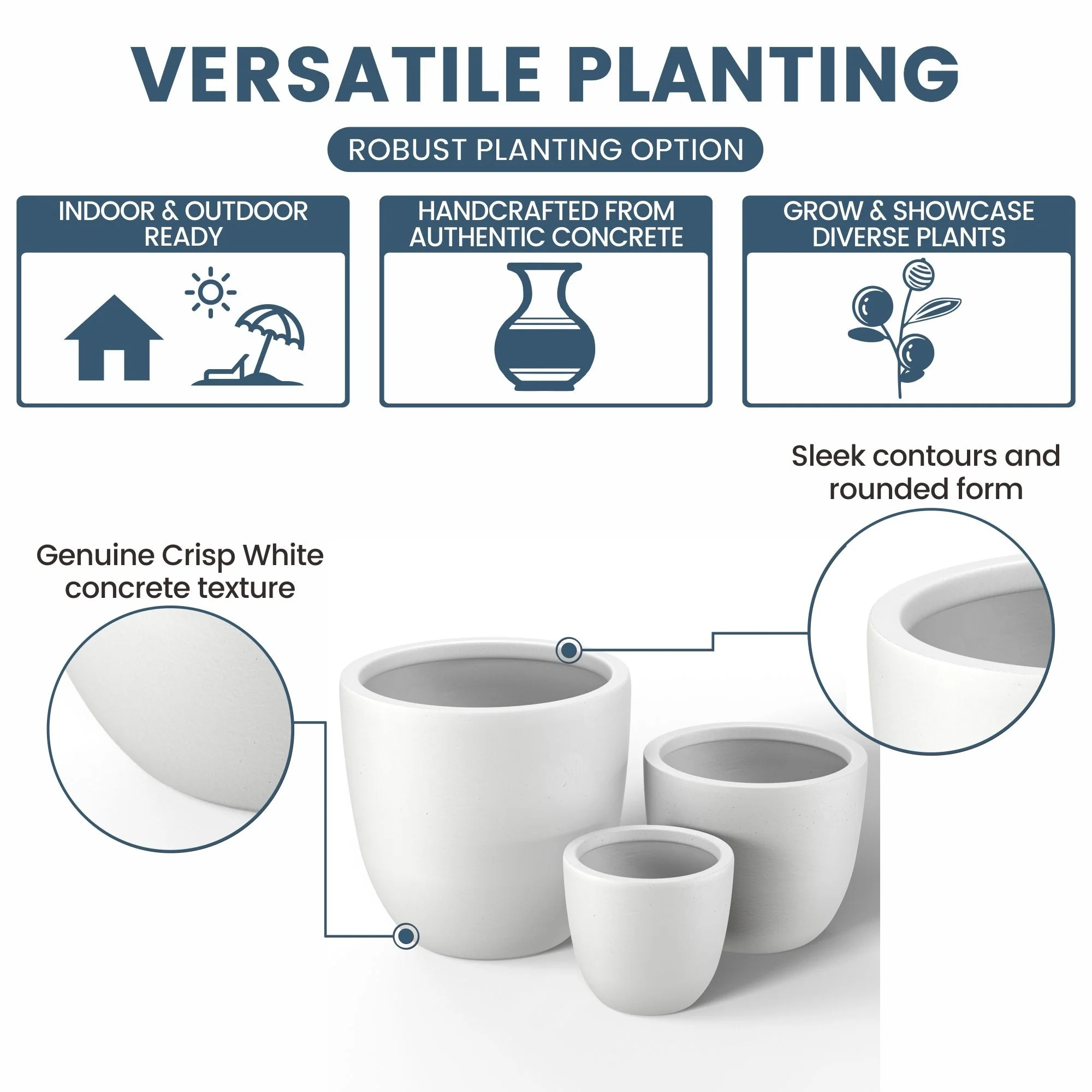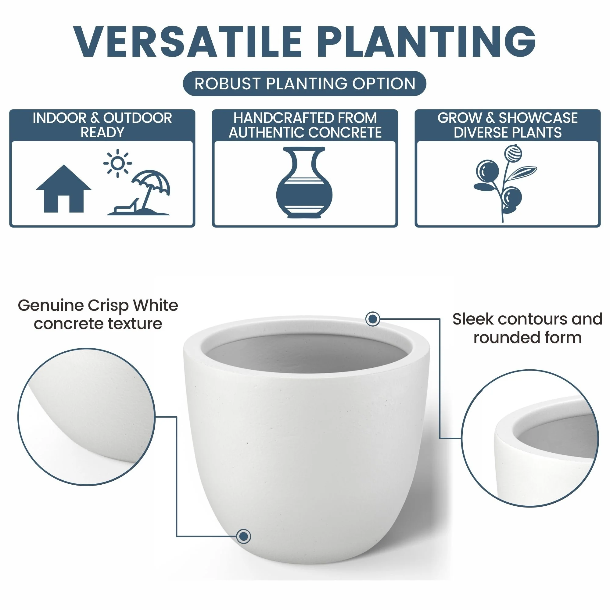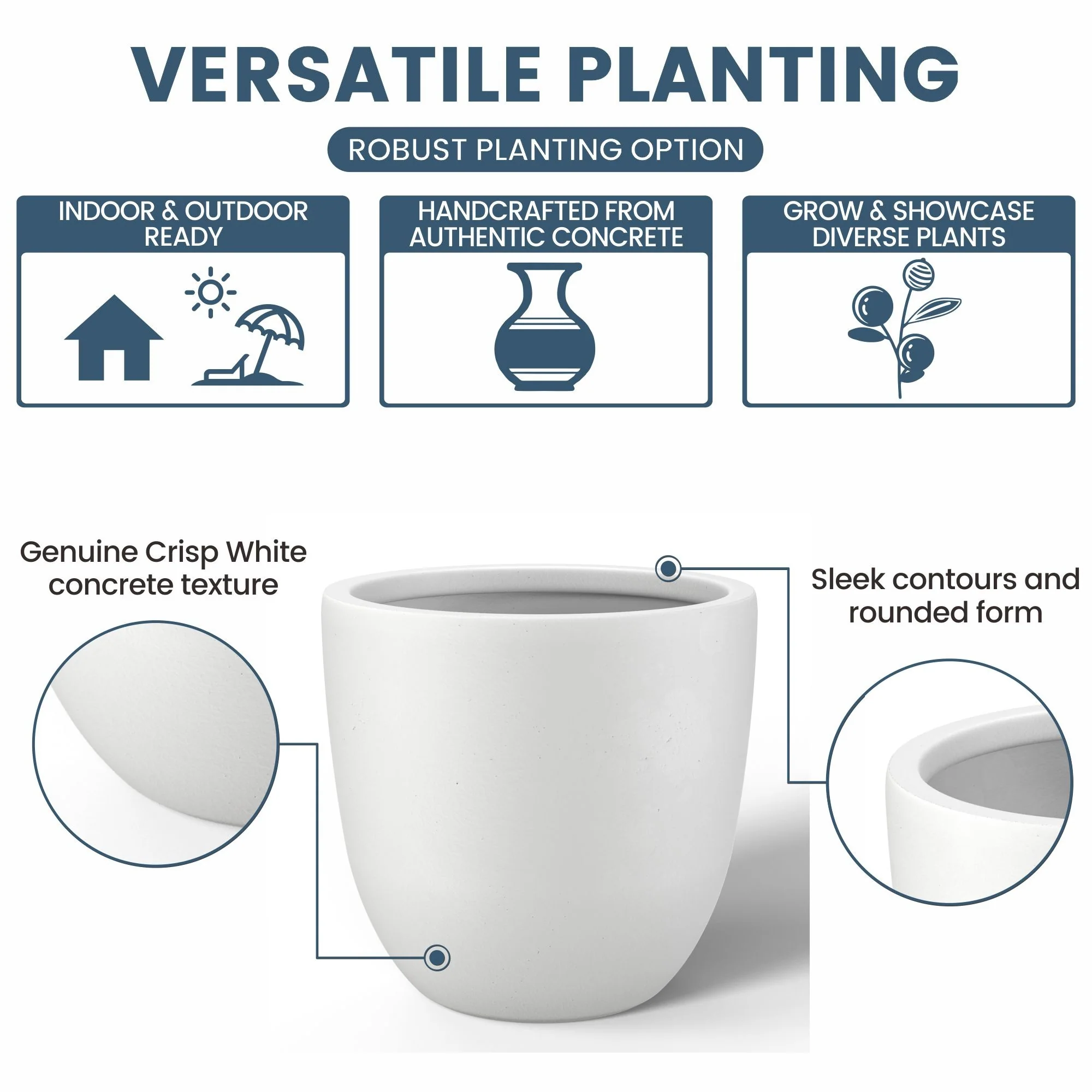 *Versatile Designs: From tall planters for outdoor plants to modern planters that make a statement, the Durx-litecrete collection offers a variety of shapes including round planters and tall planter pots