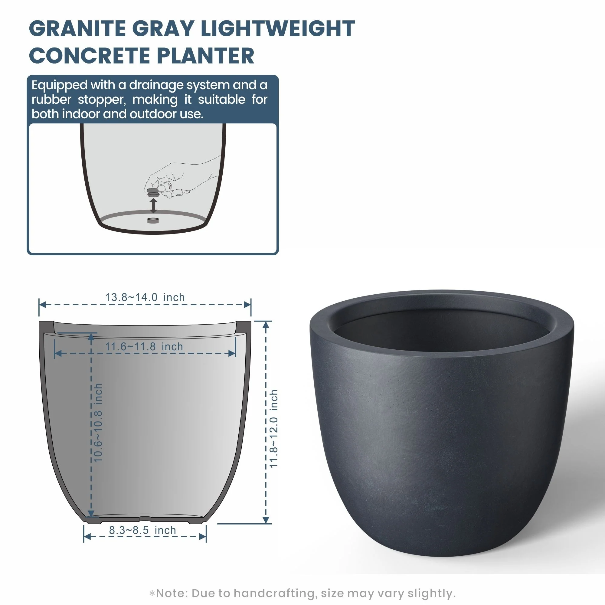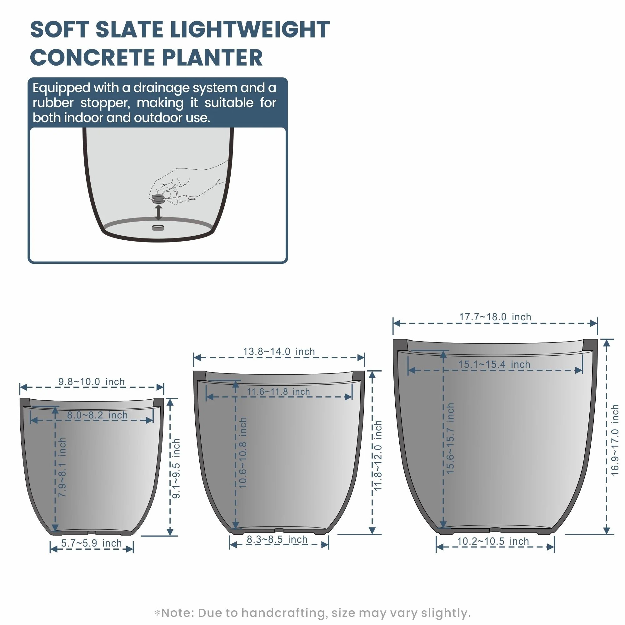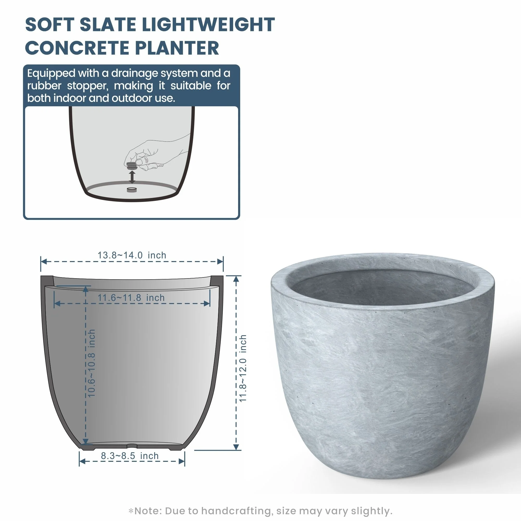 *Lightweight: Despite their robust concrete appearance, these planters are surprisingly light, making them easy to move and rearrange without sacrificing durability or style