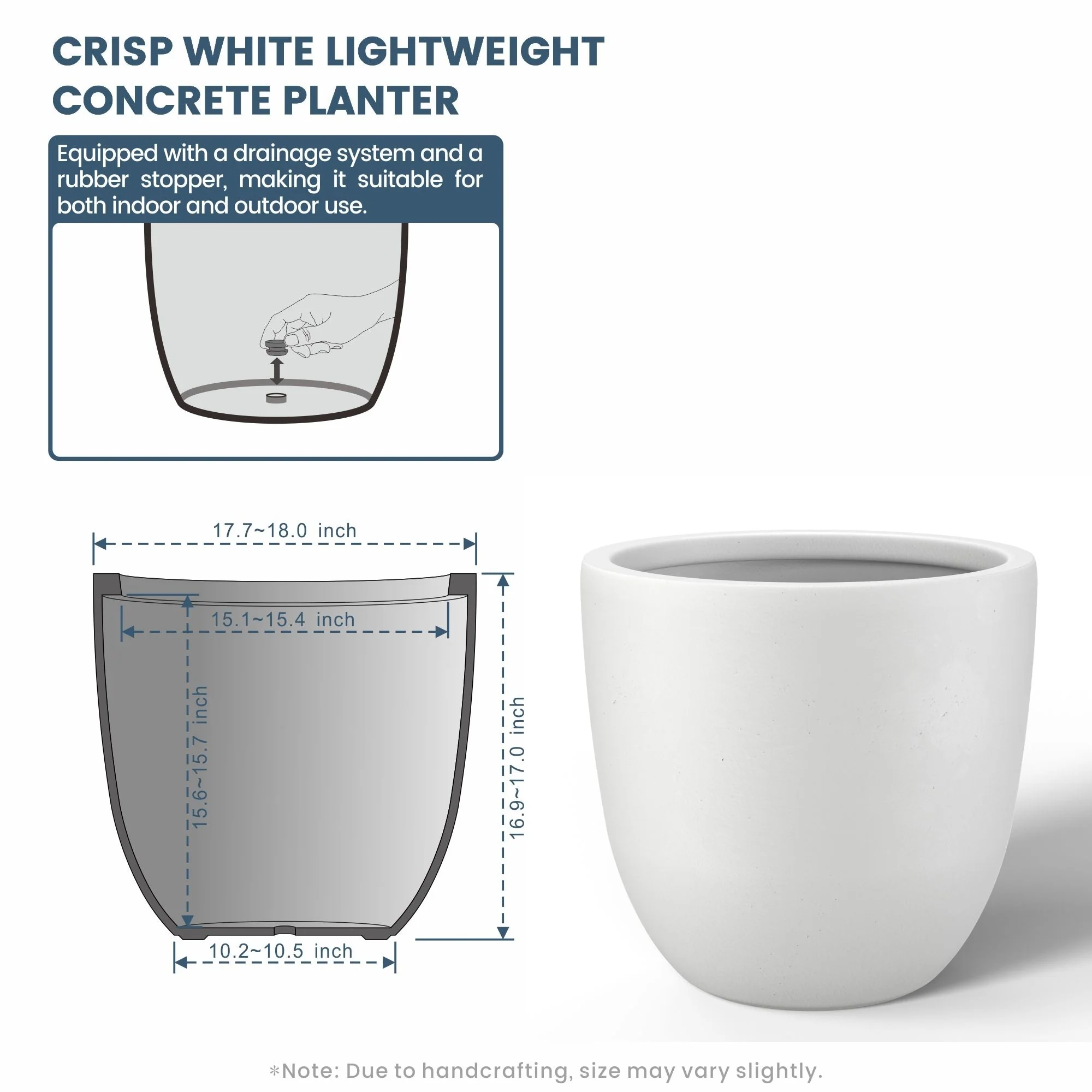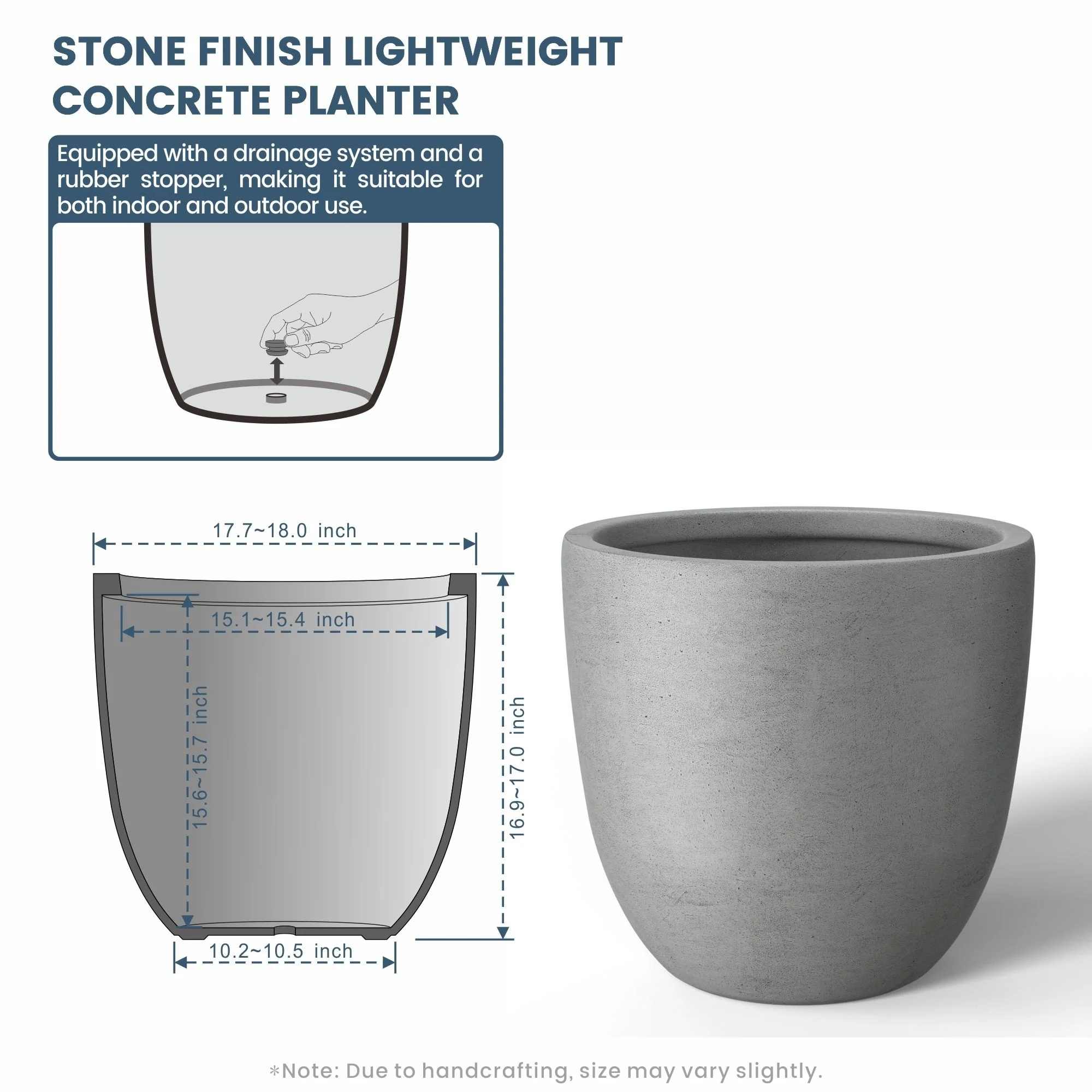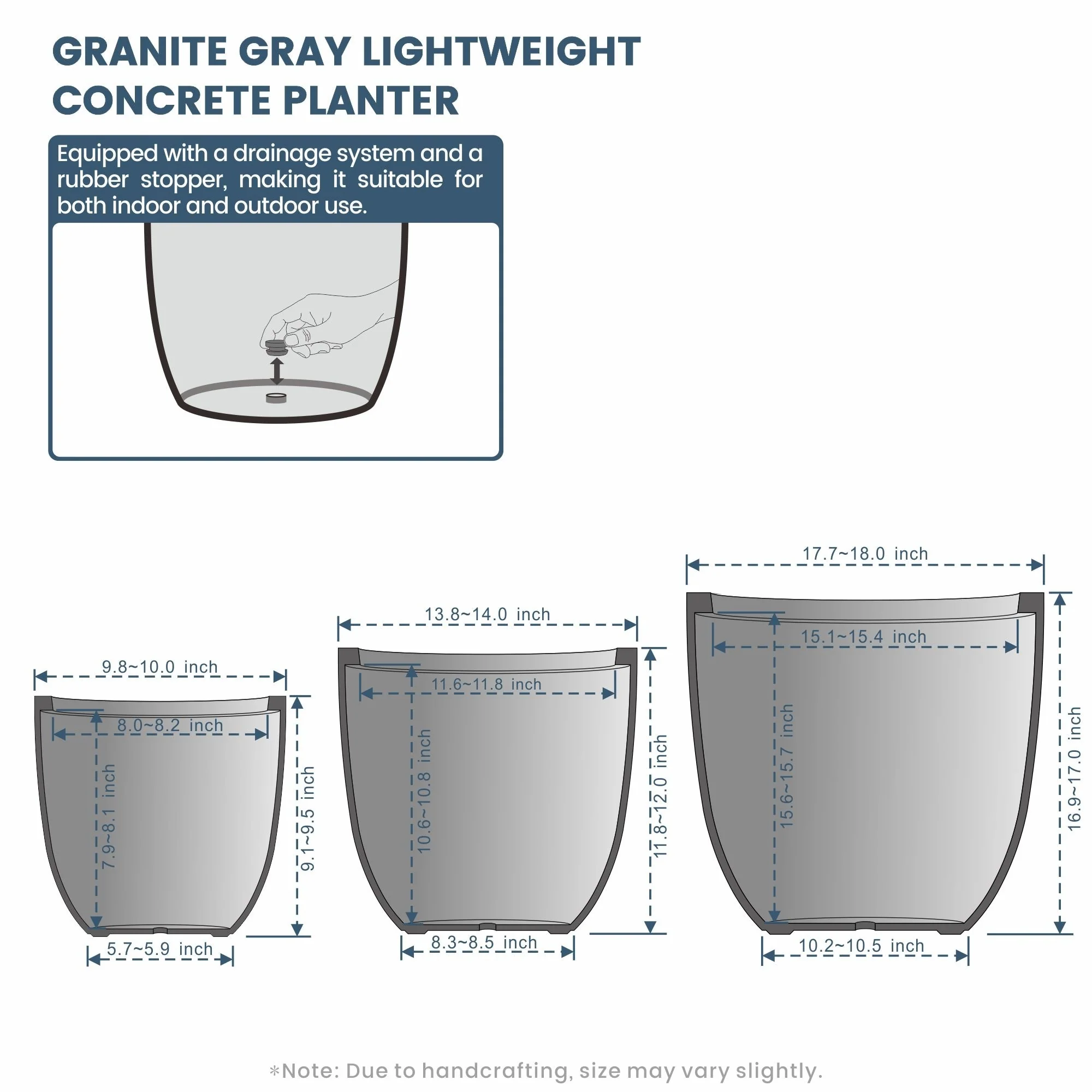 *Lightweight: Despite their robust concrete appearance, these planters are surprisingly light, making them easy to move and rearrange without sacrificing durability or style