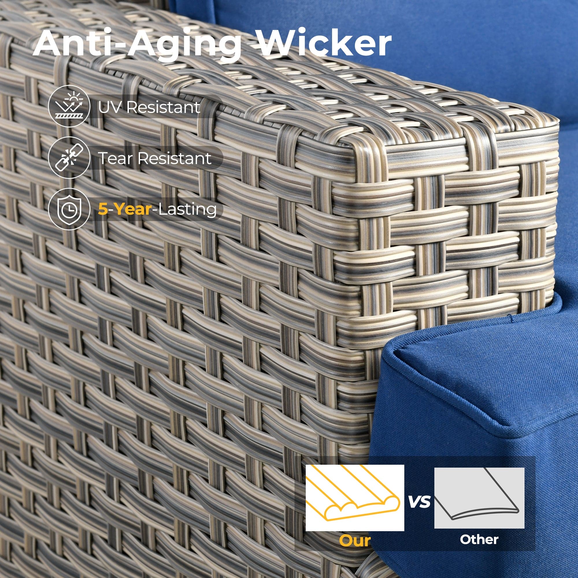 Premium Materials: Enjoy the enduring quality of top-tier fabric that provides superior UV protection and quick drying after rain. Handwoven PE rattan wicker and dense cushions ensure strong lumbar support, durability, and comfort.
