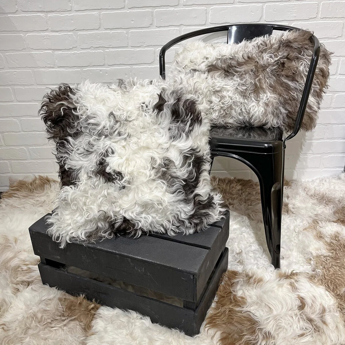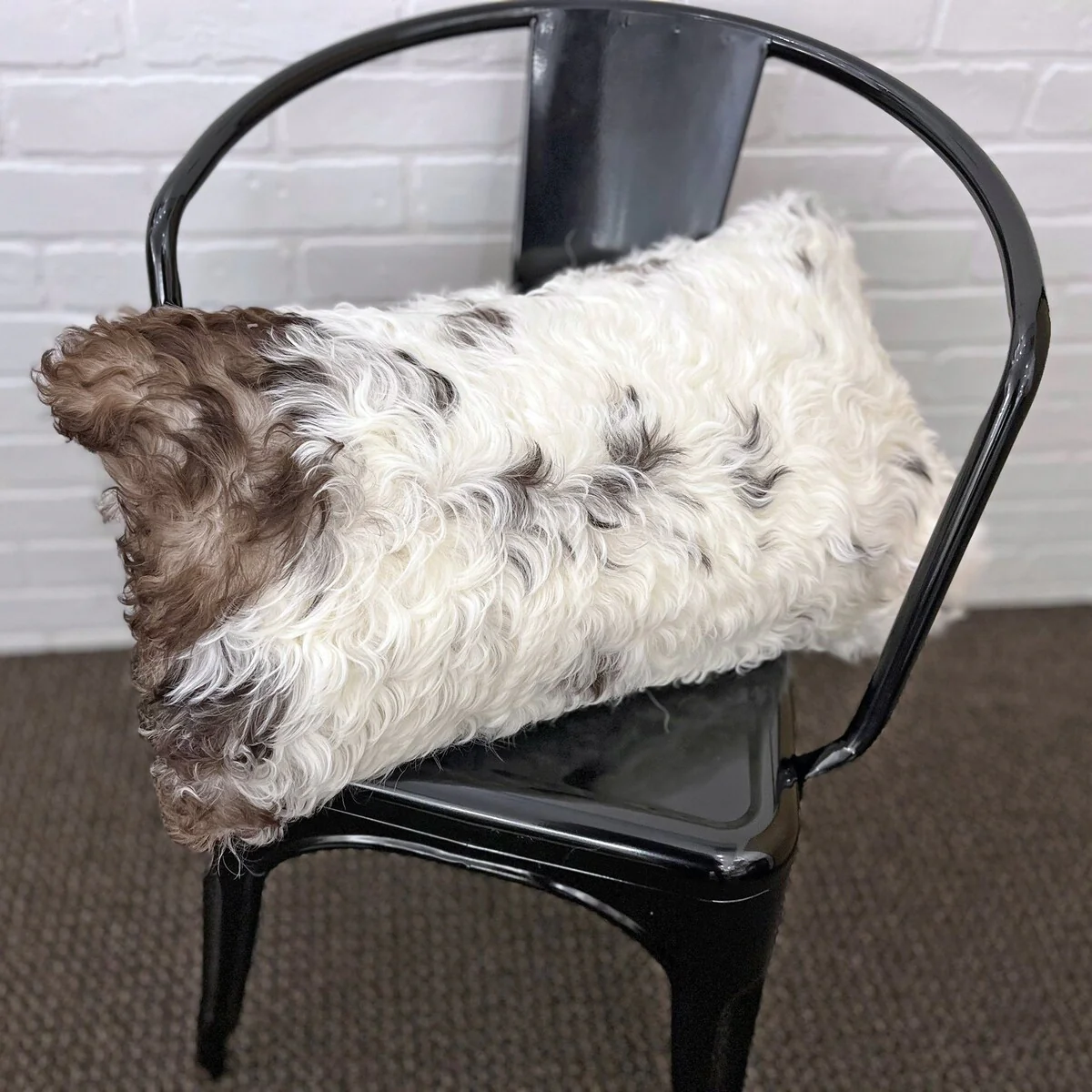 The mottles, spots, color variations, and curls on the sheepskin vary from one pillow to another. These characteristics are 100% natural, and they contribute to the charm and uniqueness of each pillow.