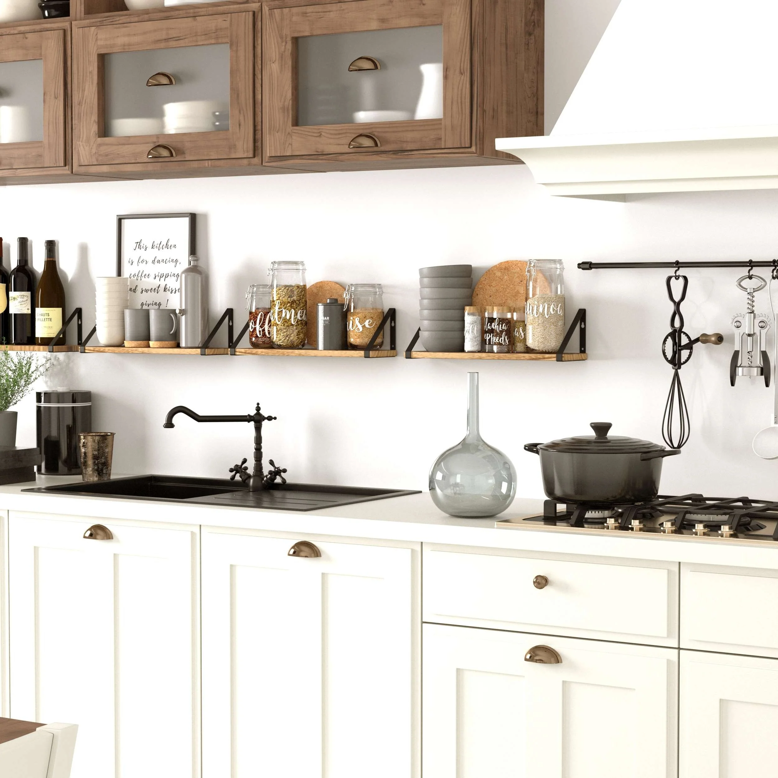 - Rustic floating shelves for farmhouse décor in your kitchen