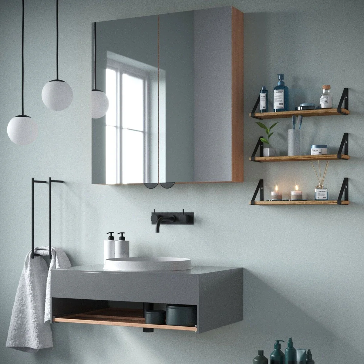Make your bathroom more charming and functional with Wallniture Ponza Wood Floating Shelves. These wall-mounted shelves create a rustic vibe while providing vertical storage space for small plants, self-care products, and scented candles. You can also use them in other rooms as living room display shelves, kitchen shelves or bookshelves.