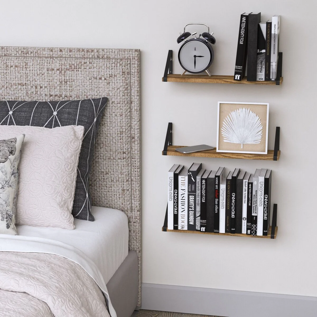 • Wallniture Ponza Wood Floating Shelves, Bathroom Storage Shelf (Set of 3)
