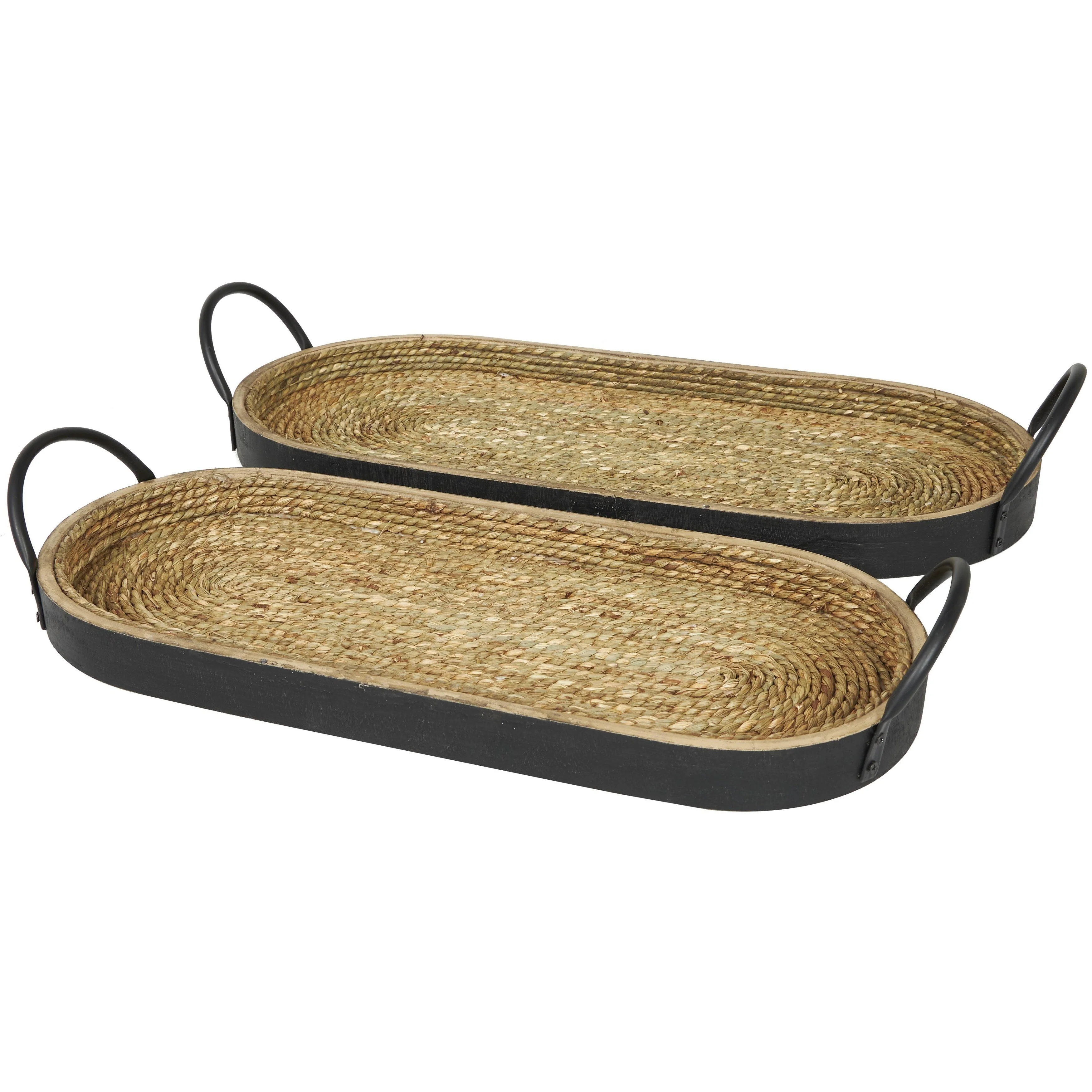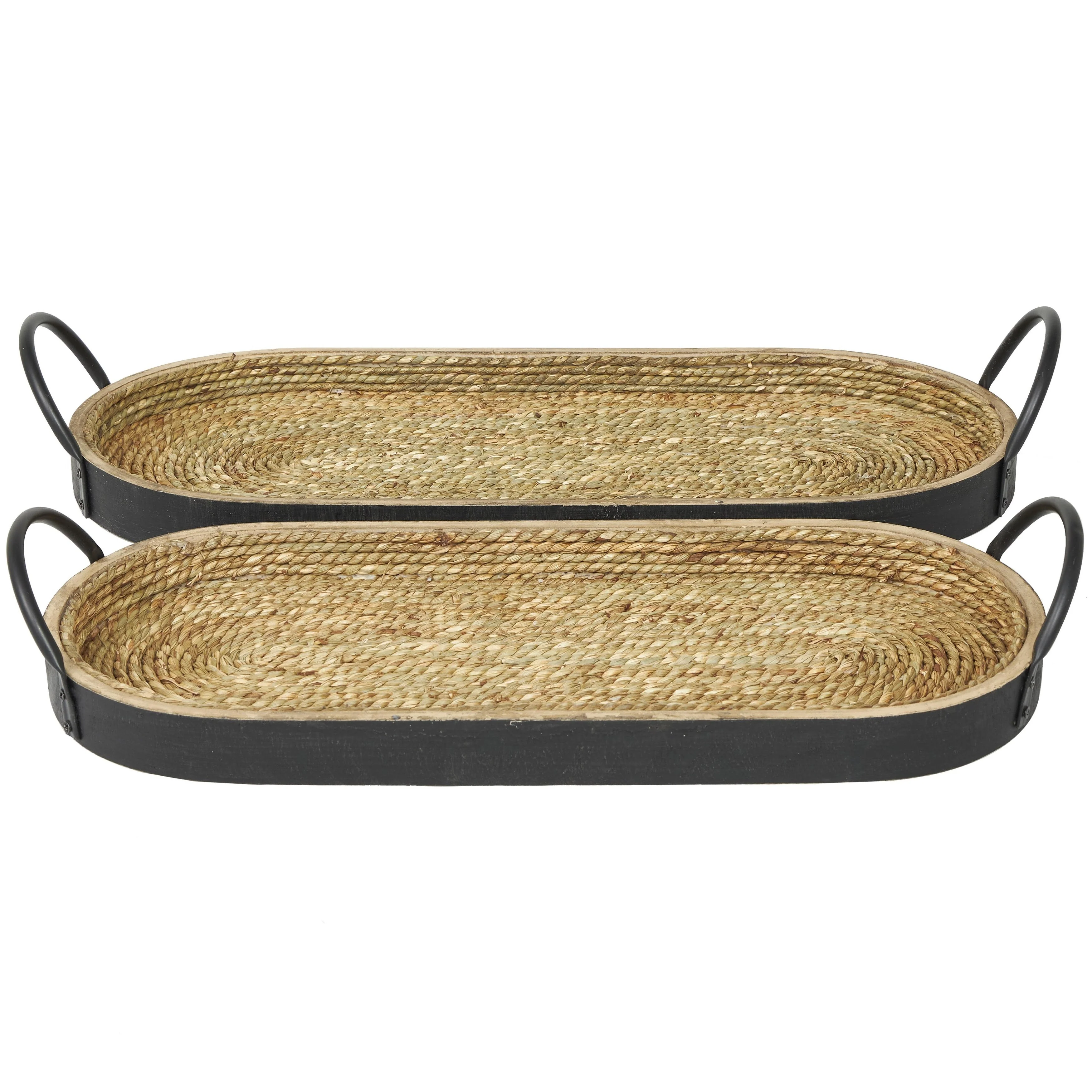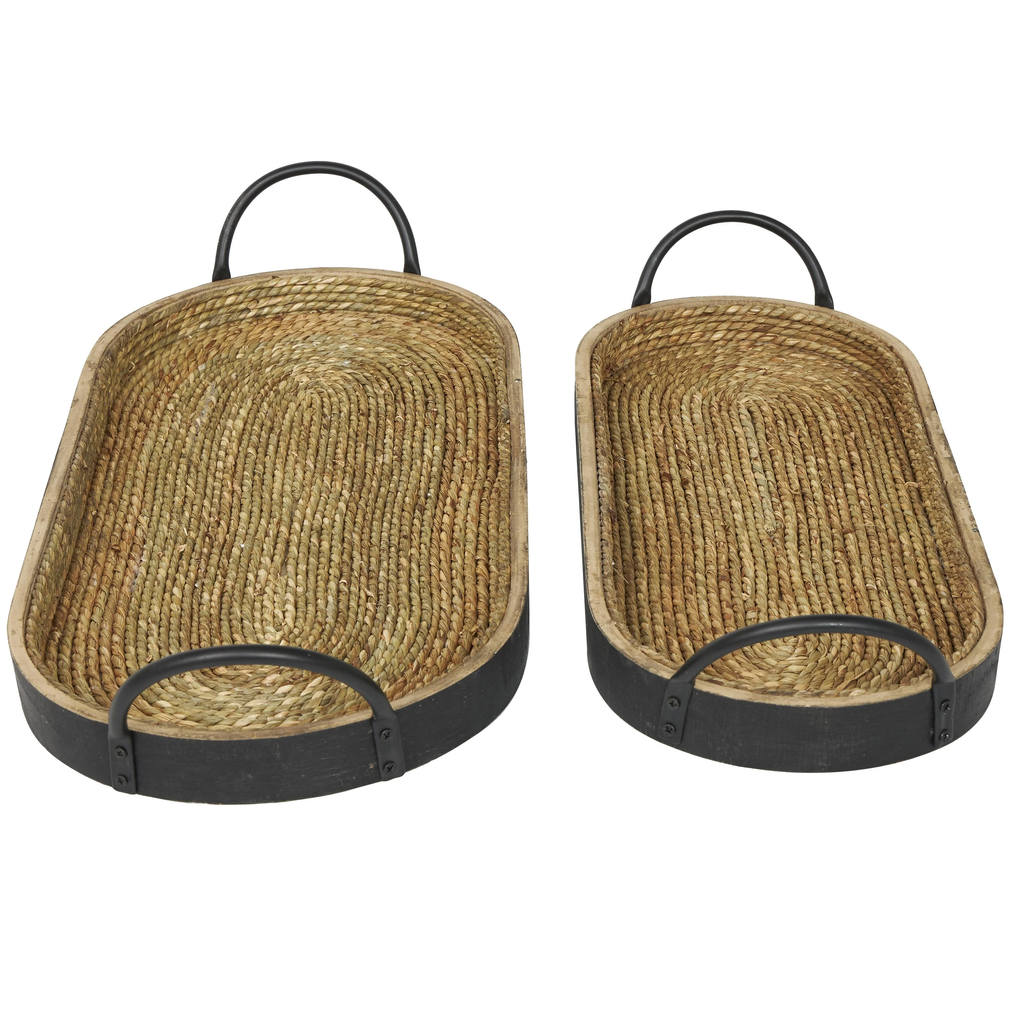 - Black and brown decorative trays come in 2 varying sizes that can be nested or used individually, and feature intricately wrapped interiors with side handles for convenient carry